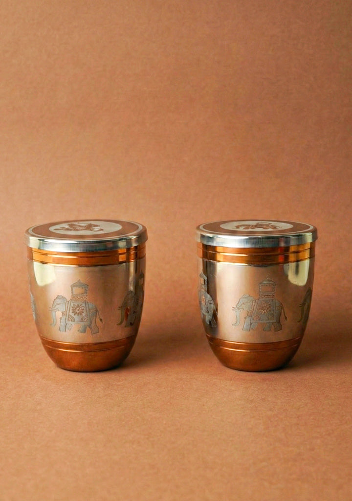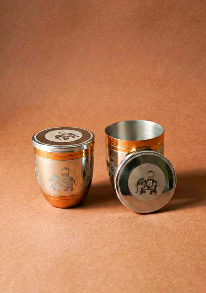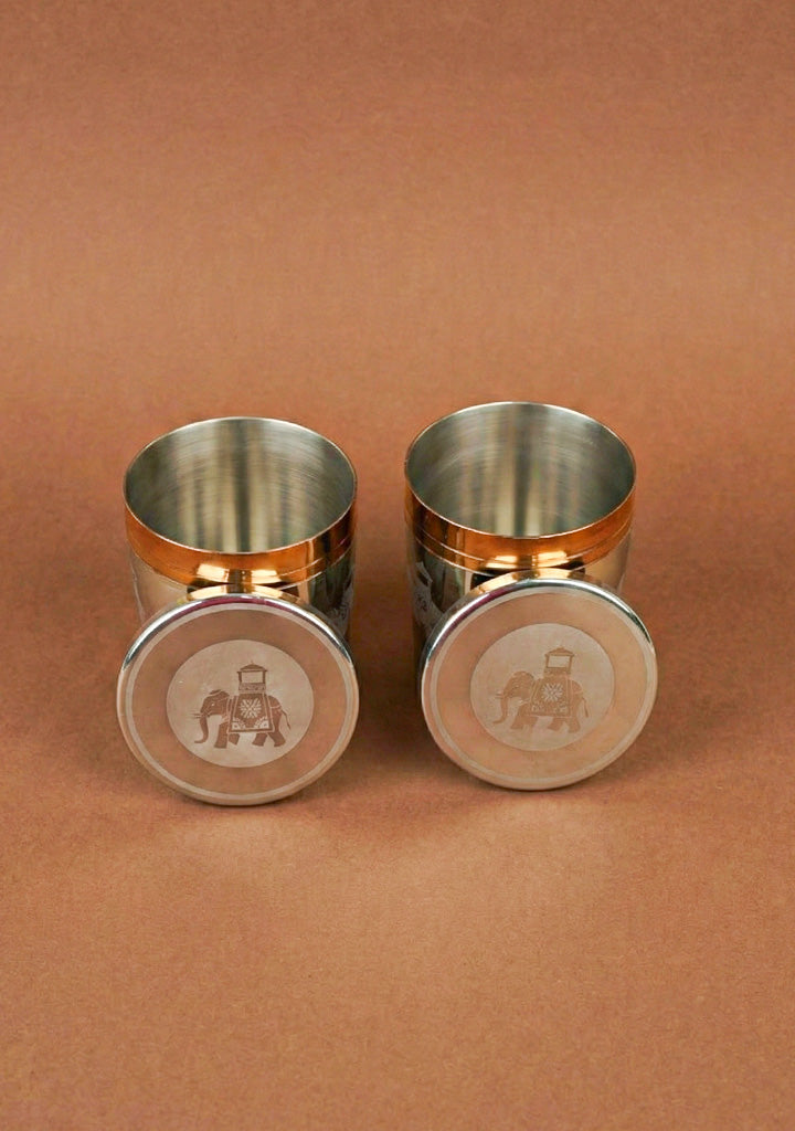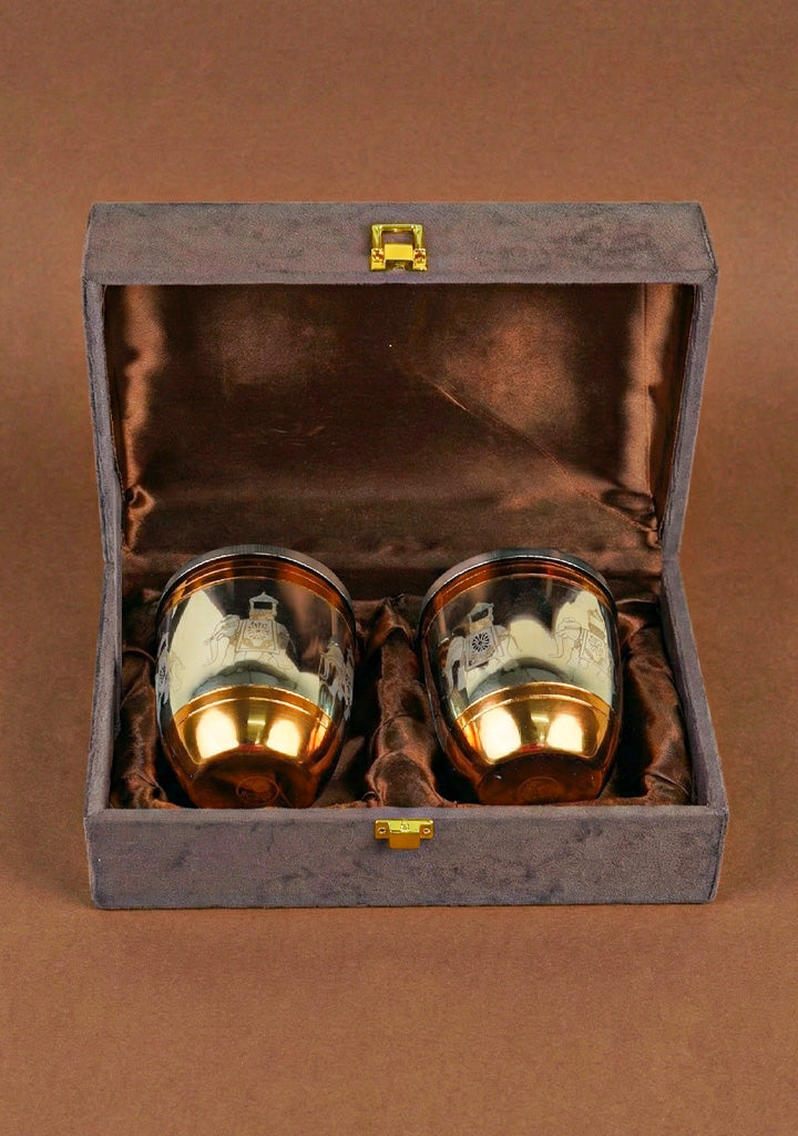 - Set of 2 Elephant with Dholak Design Glass, with Rose Gold Coating, Perfect for Serving Beverages with Ease and Style.