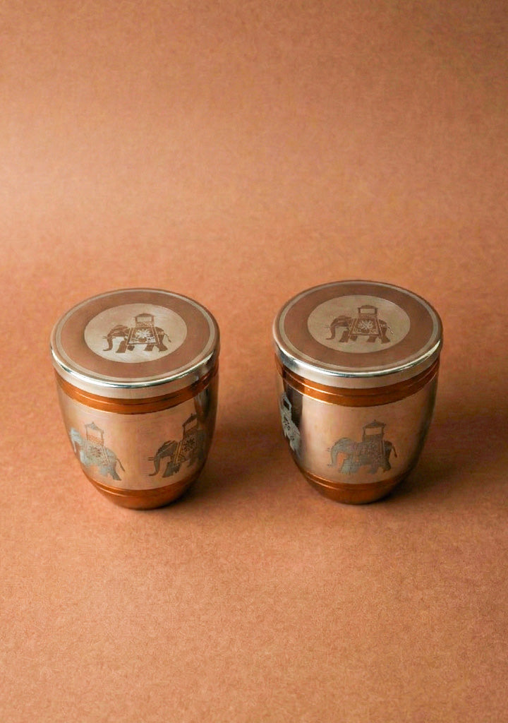 - Product: Dholak Design Set of 2 Glass with Lid.