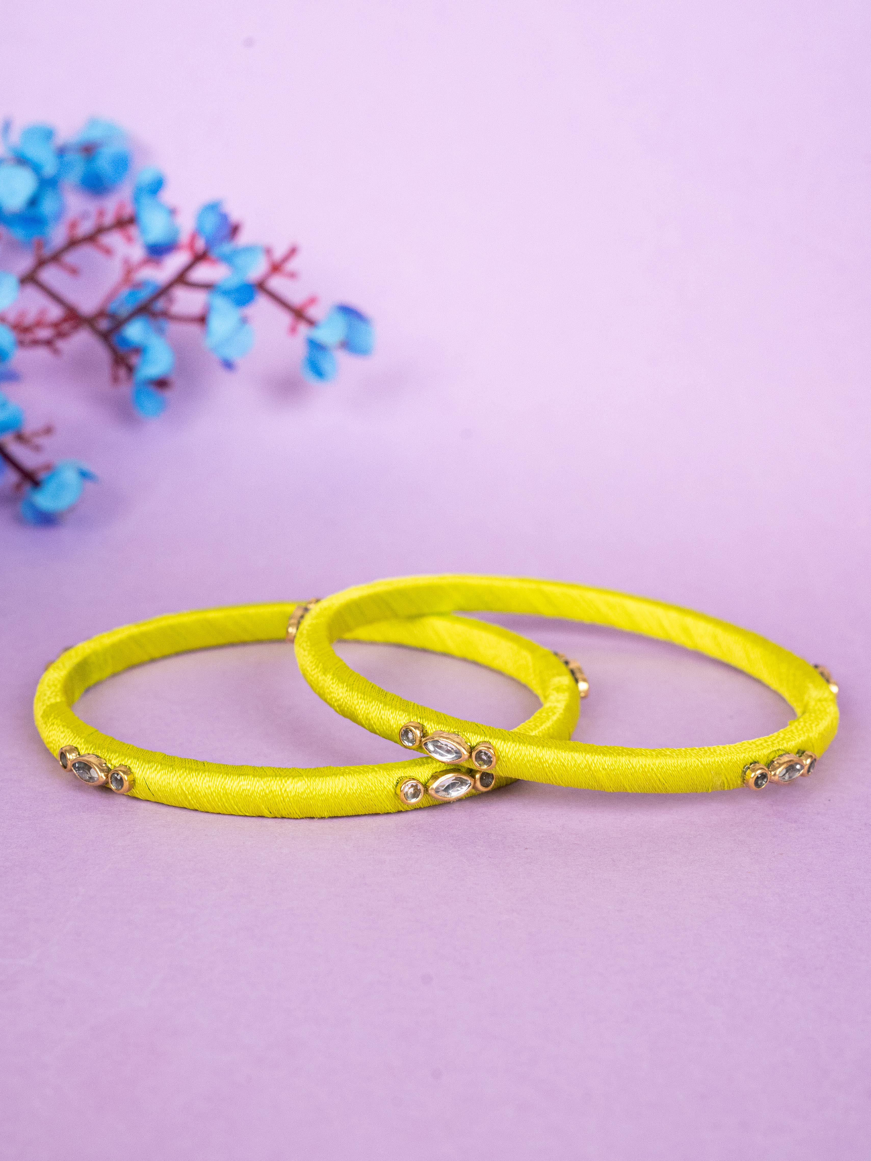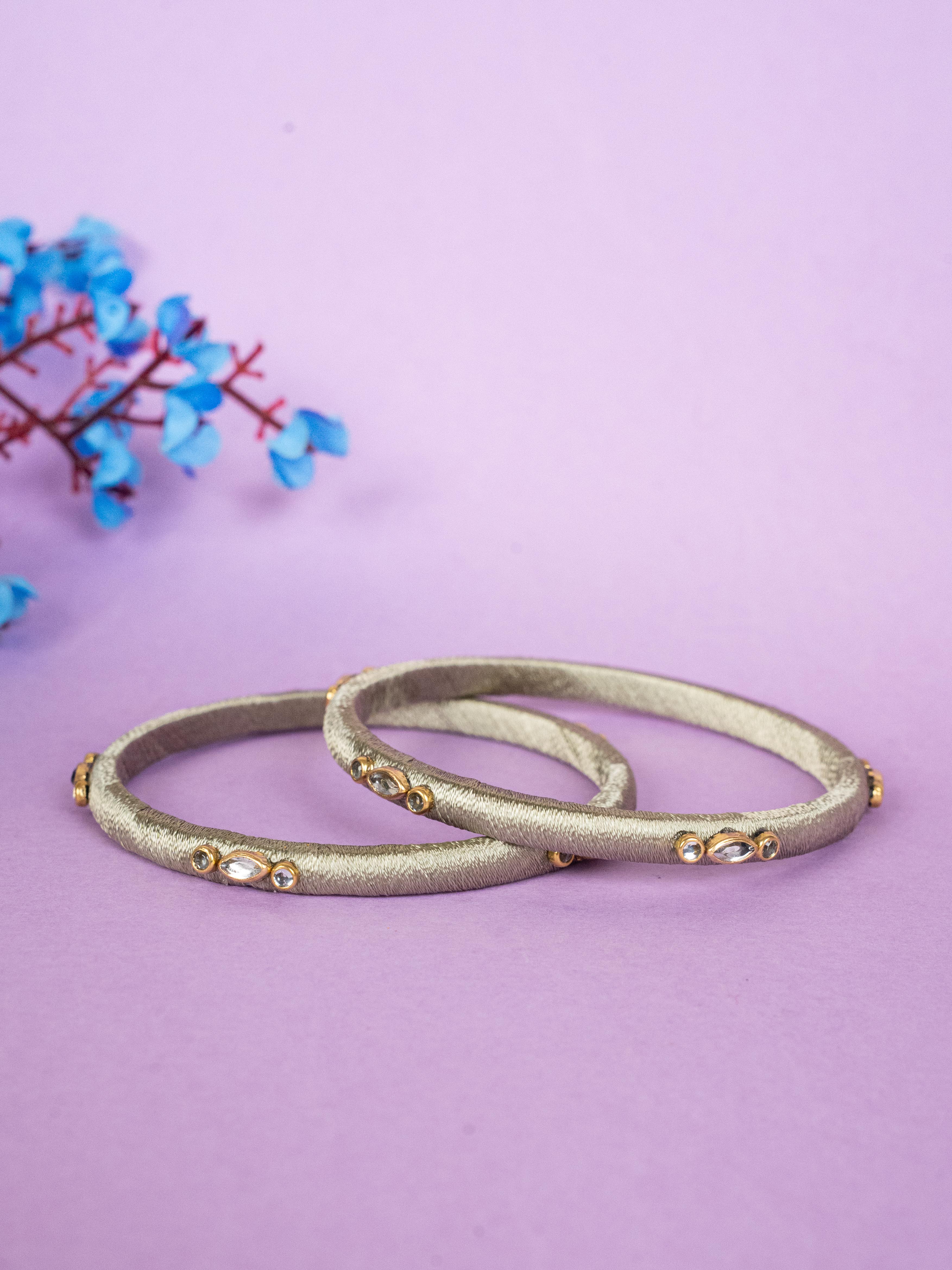 - These Handcrafted Bangles are Beautifully Wrapped in Smooth, Vibrant Green Silk Thread, Giving them a Rich and Refined Finish.