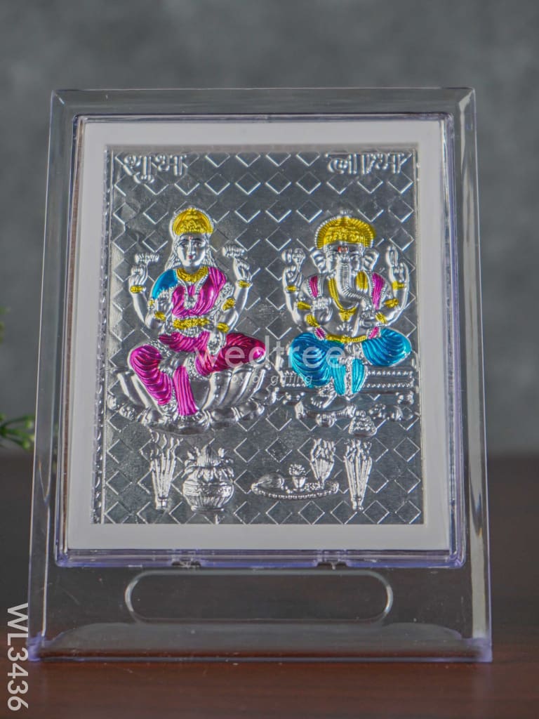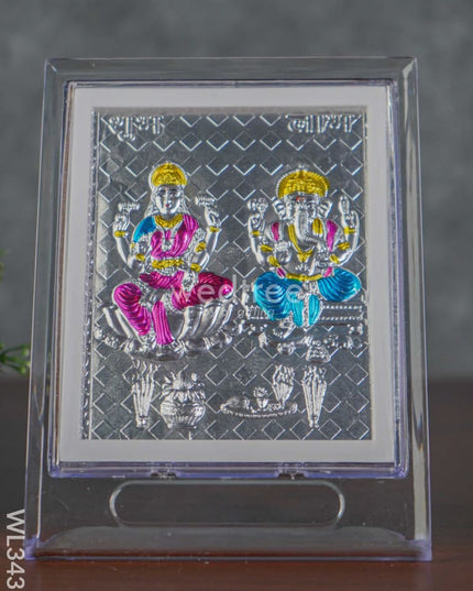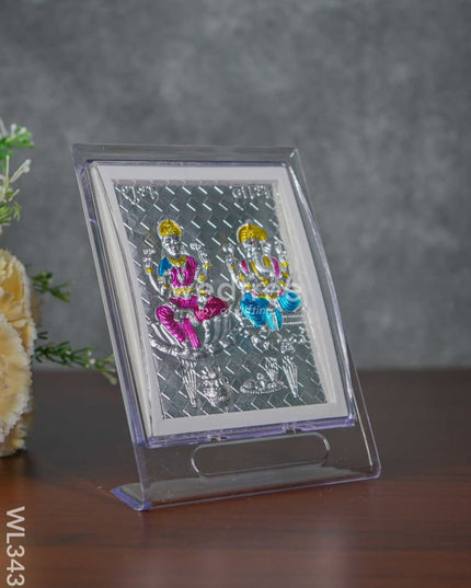 German Silver Lakshmi & Ganesha Photoframe with Stand - WL3436