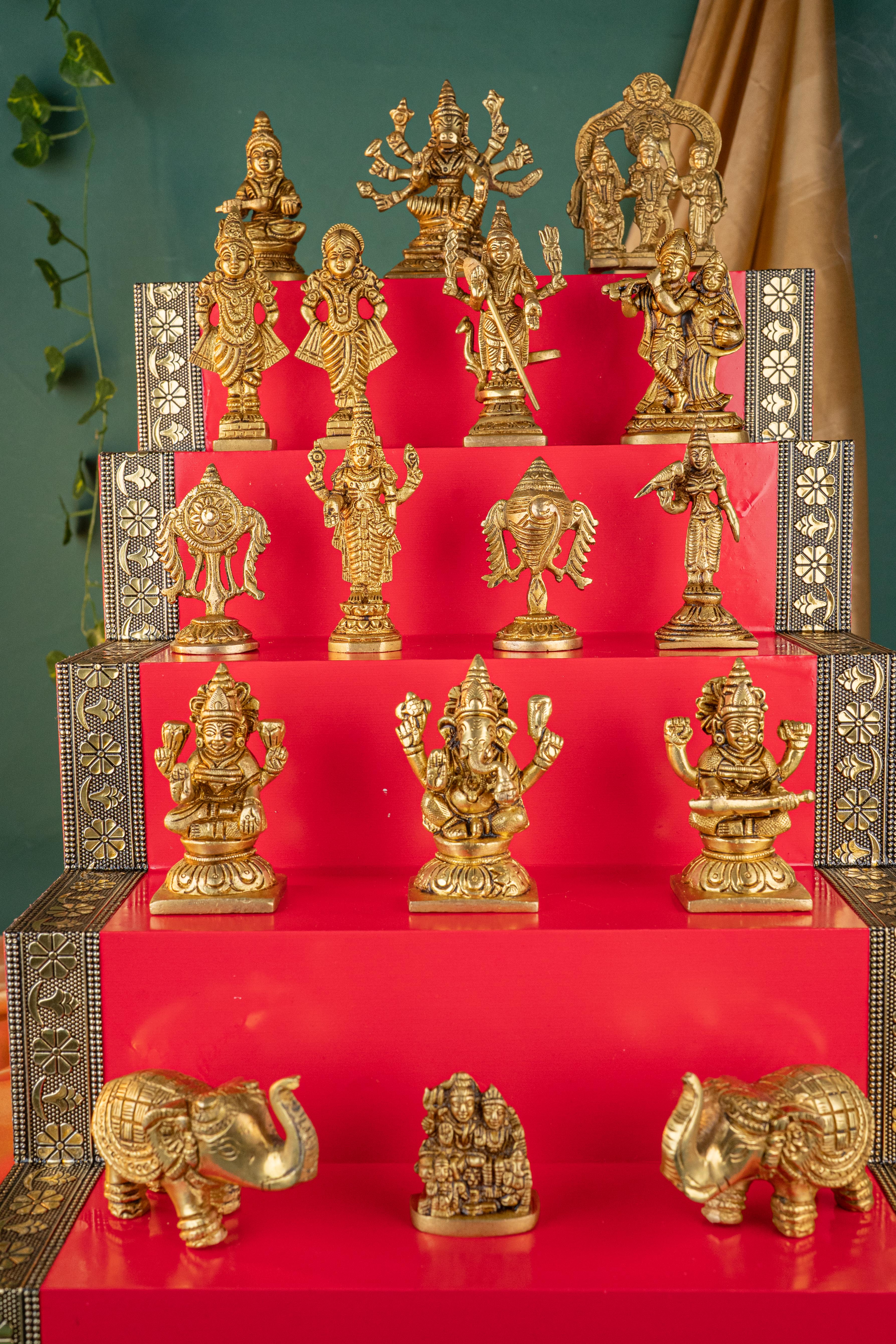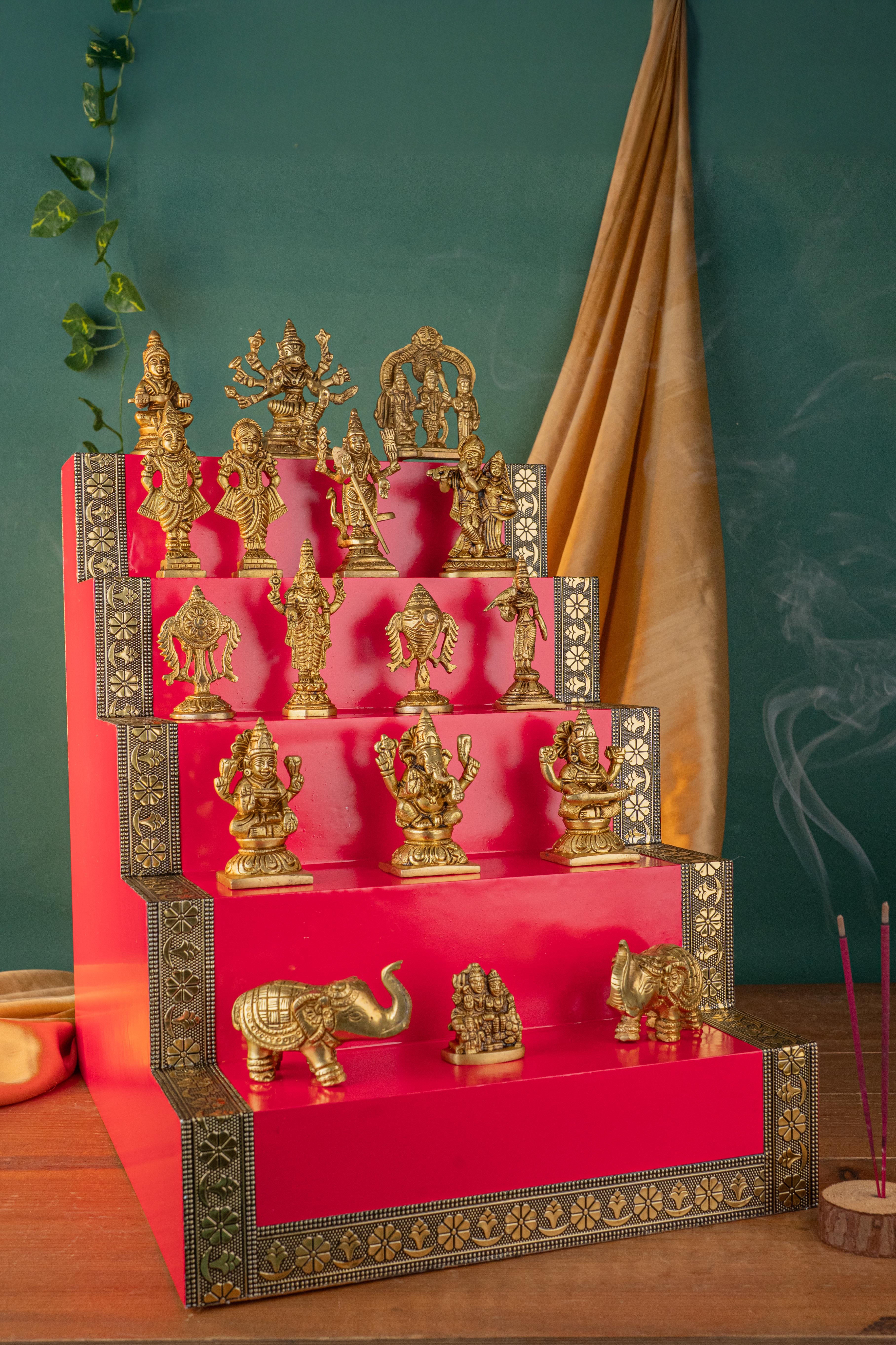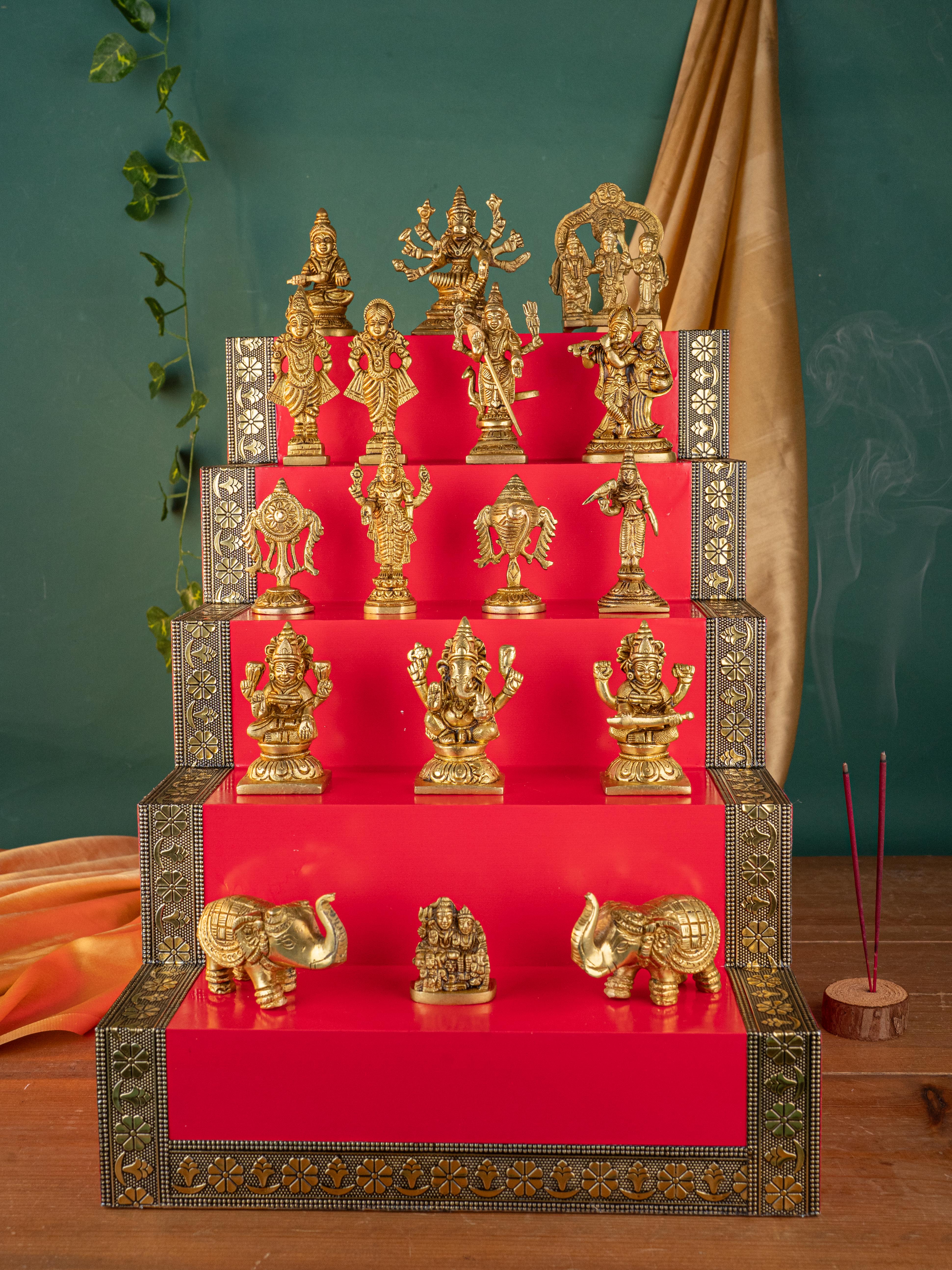 Swarna Golu - Gold Oxidized 5 Step Golu Padi & Brass Idols - WL5404-2