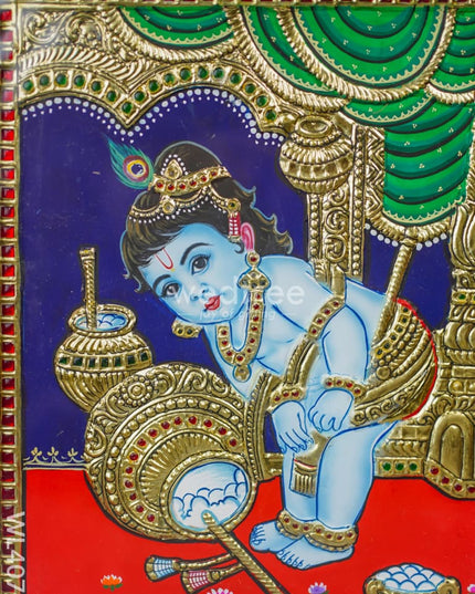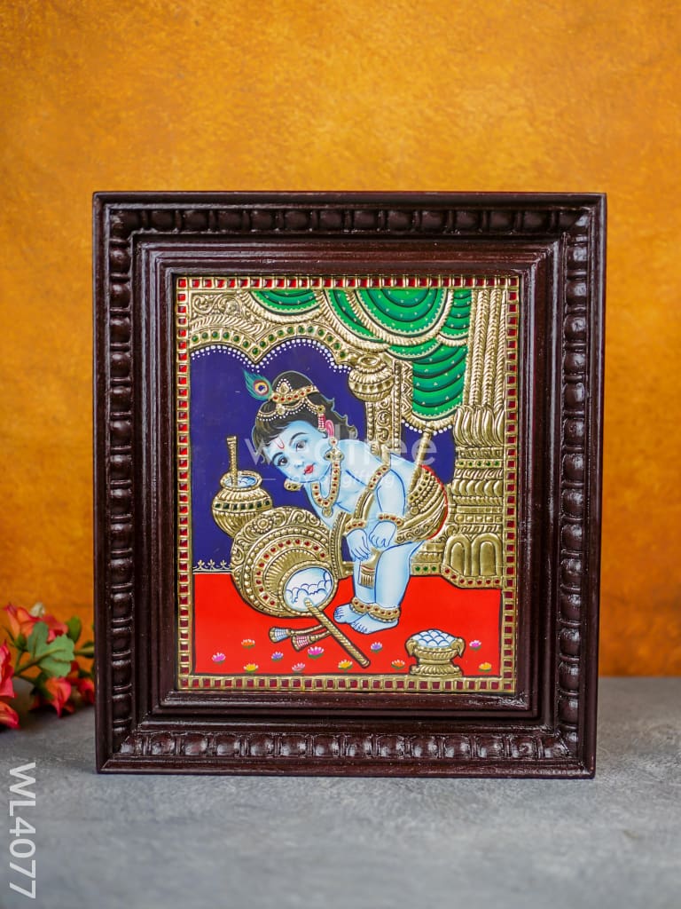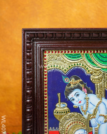 Tanjore Painting - Butter Krishna - Flat (Gold Foil) - 12x10 inch - WL4077