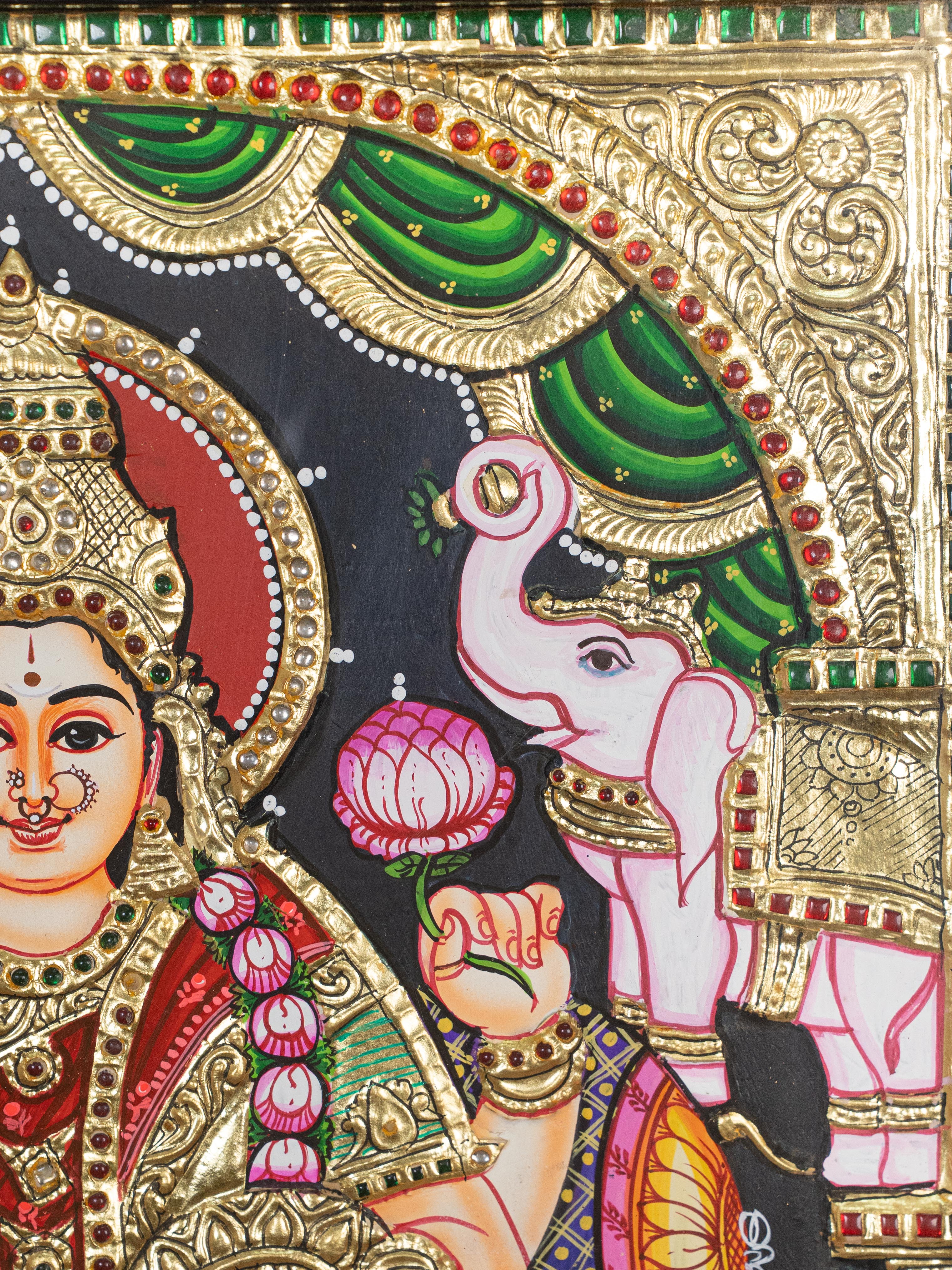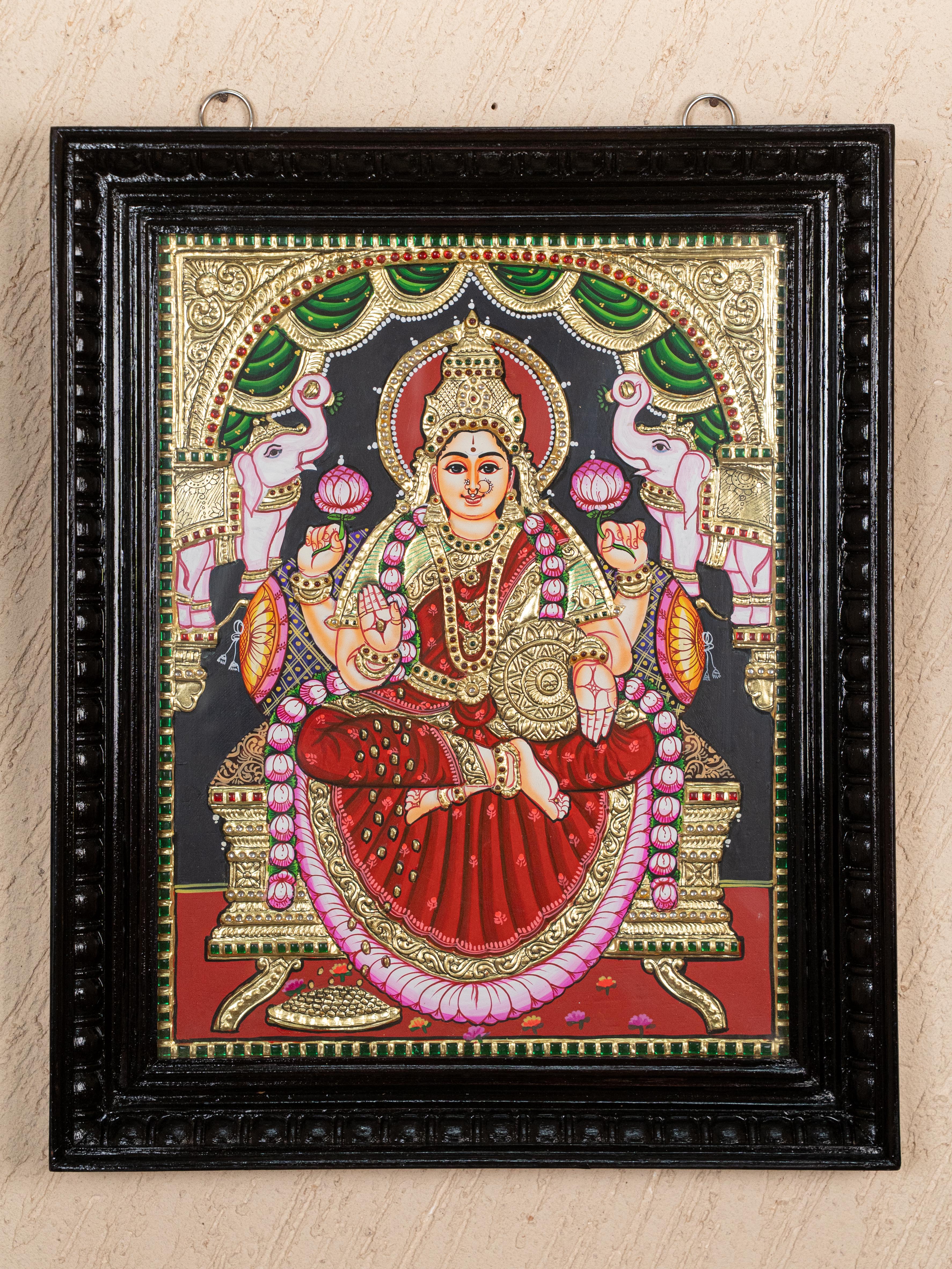 - This Gajalakshmi Painting, known for its Intricate Artistry and Use of Gold Foil, Represents the Spiritual and Cultural Richness of South India.