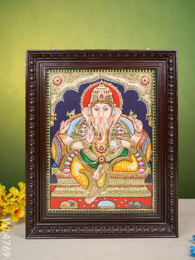 Tanjore Painting - Ganesha - Semi Embossed - 18x14 inch - WL4769