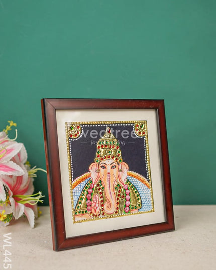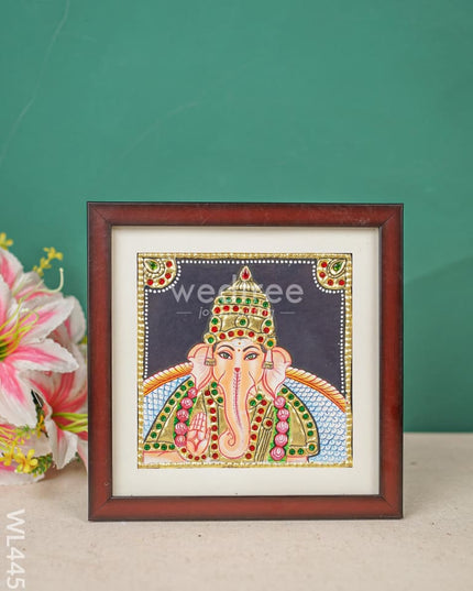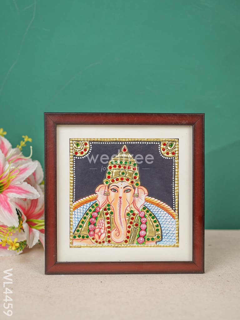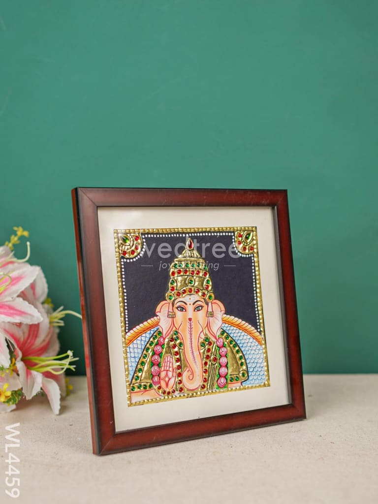 Tanjore Photo Frame Ganesha - Flat [Gold Foil] - 6X6 inch - WL4459