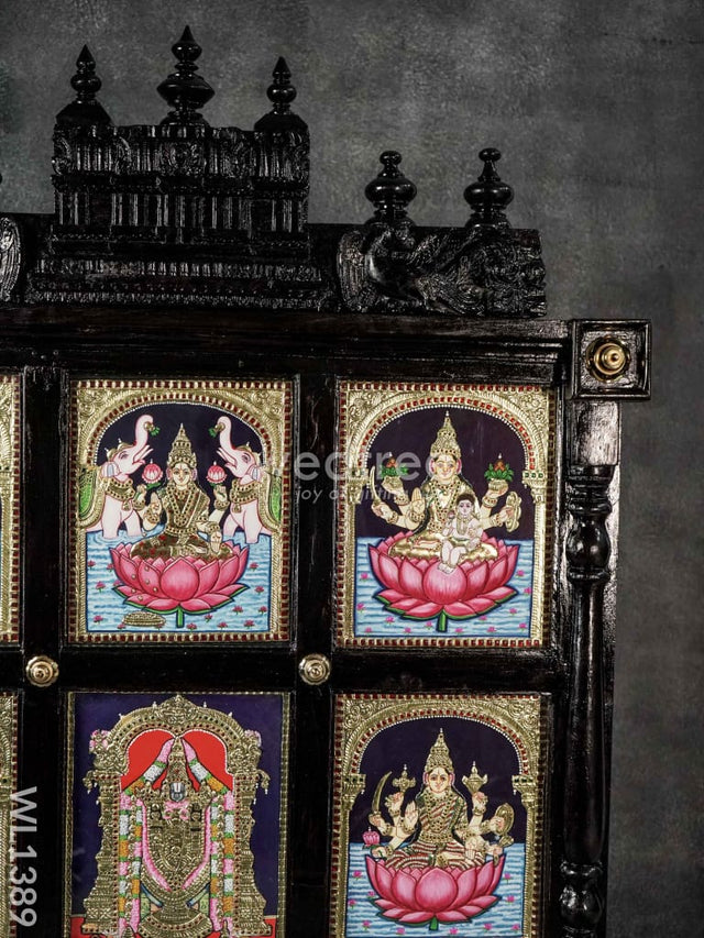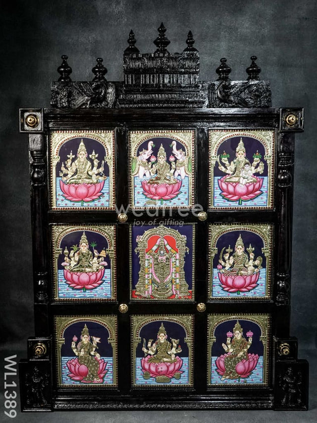 - Featuring this beautiful Tanjore Painting in a Teak wood Mani mandapam with extraordinary design carvings.