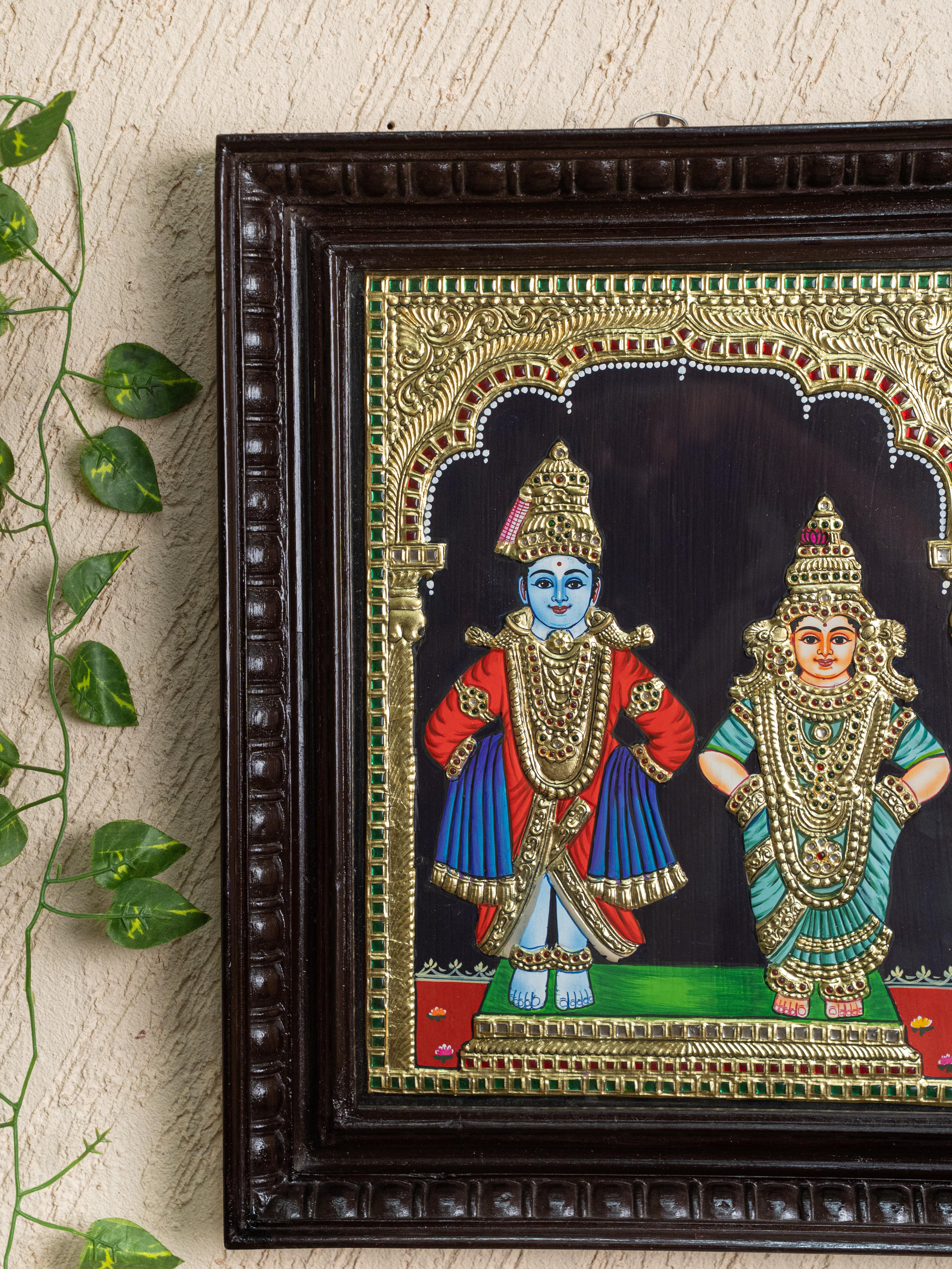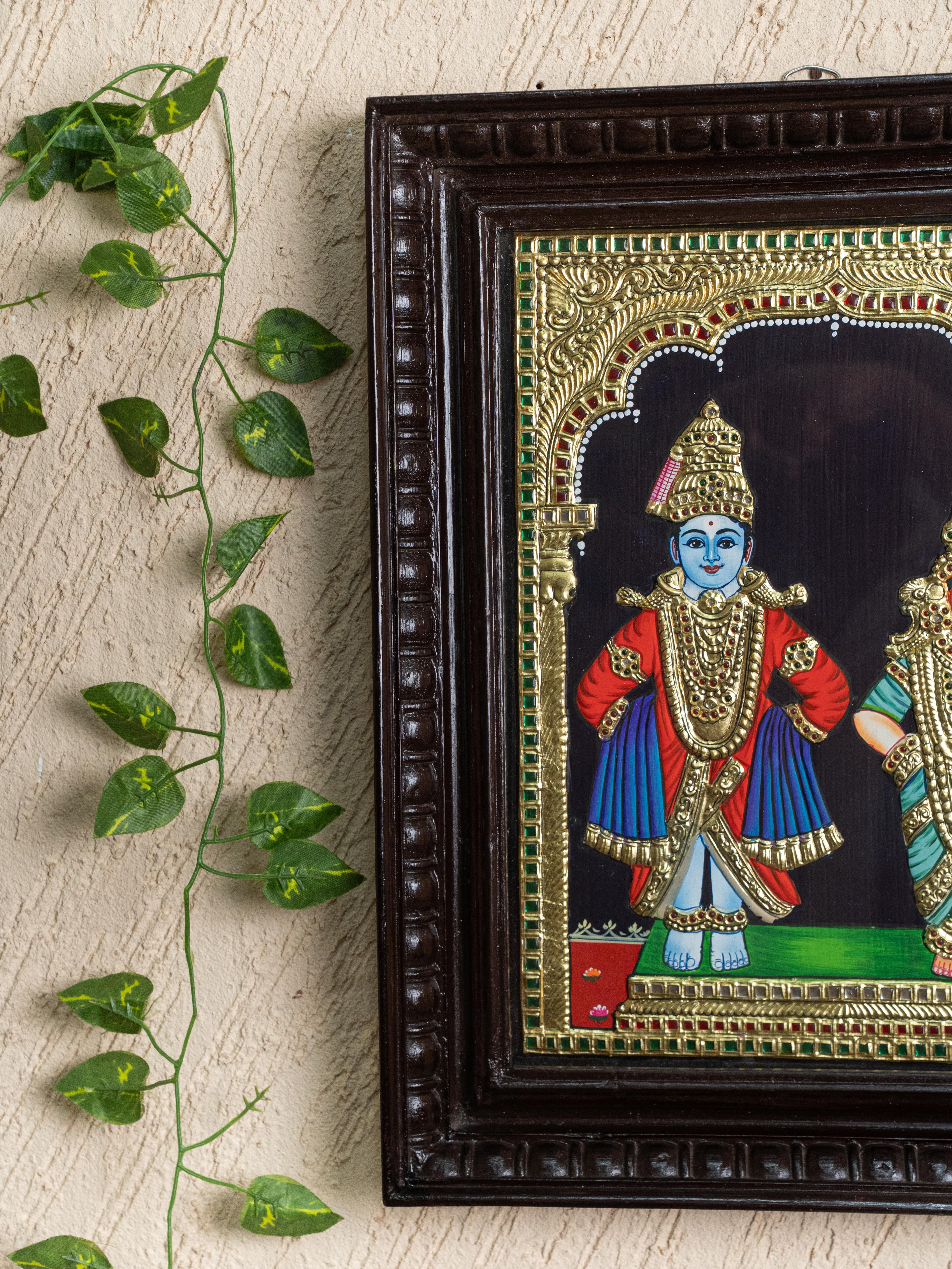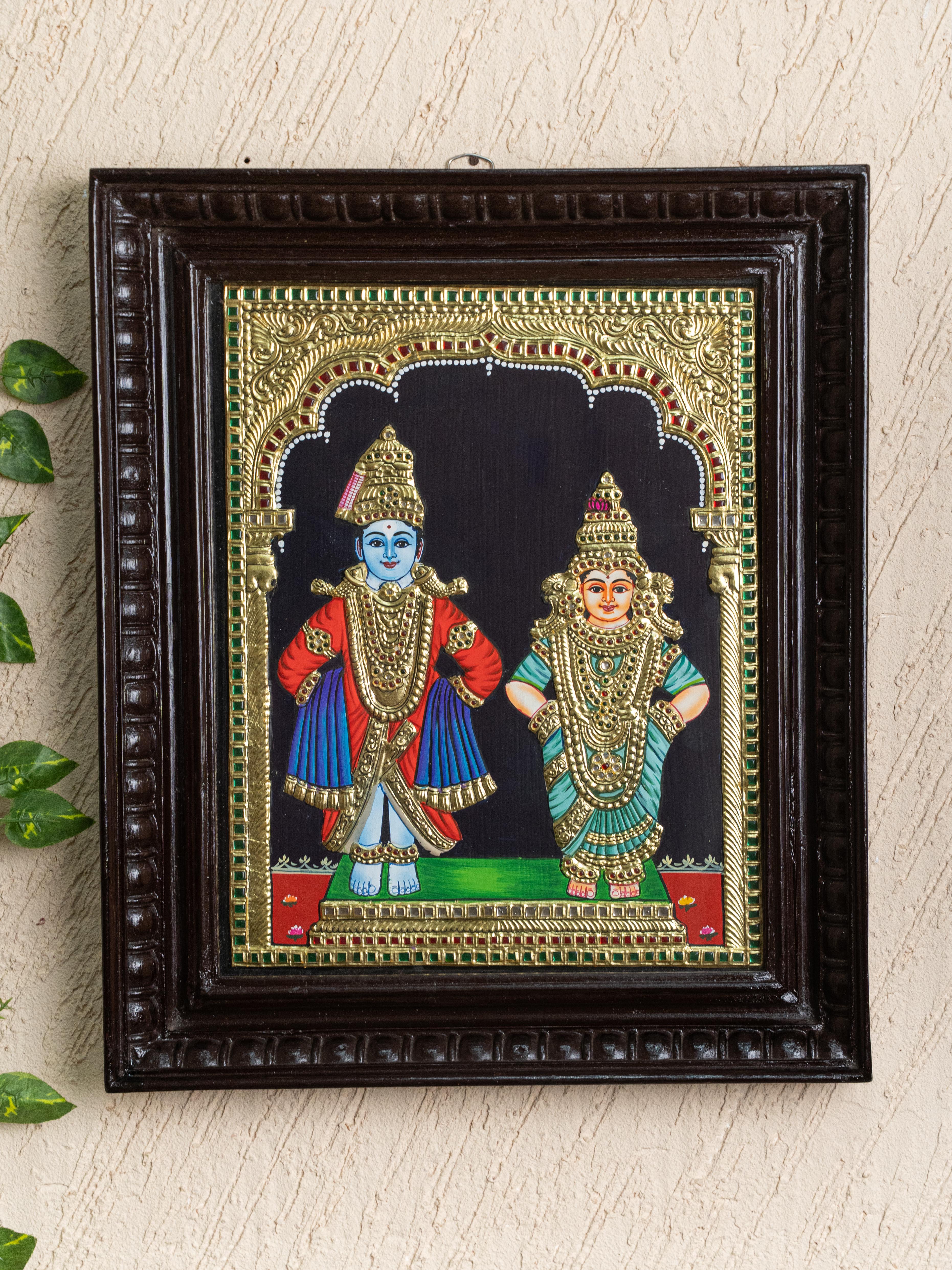 - This painting features Shri Panduranga or Vithala and Rukmini, hand painted in vibrant colour combinations, embellished with original gold foil work and Kundan stones.