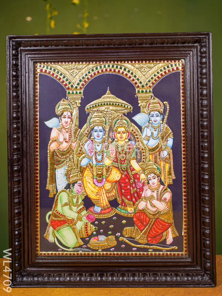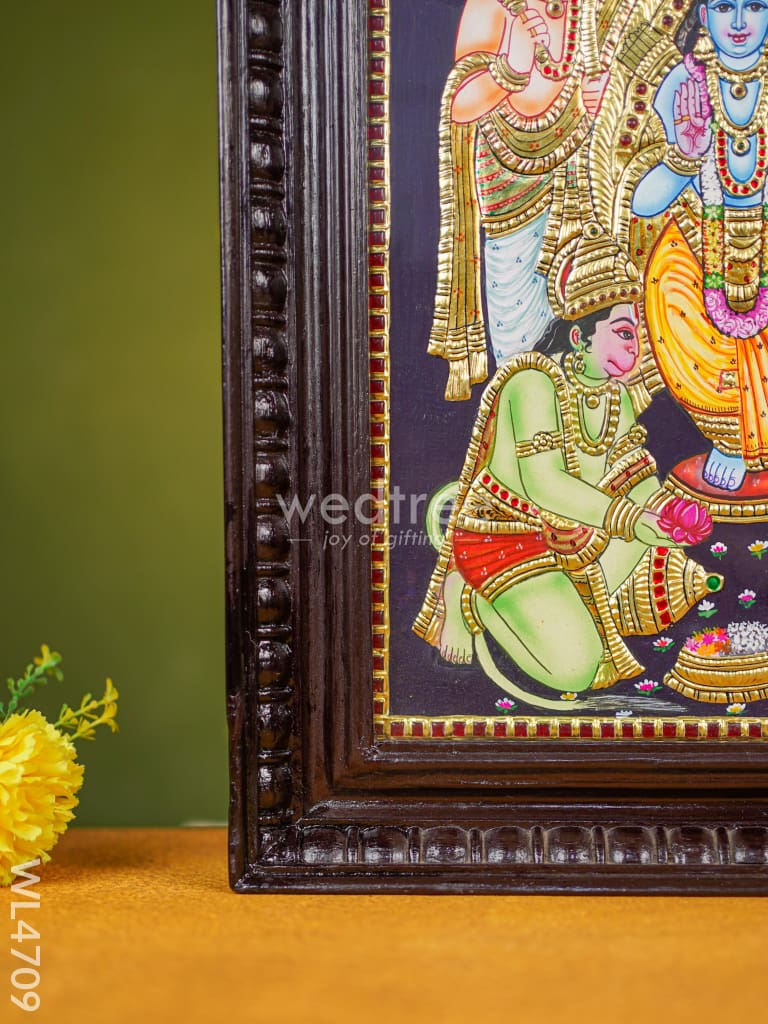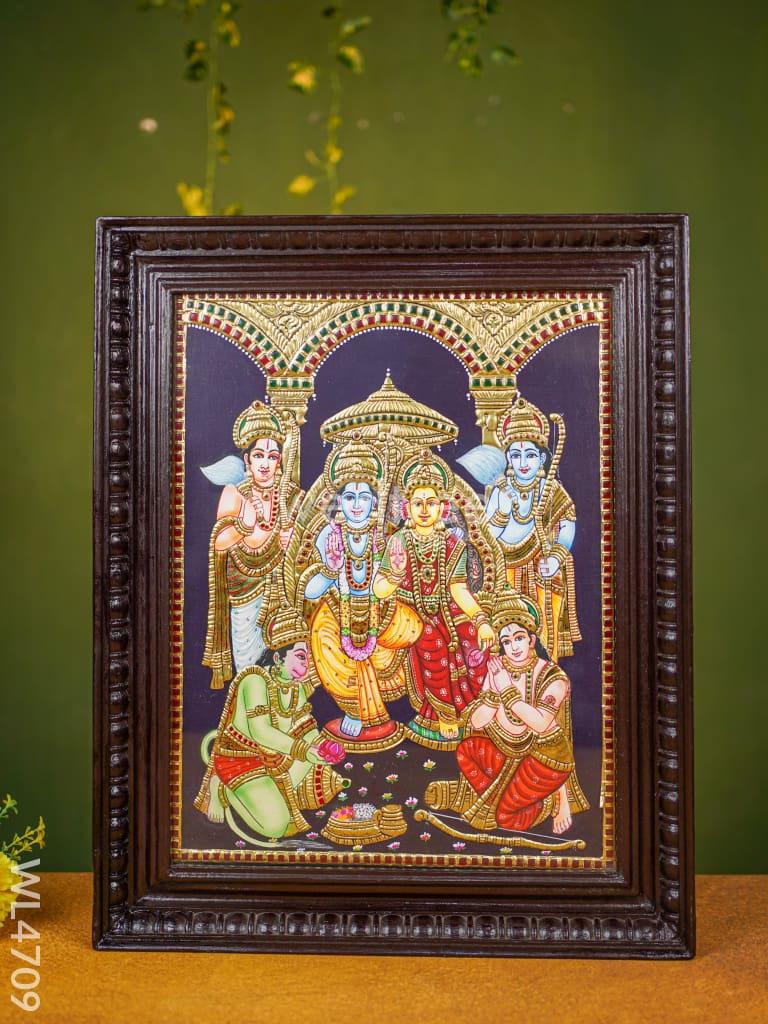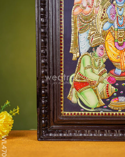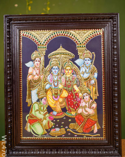 - Ram Darbar Tanjore Painting is a magnificent Depiction of Lord Rama with his Divine Consort Sita, his Loyal Brother Lakshmana, and the Devoted Hanuman crafted in the Traditional Tanjore Style.