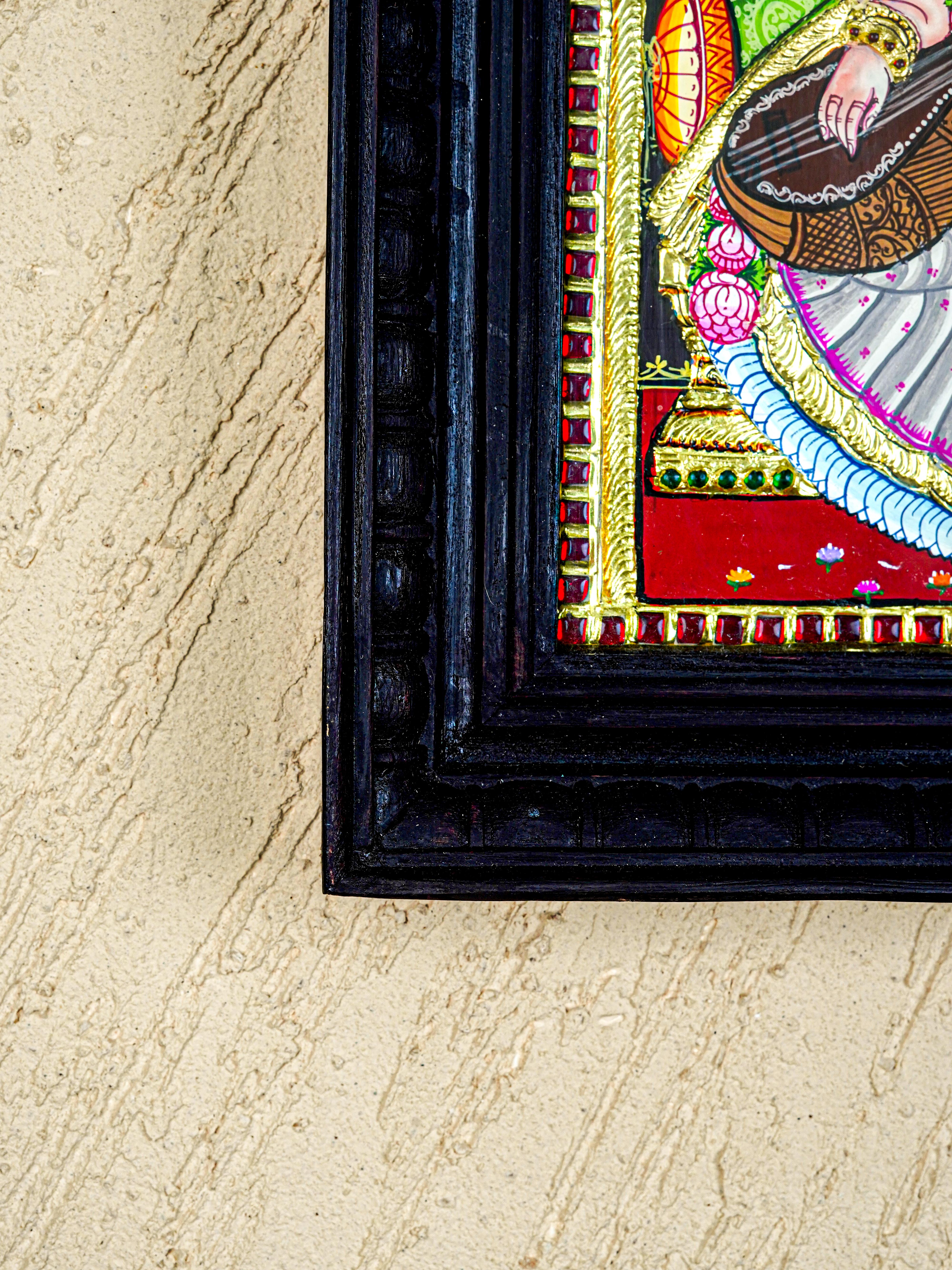 - Note: The flat style in Tanjore painting is the basic form where the Gold foil is stuck over a paper sheet and this is pasted over the painting. Size mentioned includes frame.