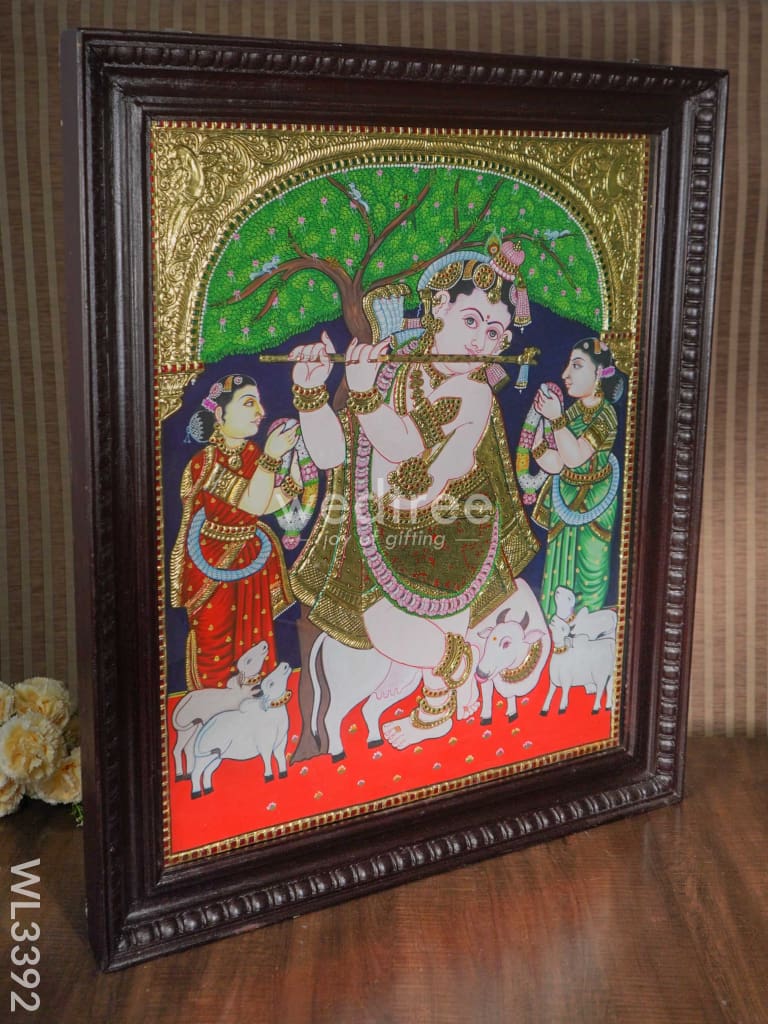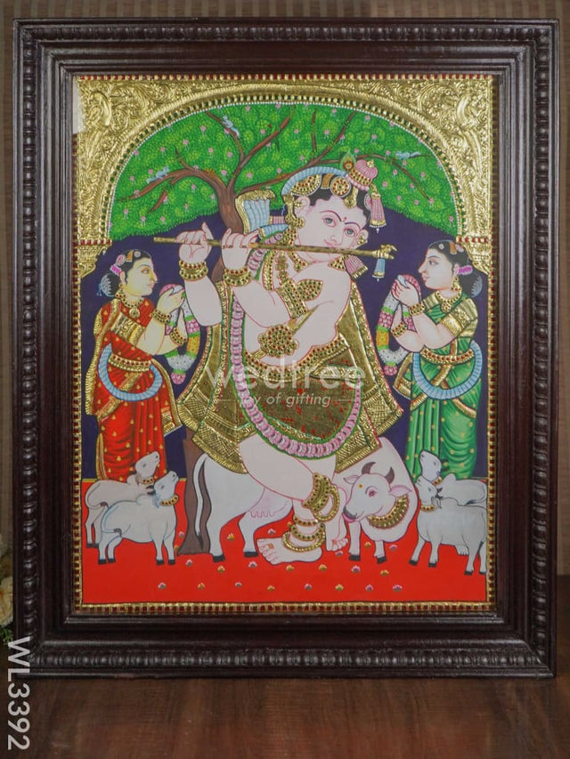 Tanjore Painting - Flute Krishna - Semi Embossed - 30x24 inch - WL3392