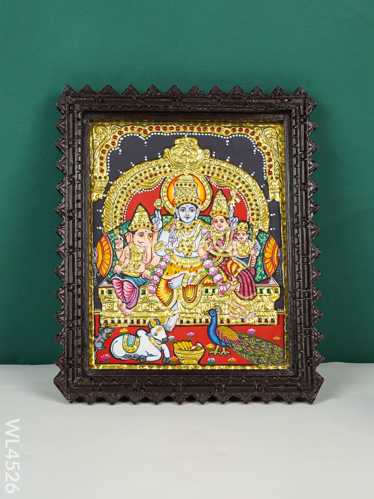 Tanjore Painting (Chettinad Frame) - Shiv Parivar - Flat (Gold Foil) - 10x8 inch - WL4526