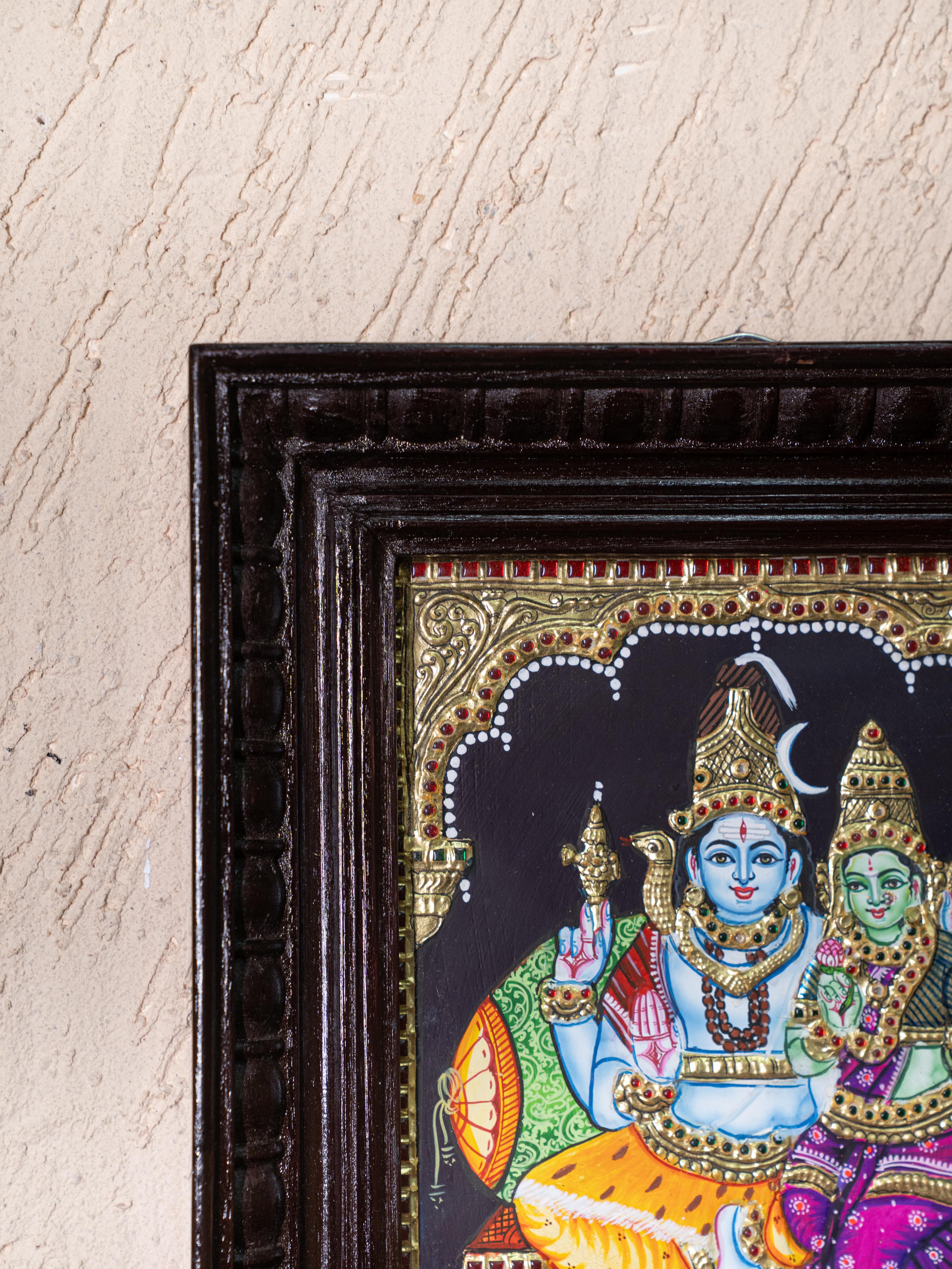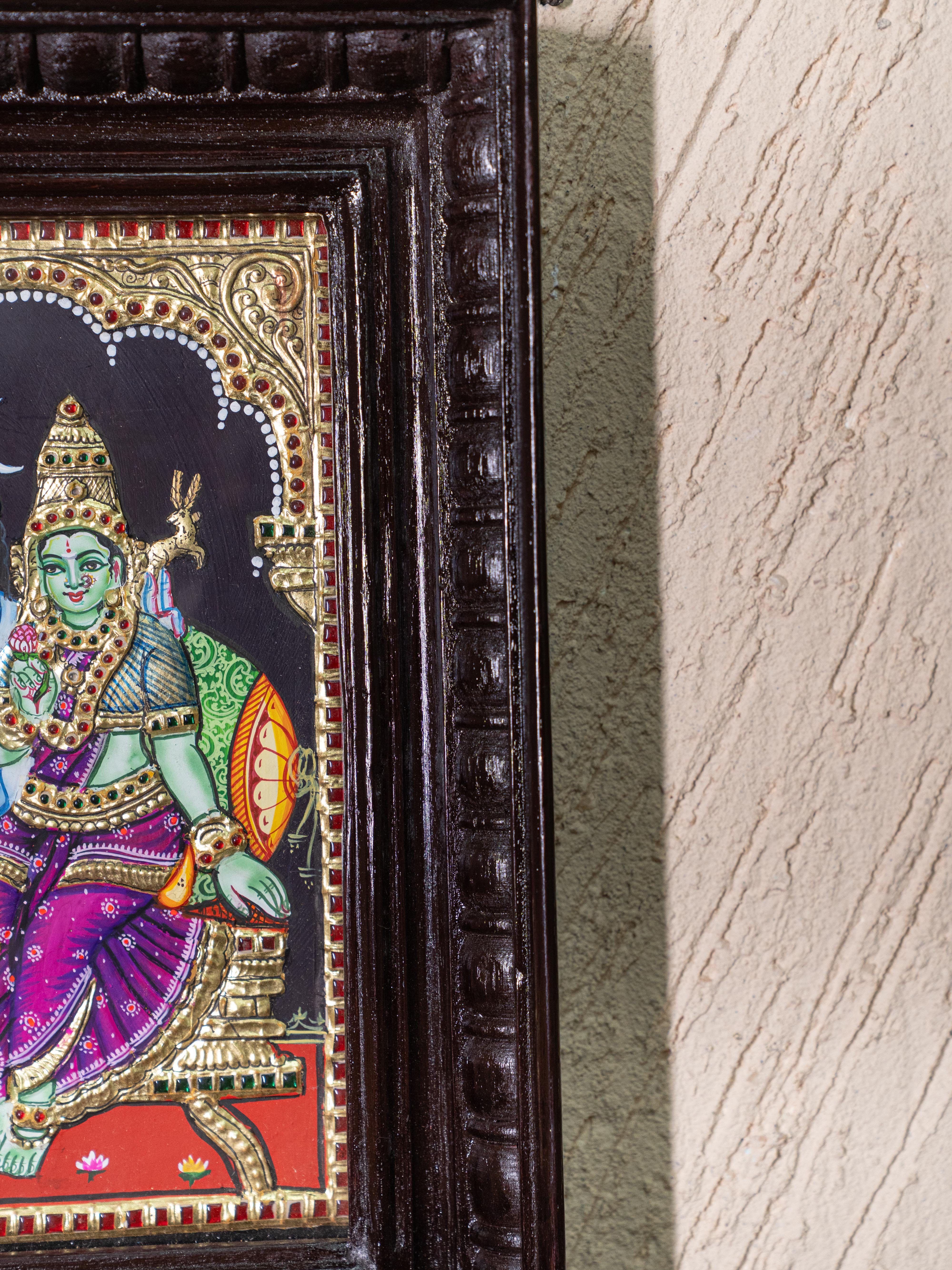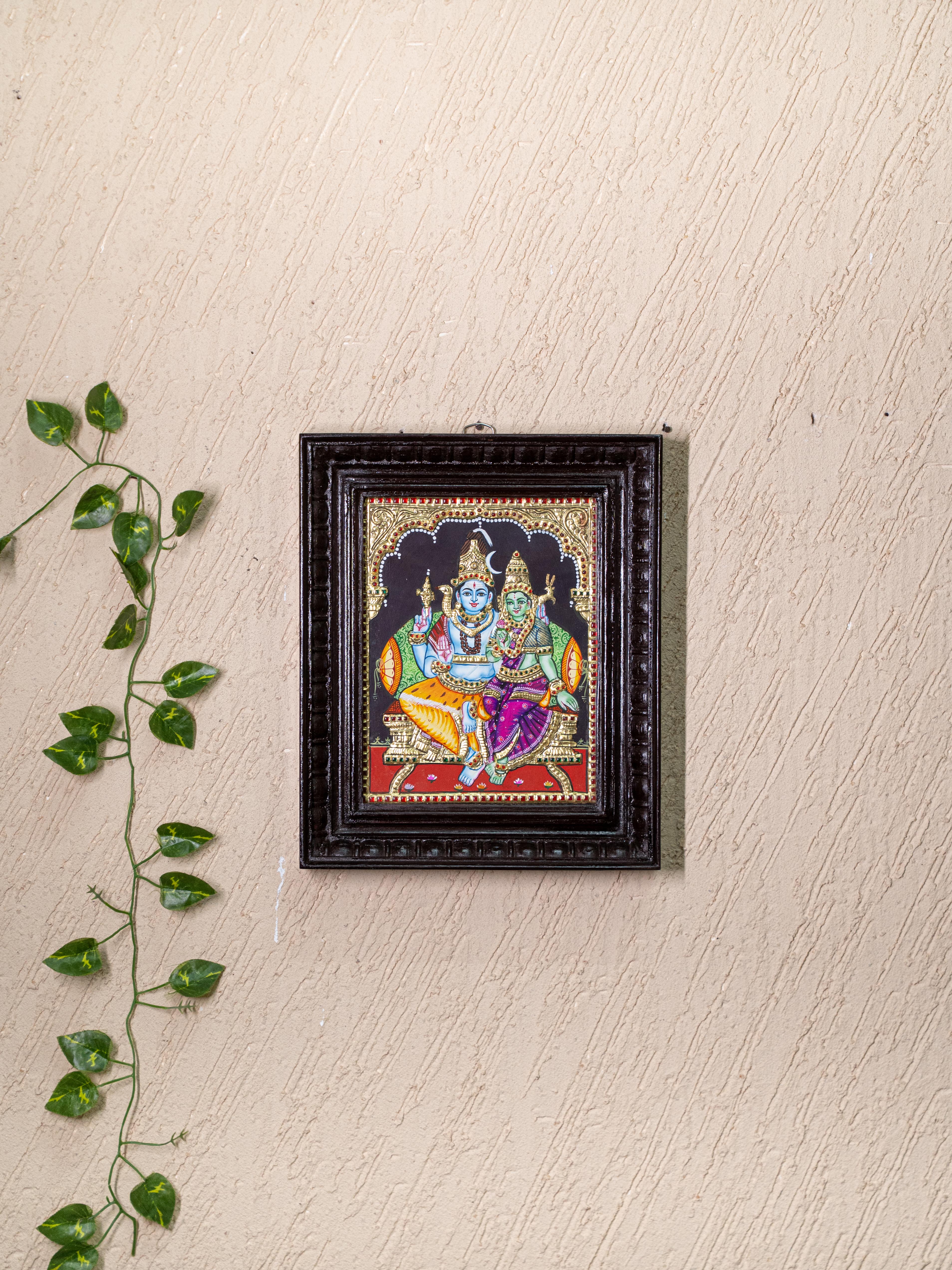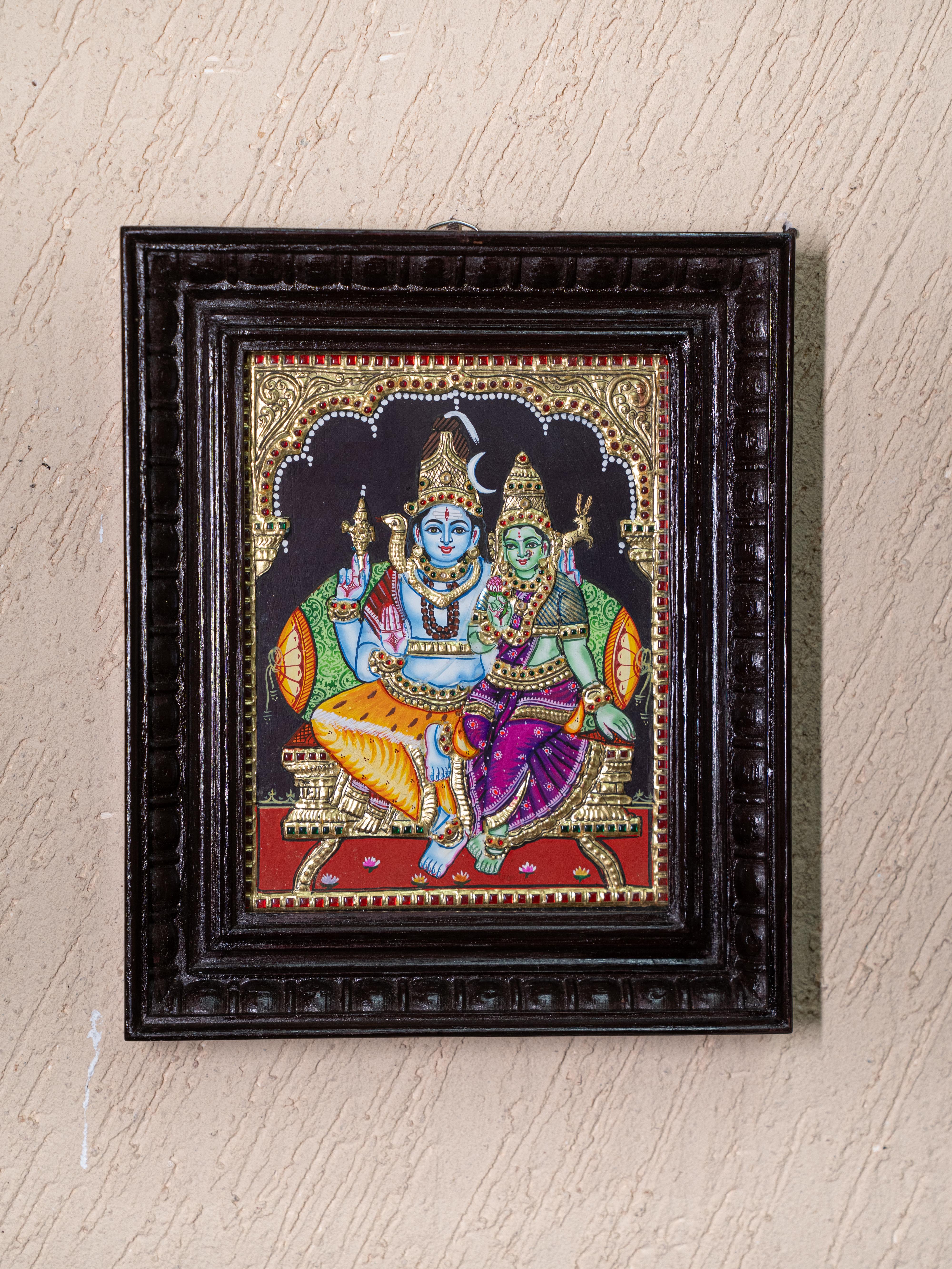 - This Magnificent Tanjore Painting Depicts Lord Shiva and Goddess Parvathi Seated in Divine Harmony.