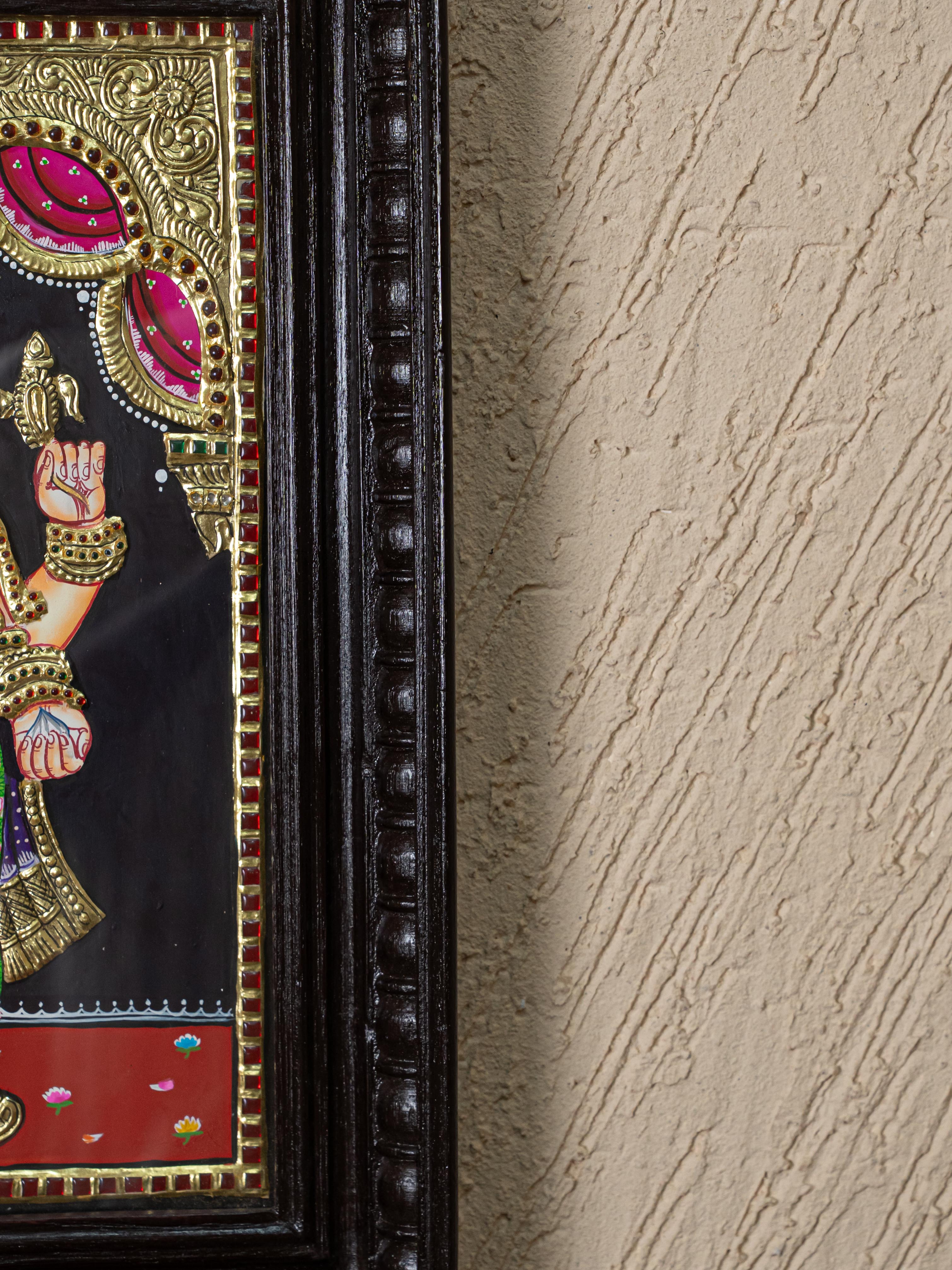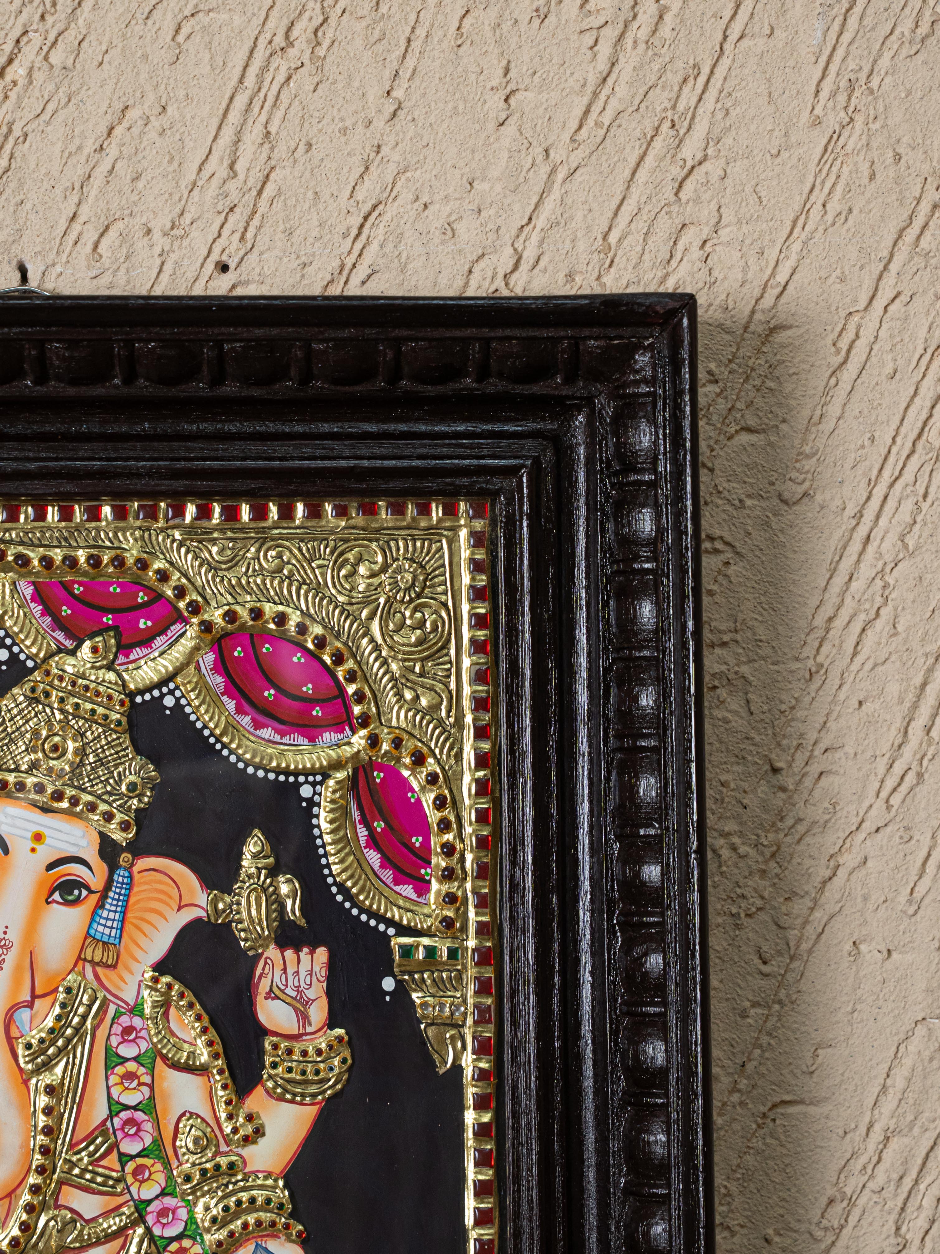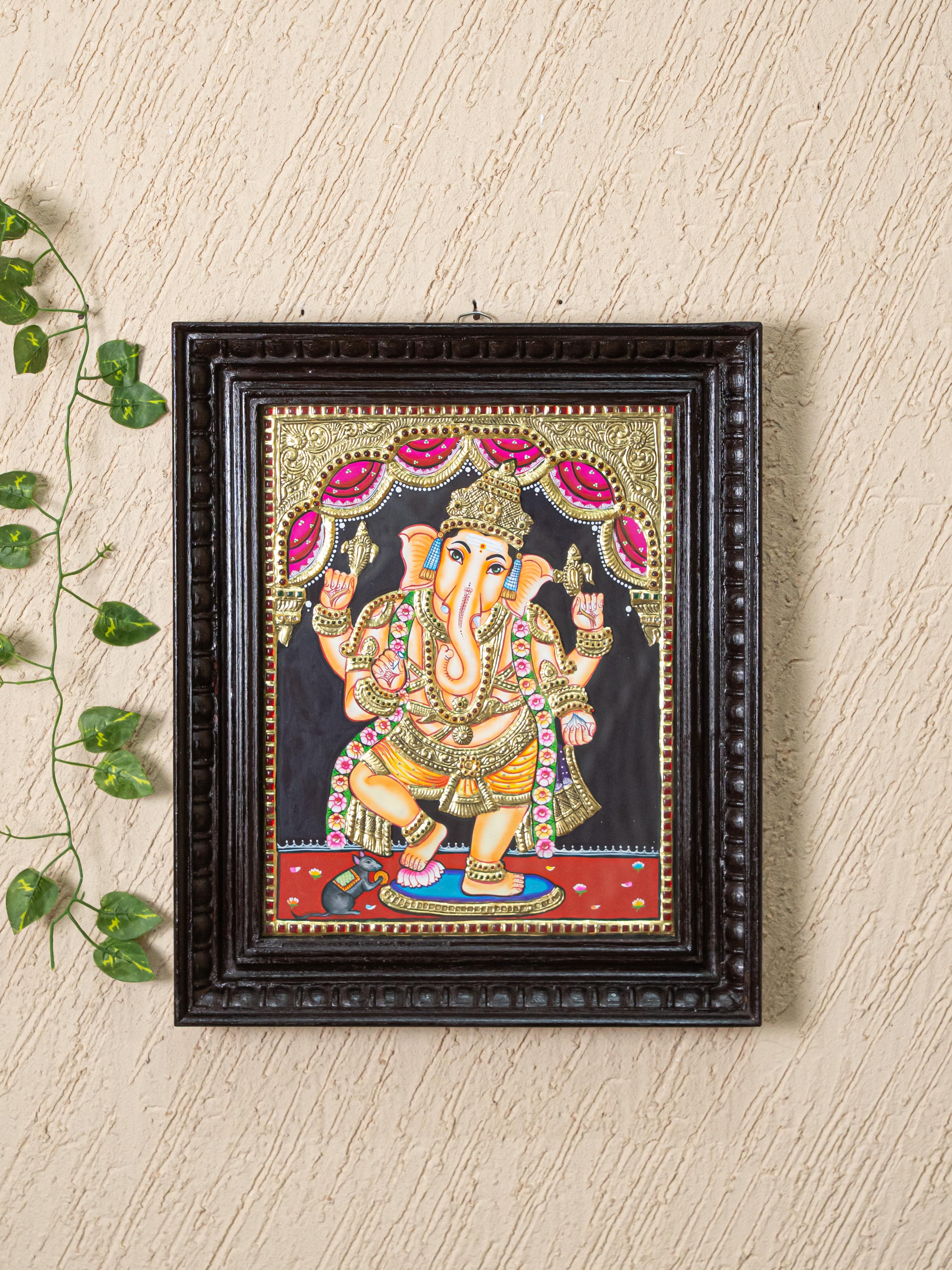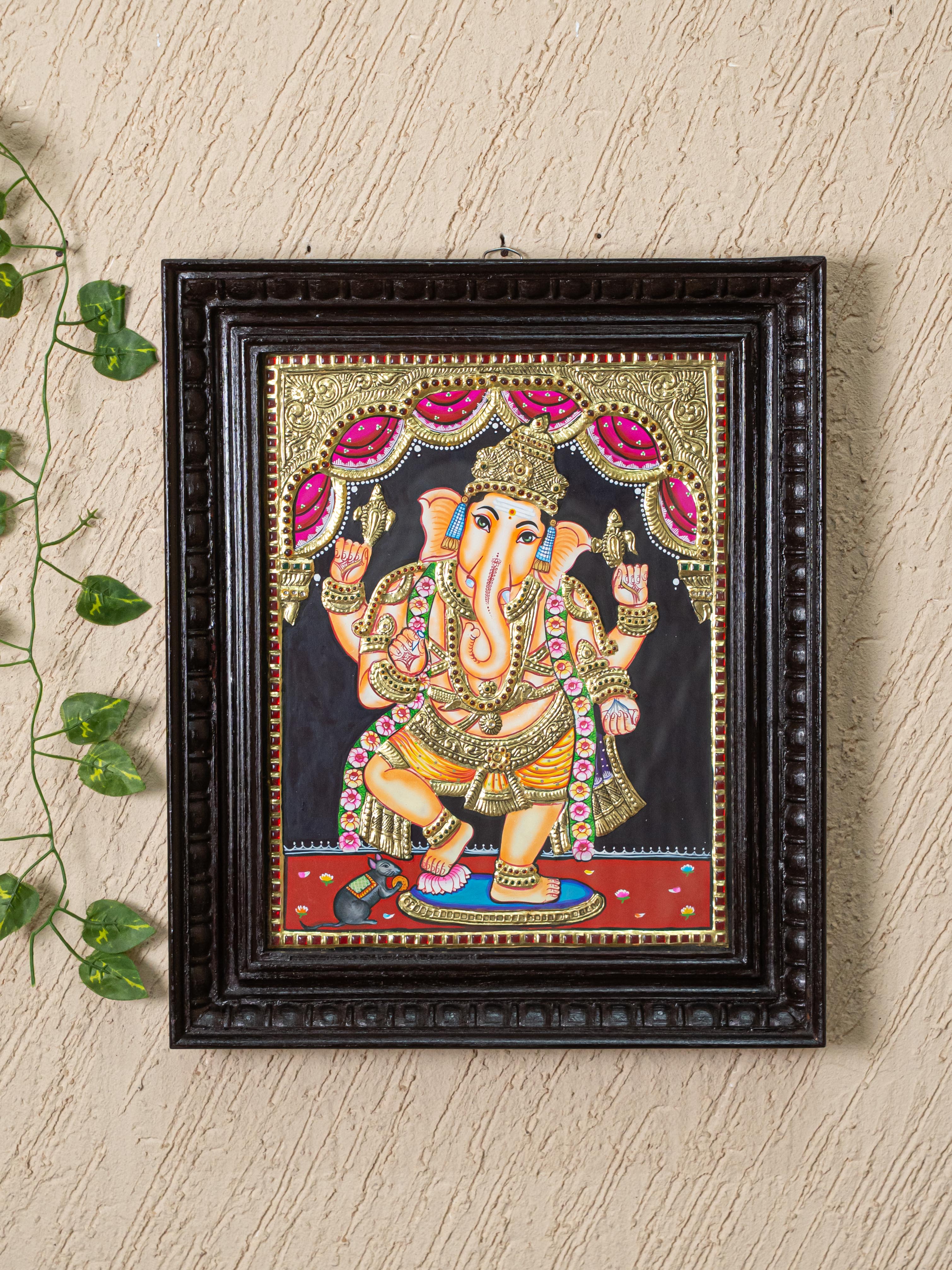 - Tanjore Painting Devotional Description of Graceful Standing Posture, Ganesha Radiates Strength, Wisdom, and Auspicious Energy.