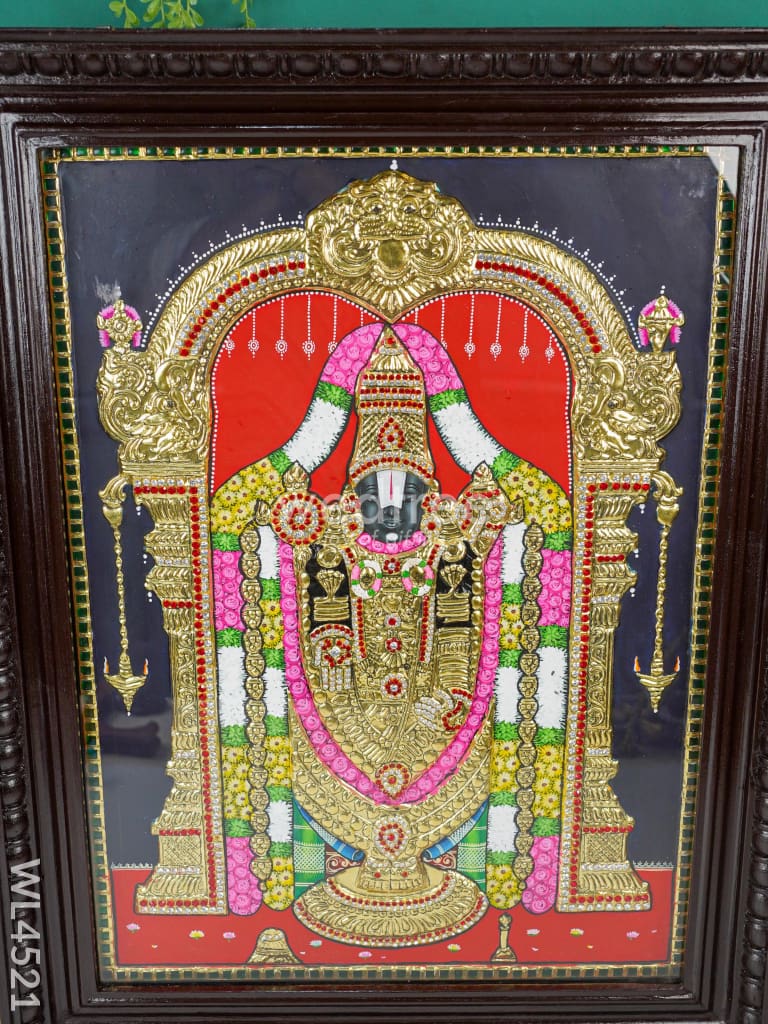 - Here is a beautiful Tanjore painting that features Tirupati Balaji beautifully hand painted.