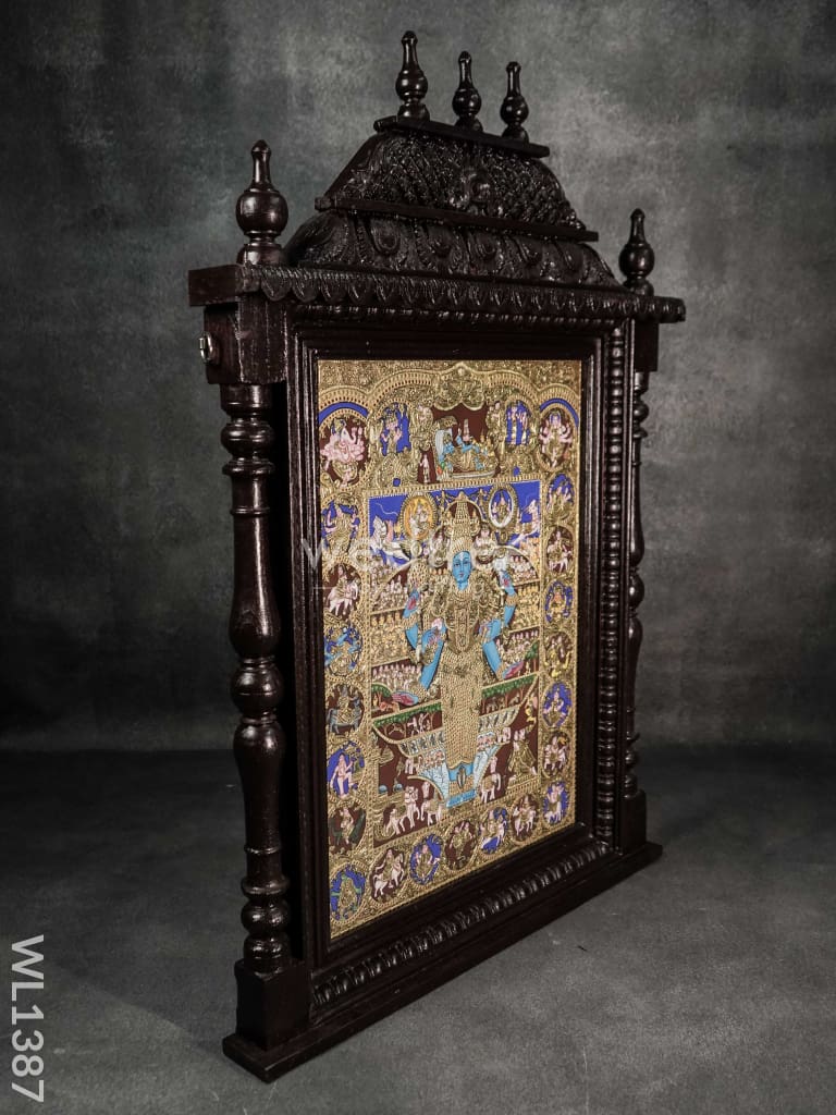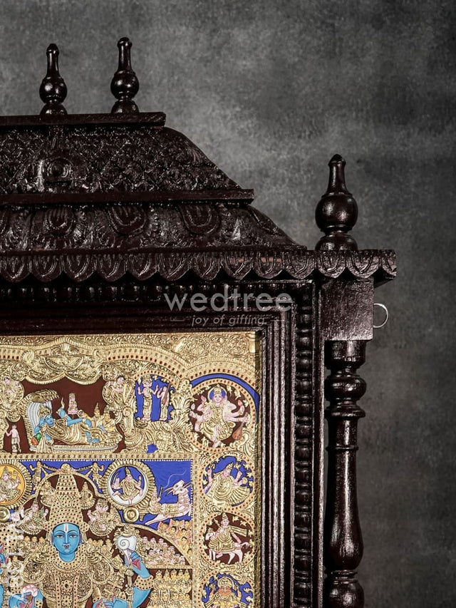 - This Tanjore Painting done by skilled artisans comes in a Teak wood mani mandapam.