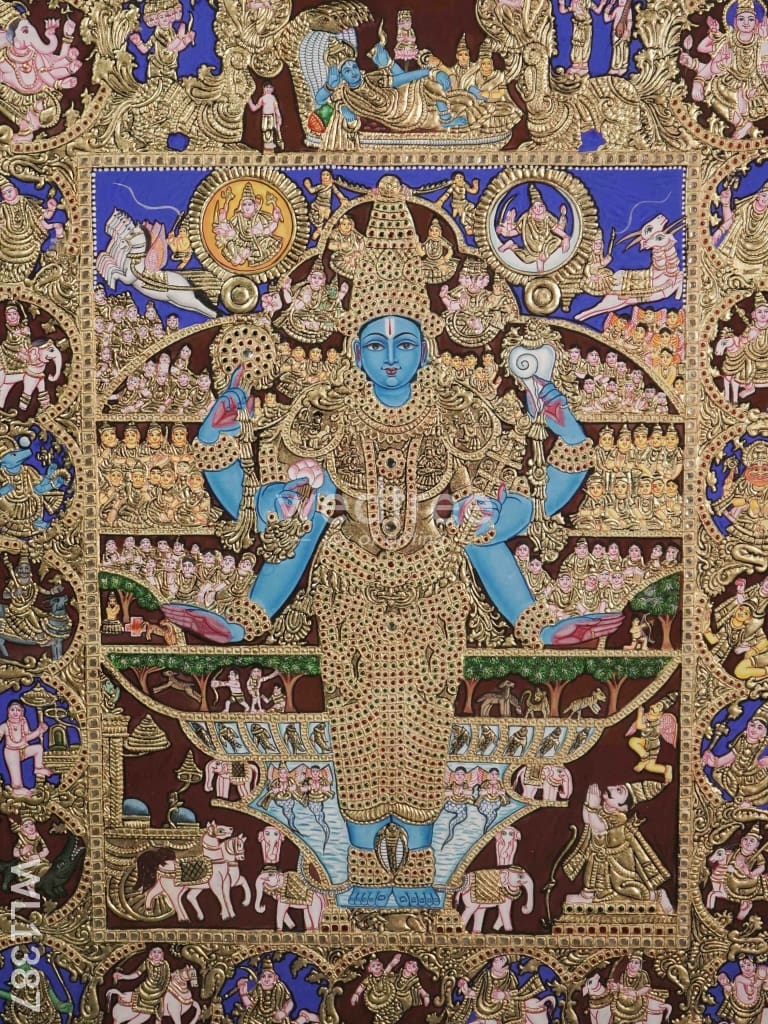 - A fantastic display of Vishwaroopam of Shri Maha Vishnu in a beautiful Tanjore Painting!