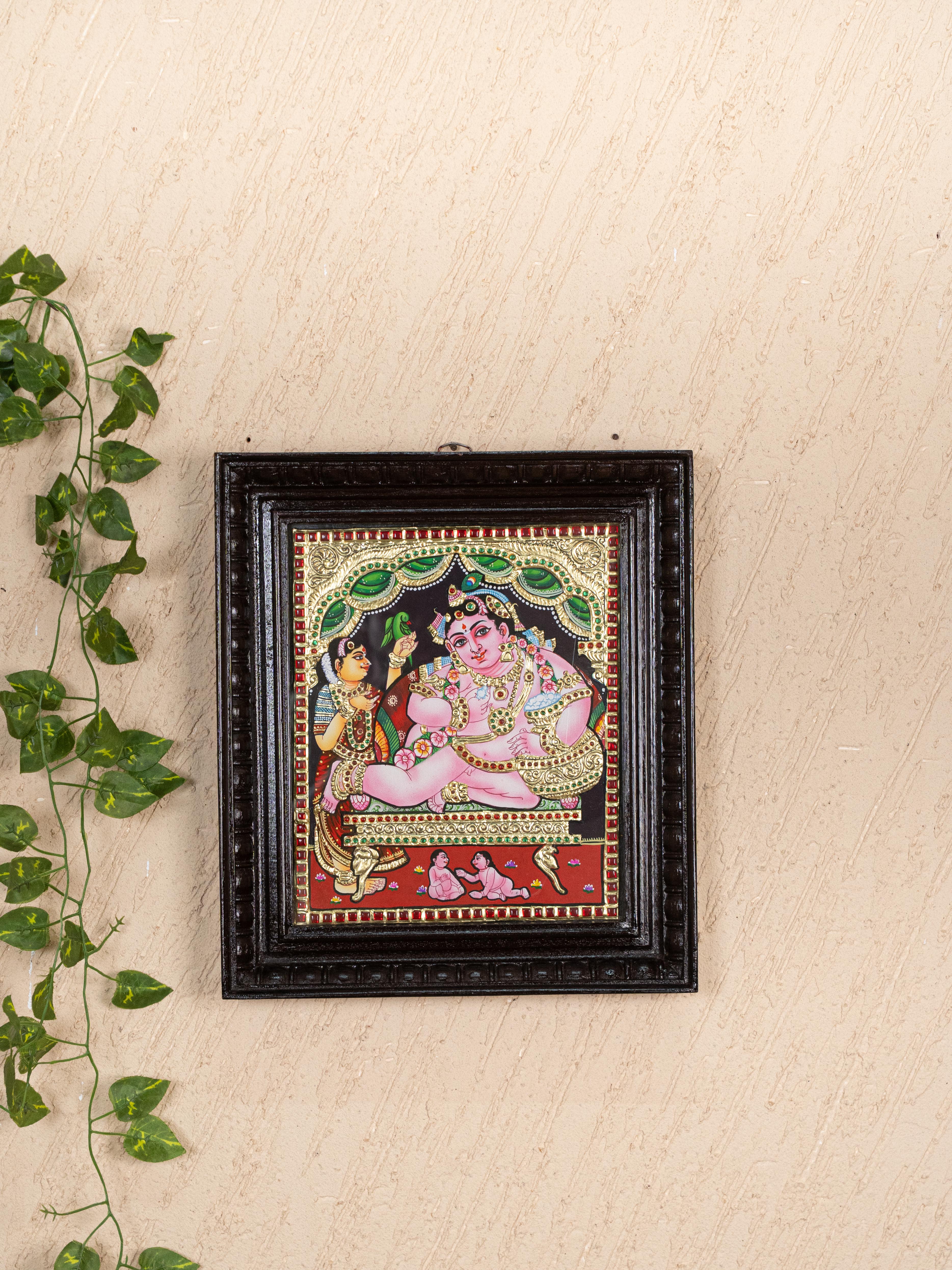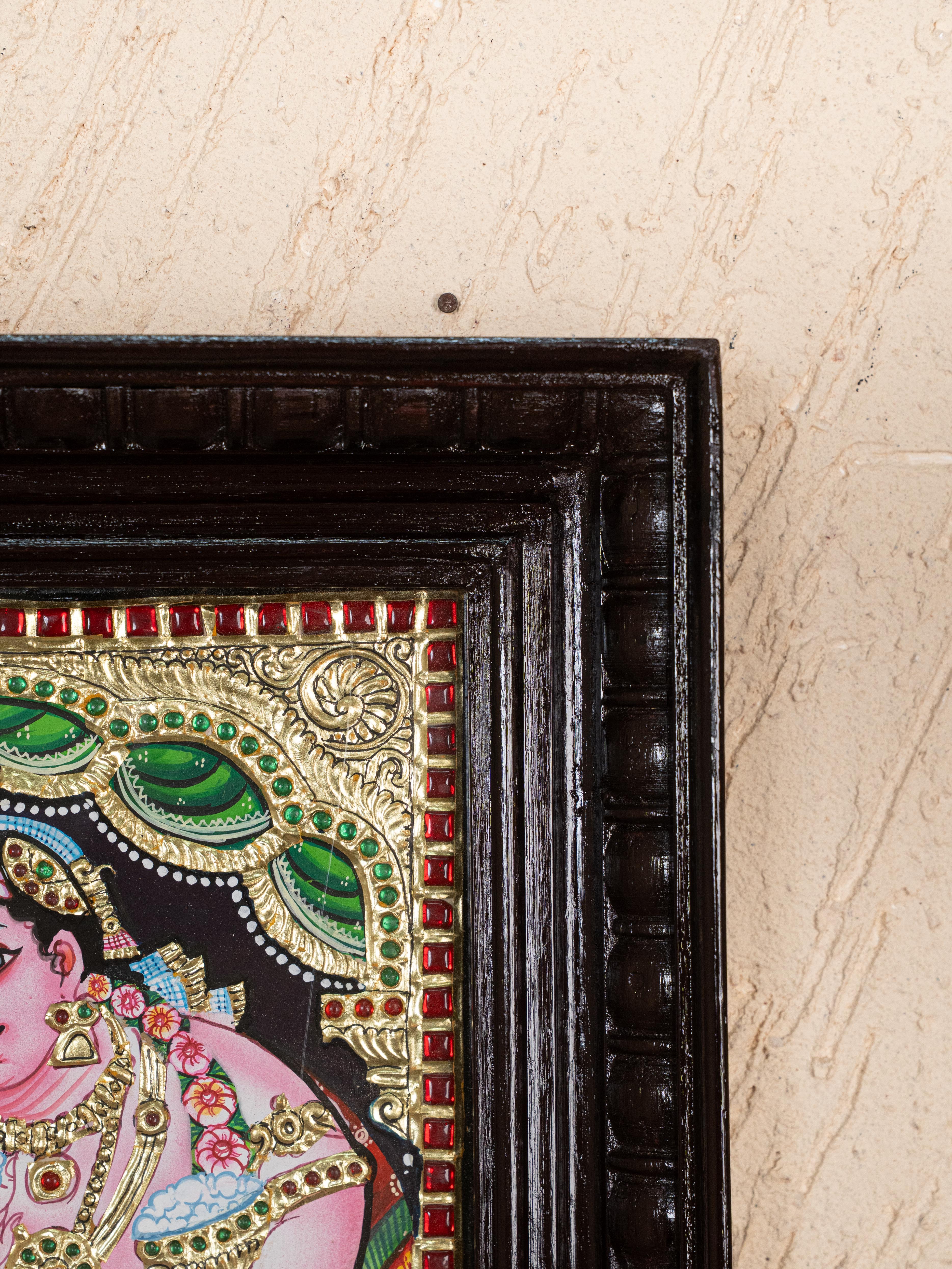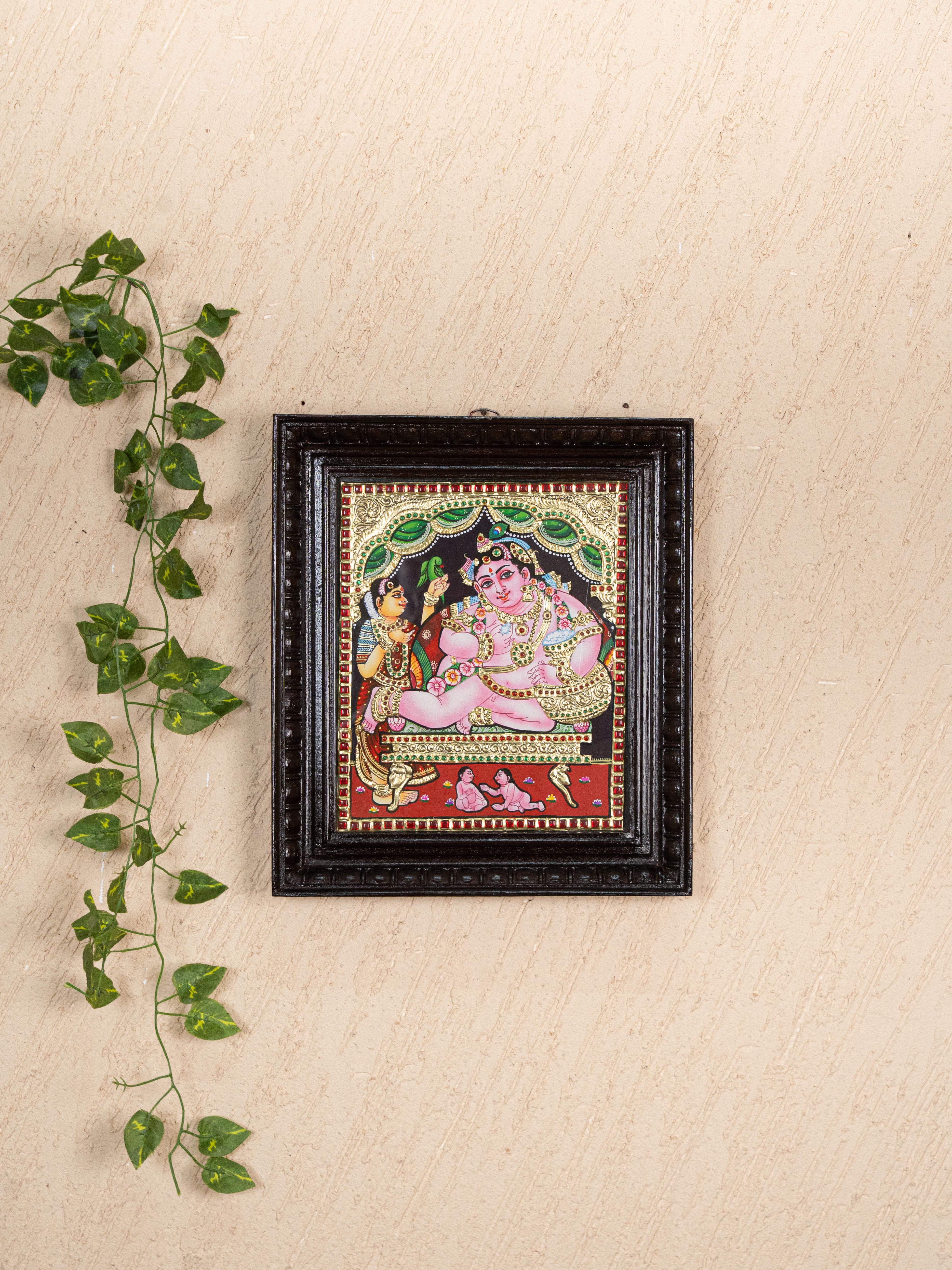 - Note: The flat style in Tanjore painting is the basic form where the Gold foil is stuck over a paper sheet and this is pasted over the painting. Size mentioned includes frame.