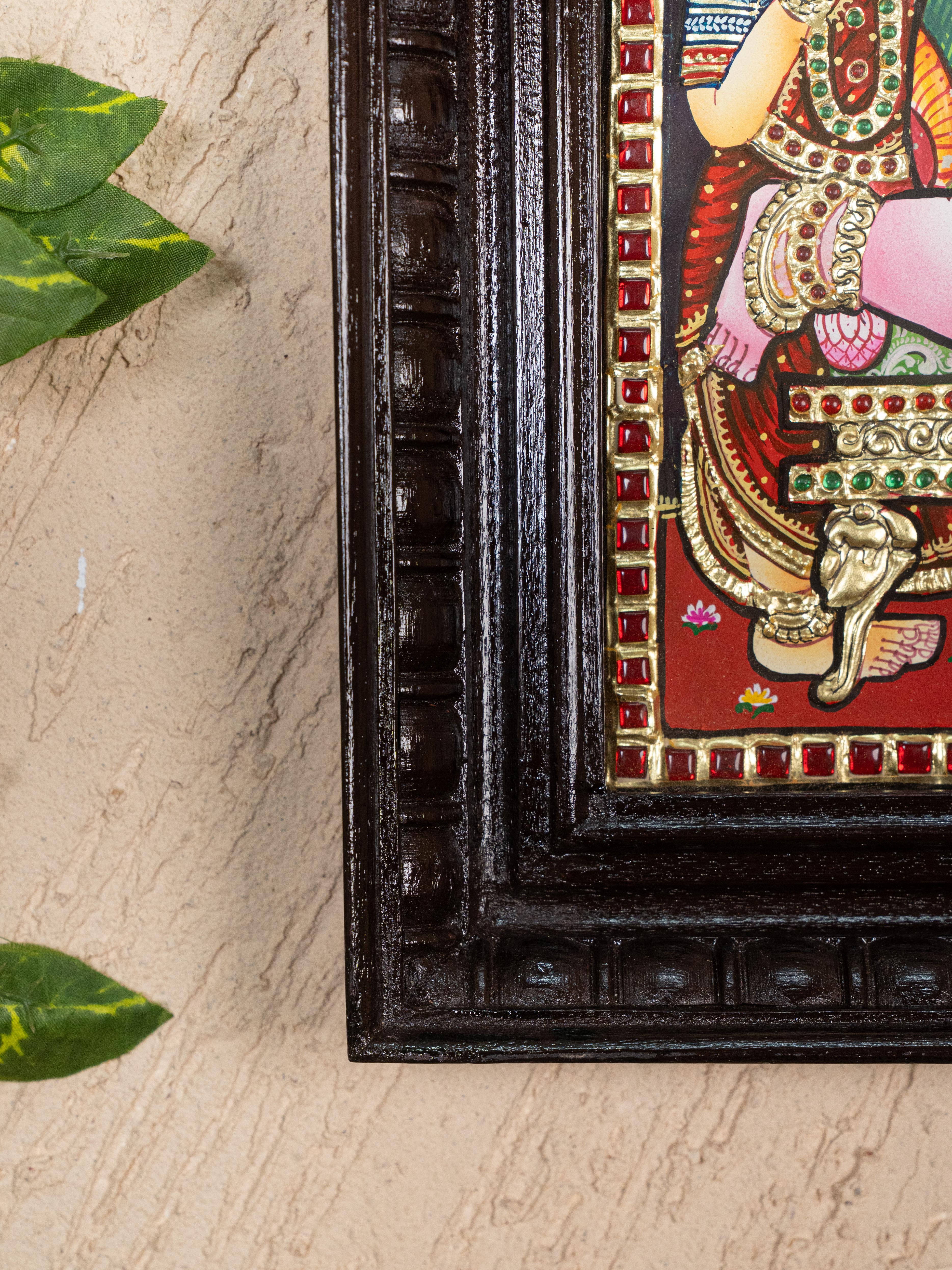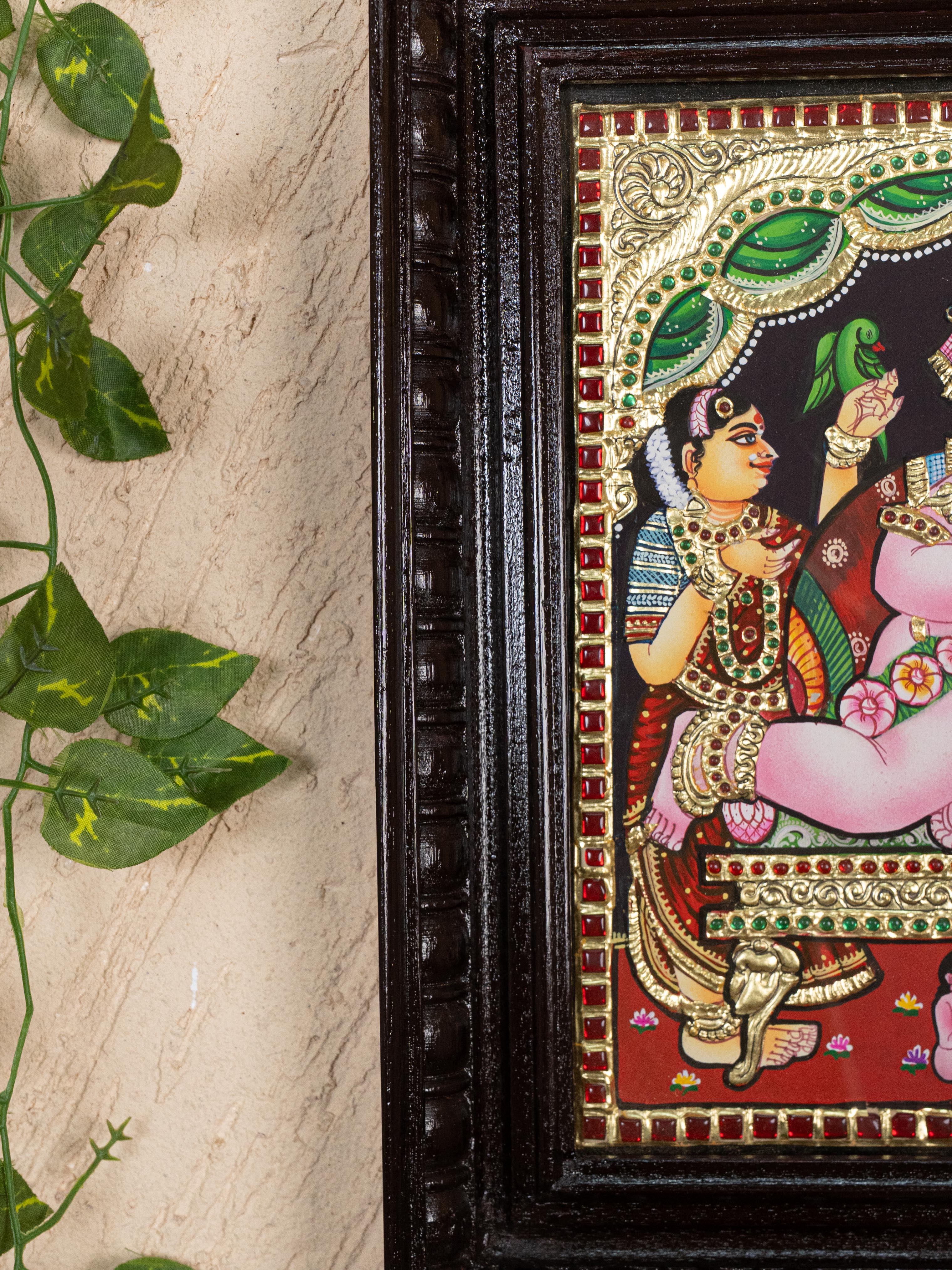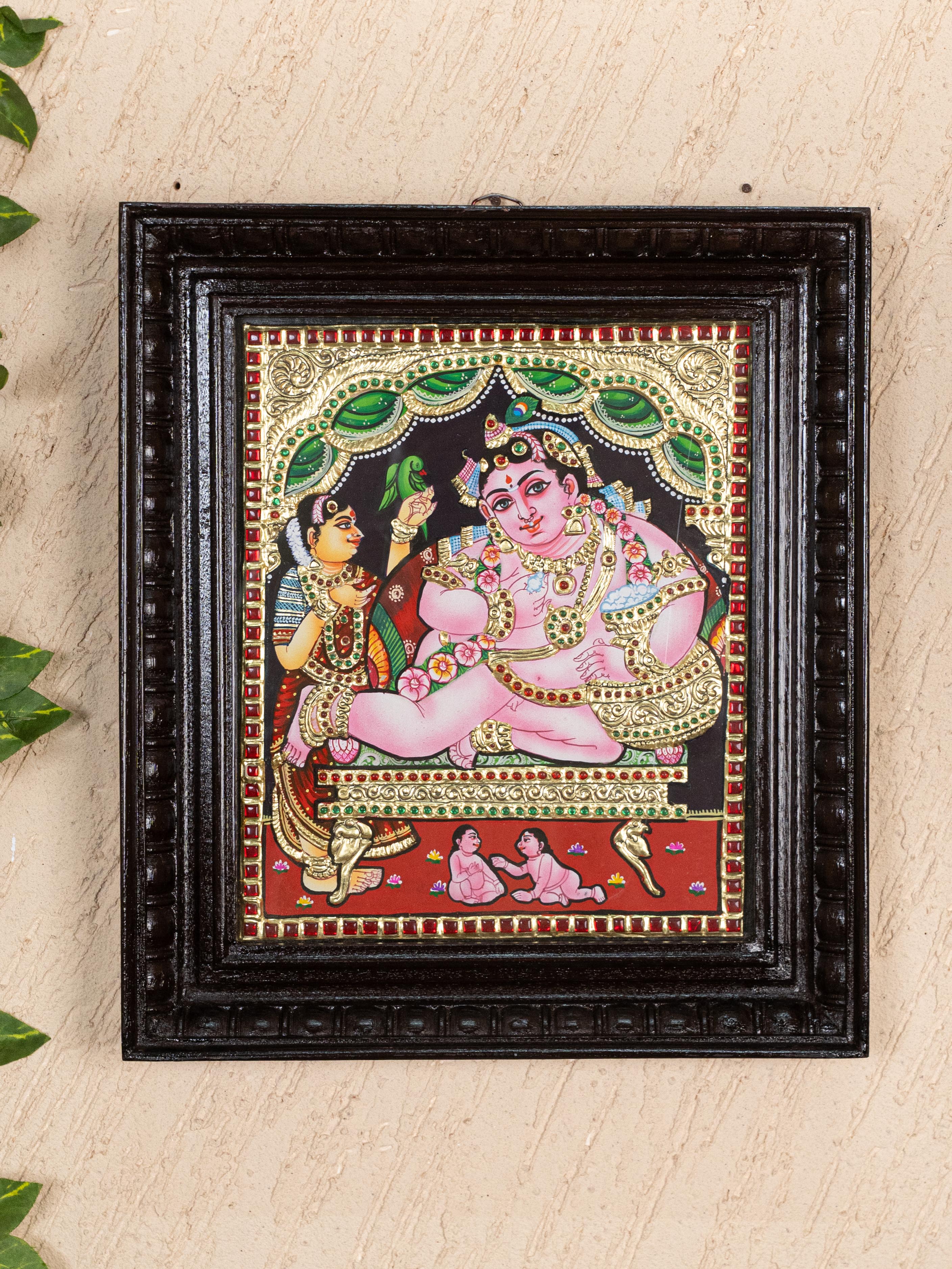 - Note: The flat style in Tanjore painting is the basic form where the Gold foil is stuck over a paper sheet and this is pasted over the painting. Size mentioned includes frame.
