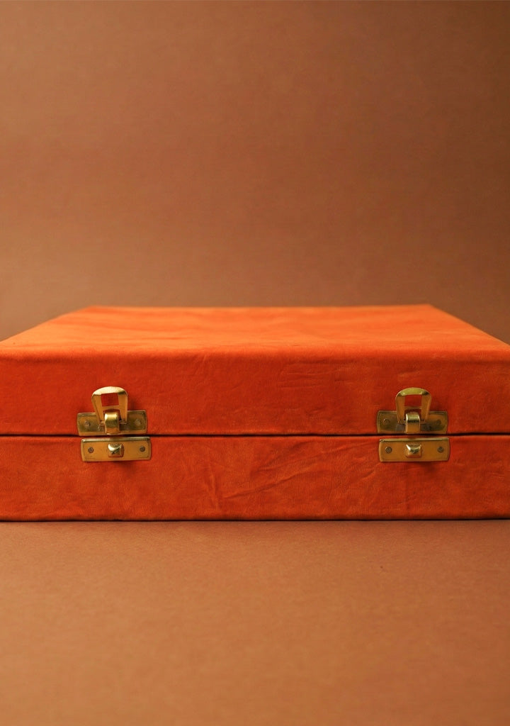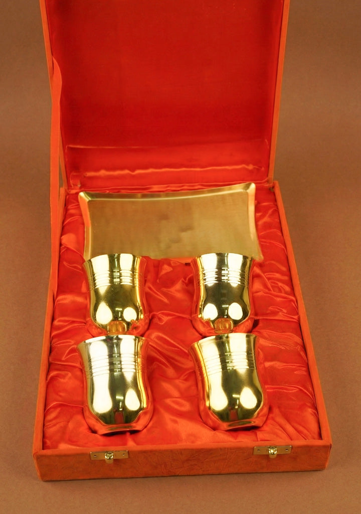- Elegant and Eye-catching Italian-Style Serving Tray Set Paired with Four Kulhad-Shaped Glasses, Beautifully Presented in a Premium Orange Velvet Box.