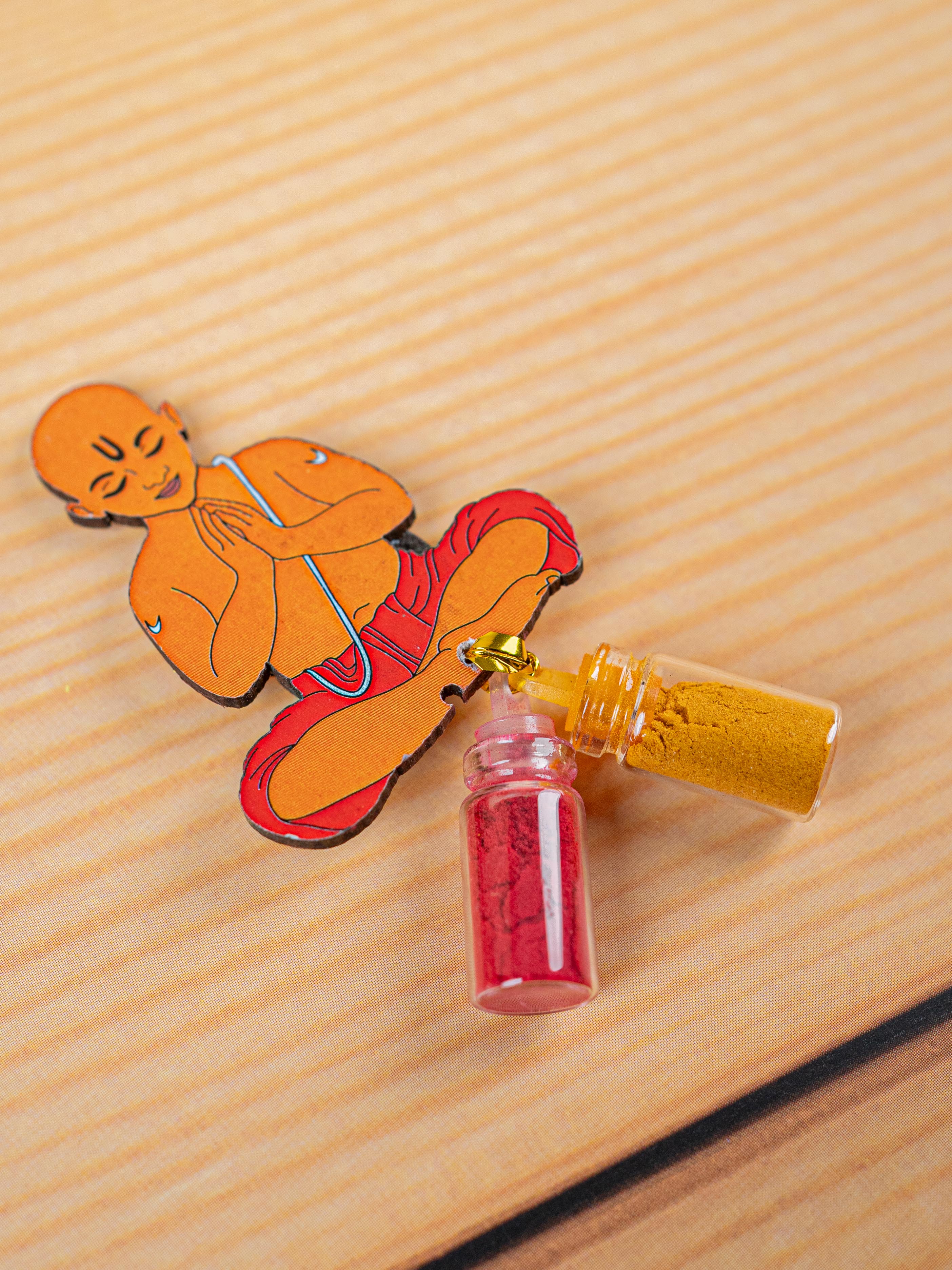 - Comes with Two Tiny Glass Vials Containing Kumkum (red powder) and Haldi (turmeric powder)