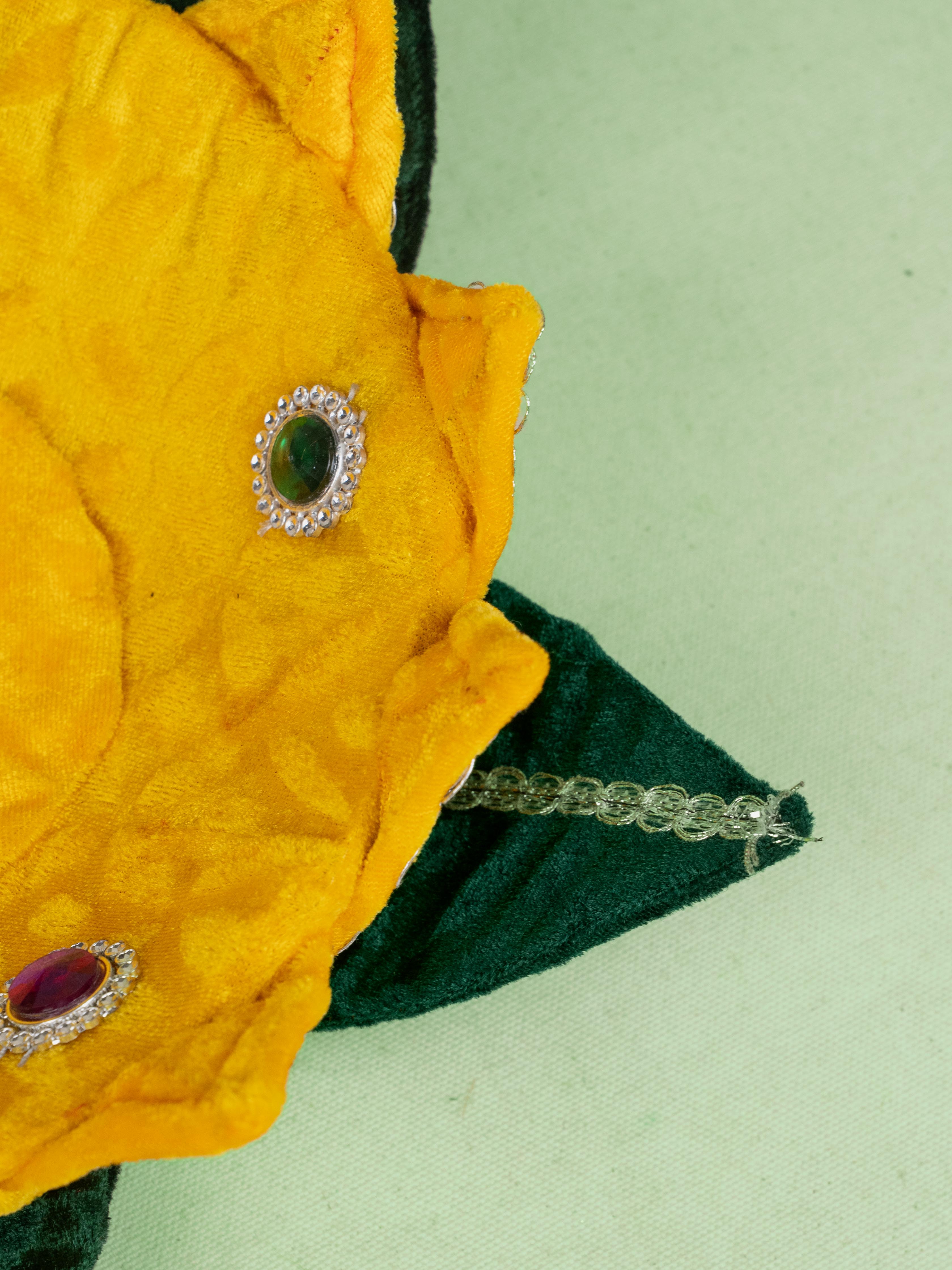 - The petals are crafted exquisitely of velvet fabric and accentuated with stone works.