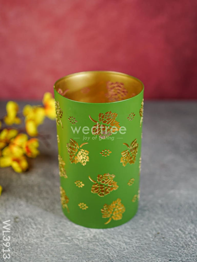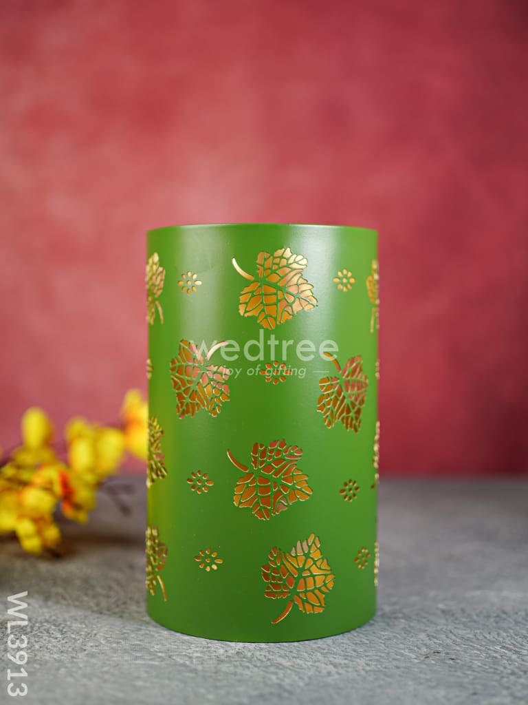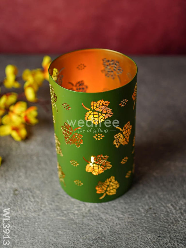 - On display here is a sparkling votive crafted of Metal and finished flawlessly with Maple leaf pattern engraving.