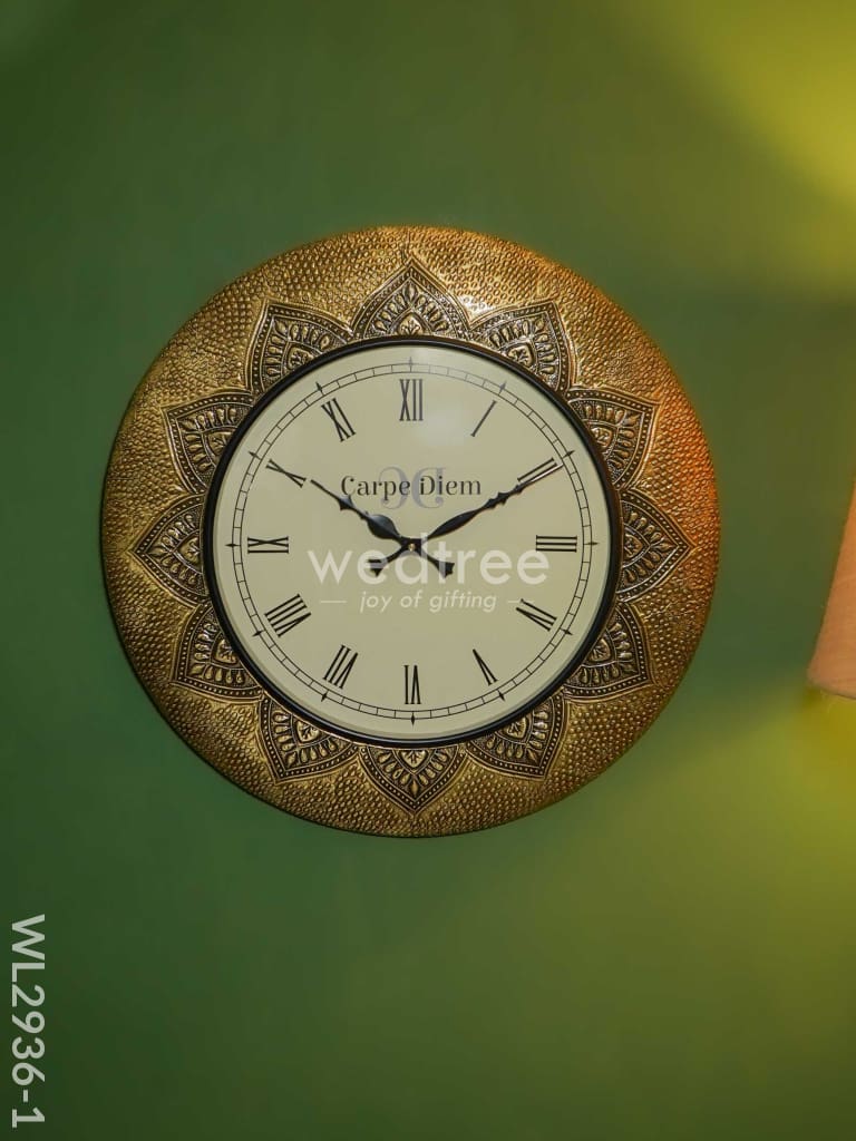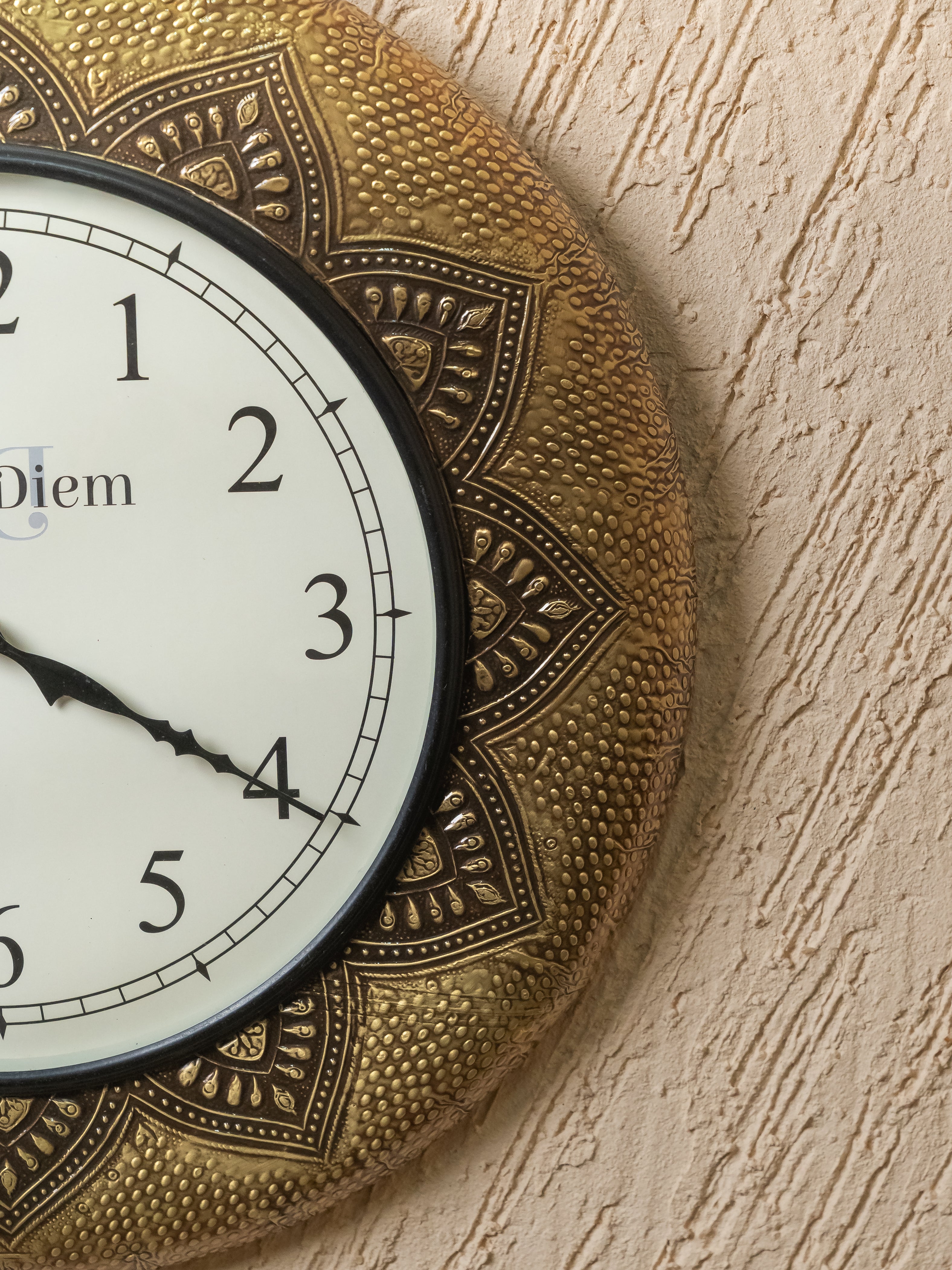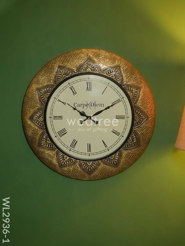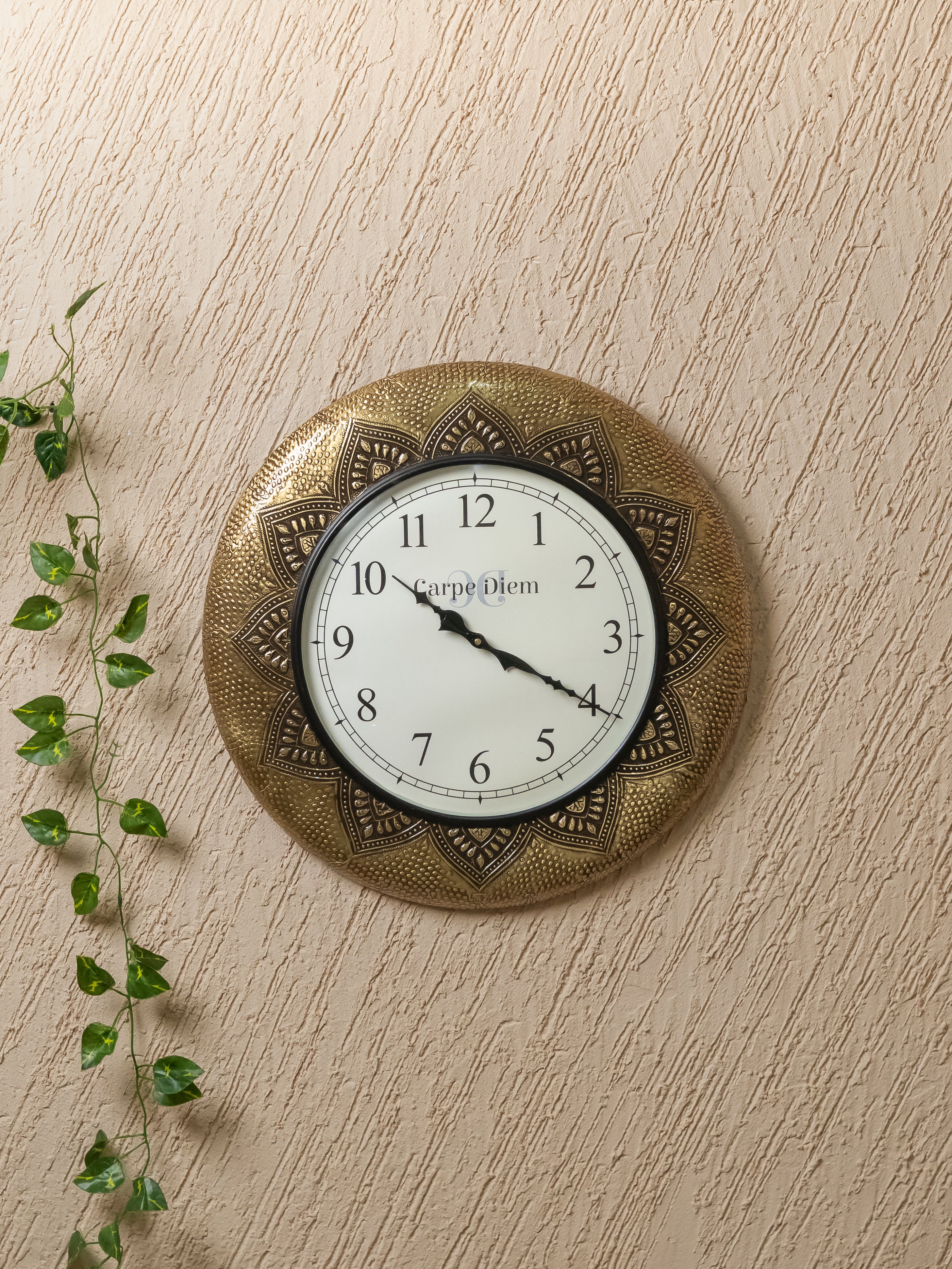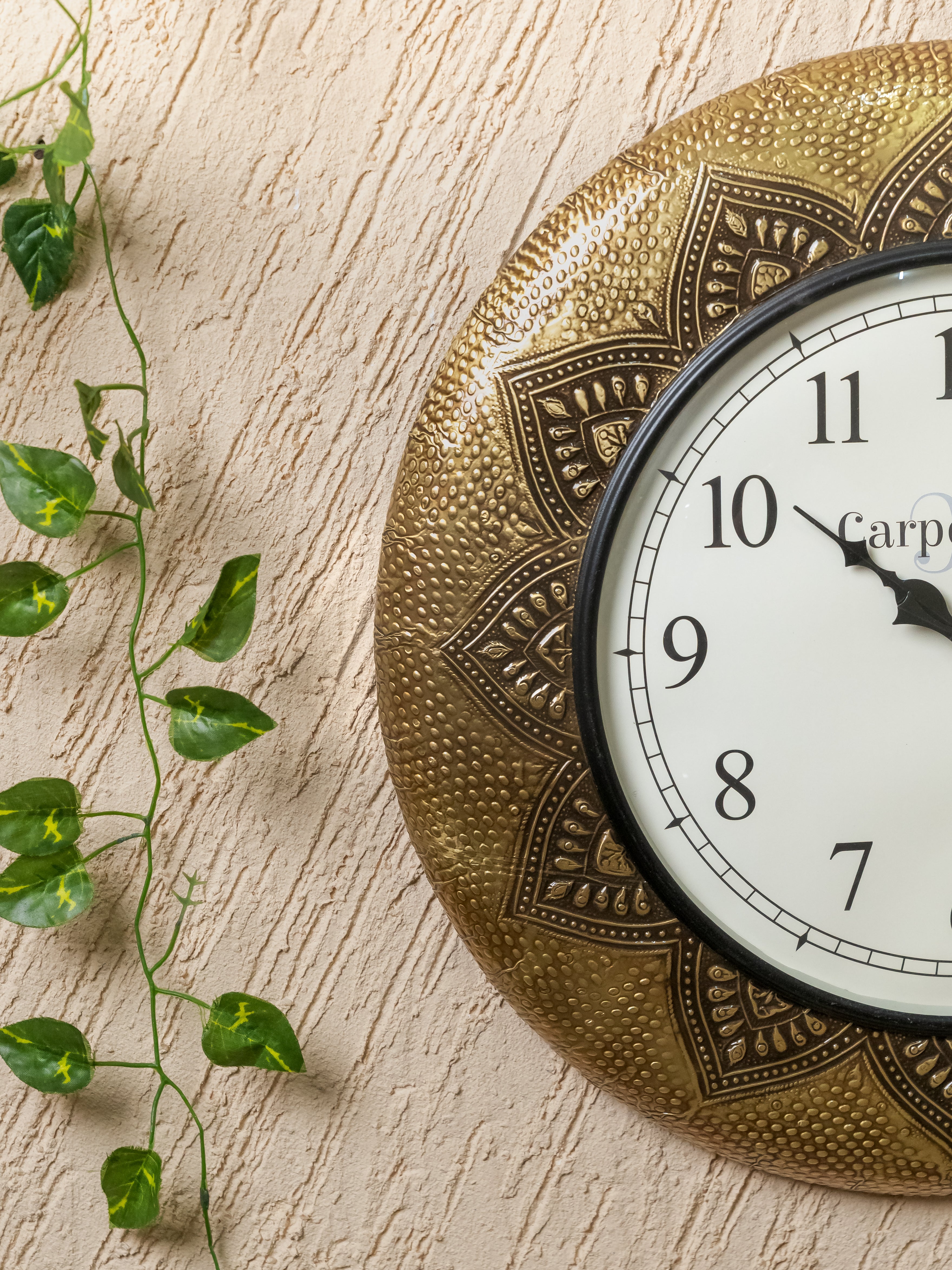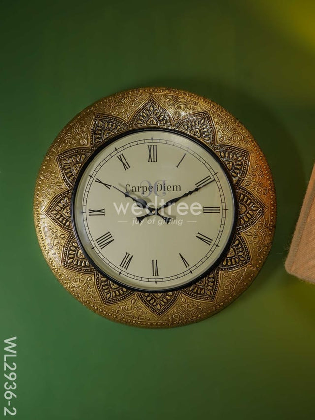 - This beautiful wall clock comes with Golden Floral Embossing on the outer frame.