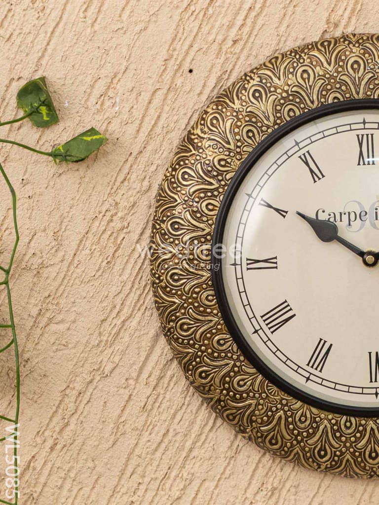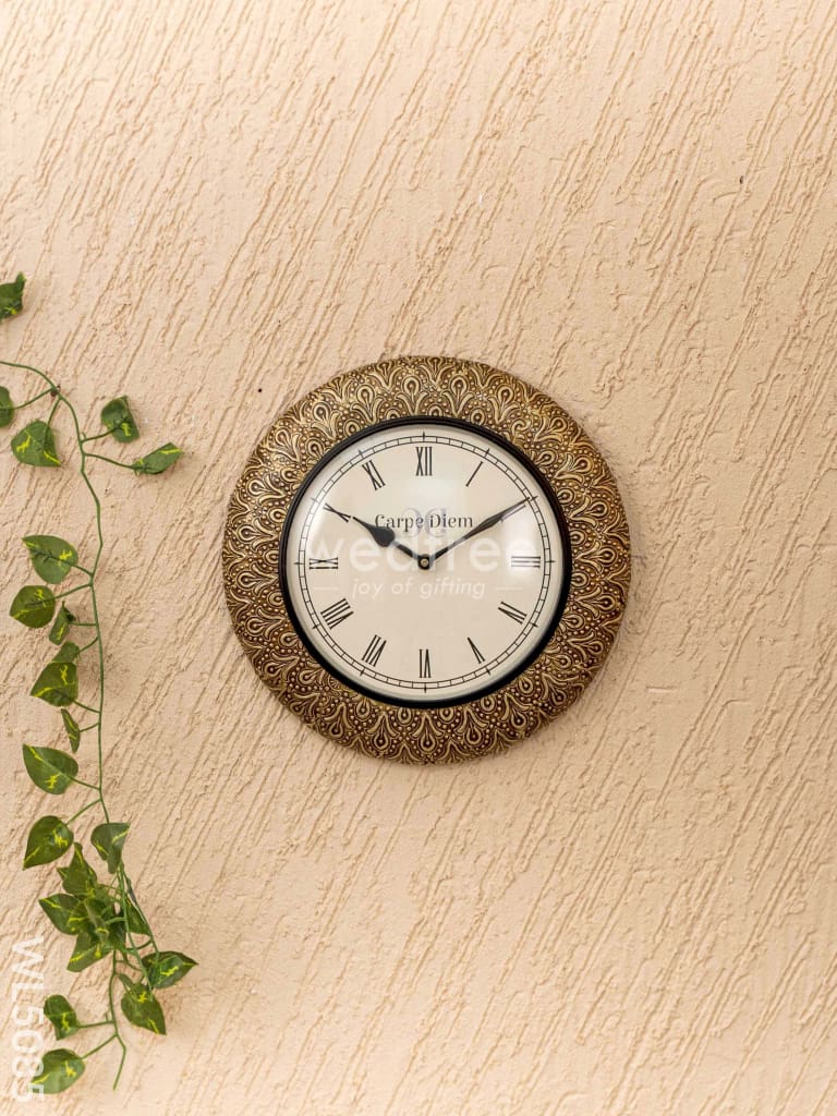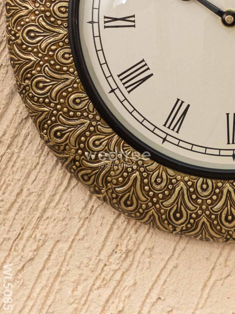 Elevate your Interiors with this Elegant 12-inch Brass Wall Clock, exquisitely Crafted with Embossed Floral Motifs.