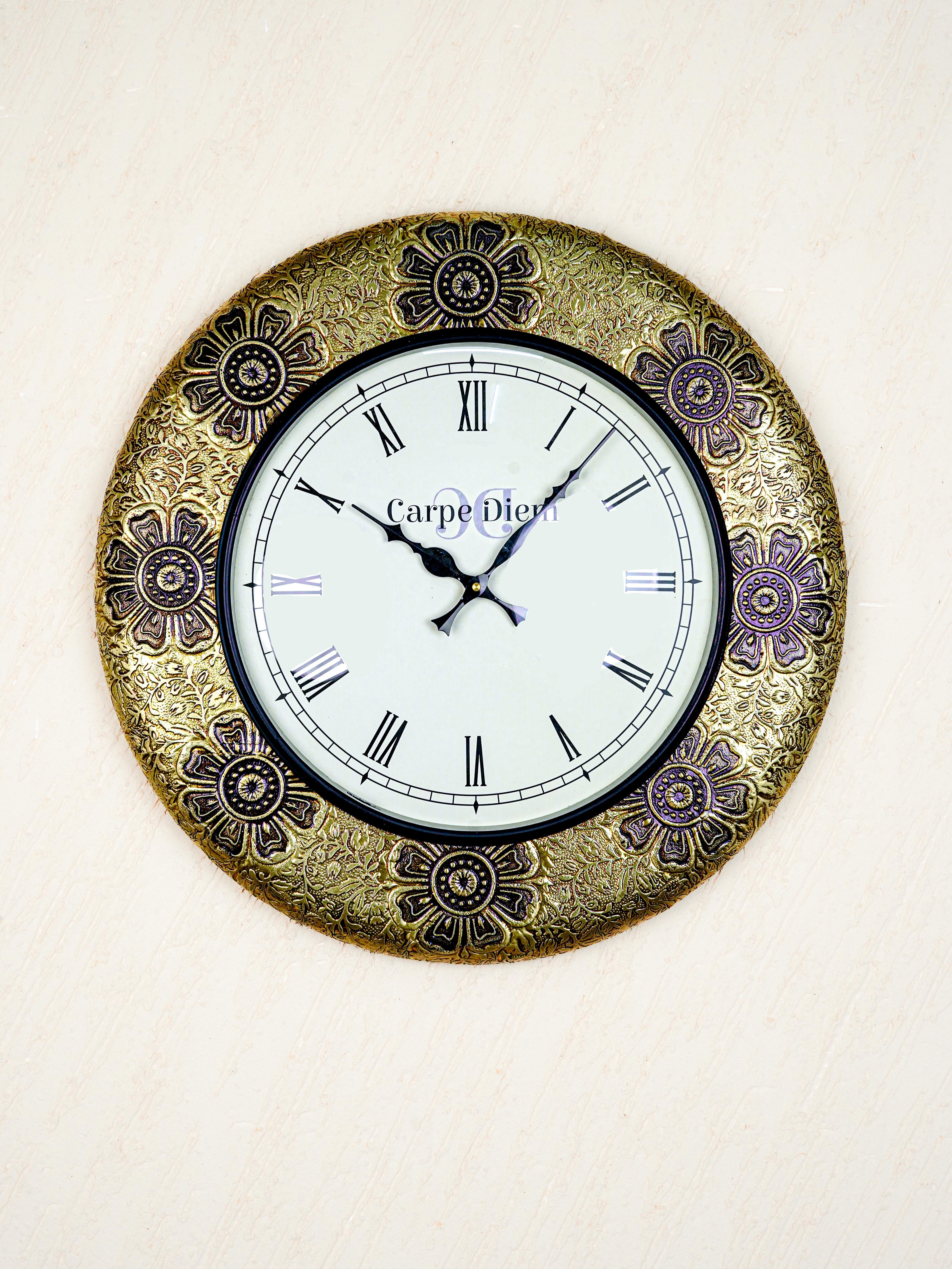 - The Outer Rim Features Intricately Embossed Floral Patterns, Adding Texture, Depth, and a Handcrafted Charm to the Clock's Frame.