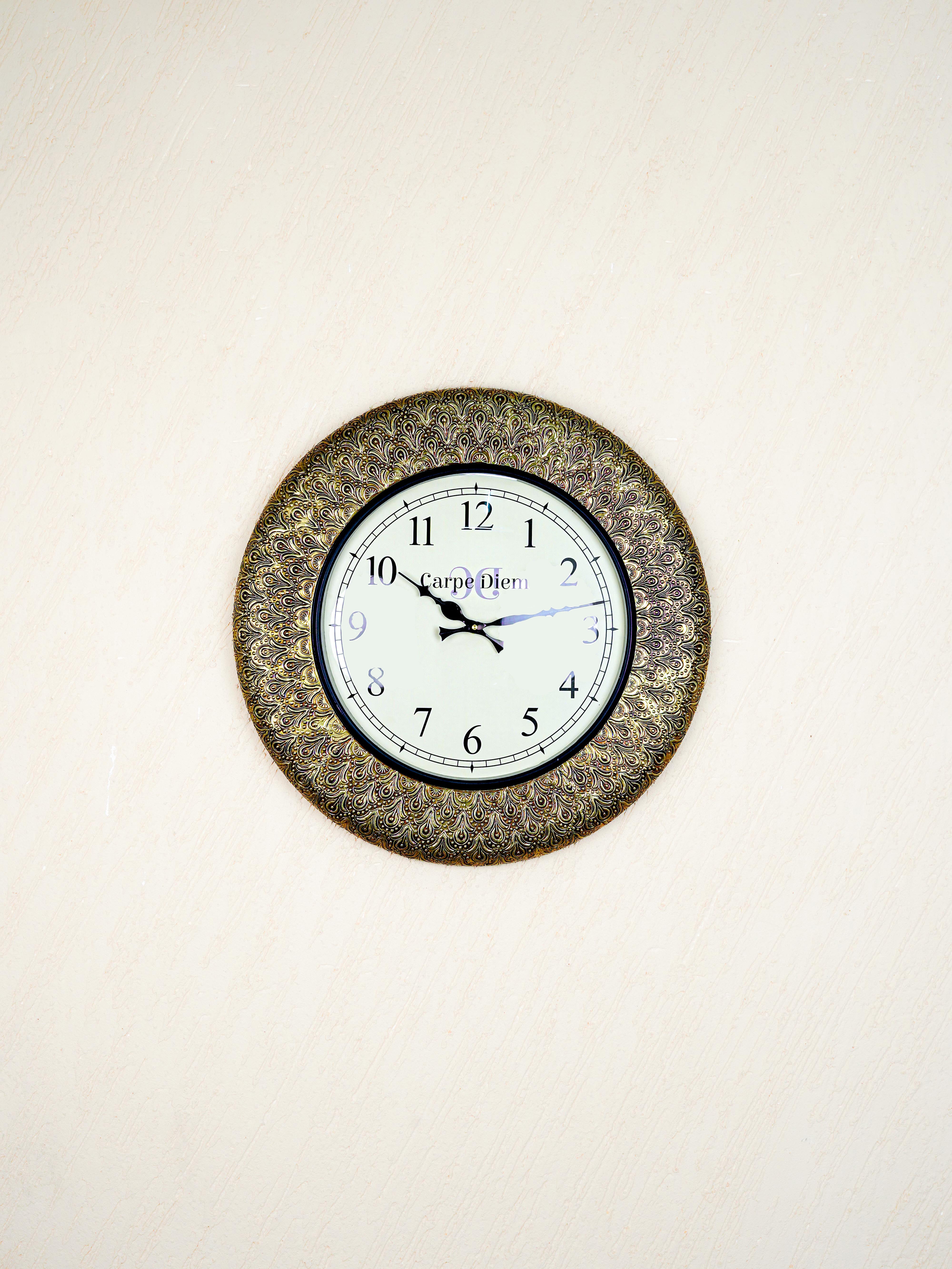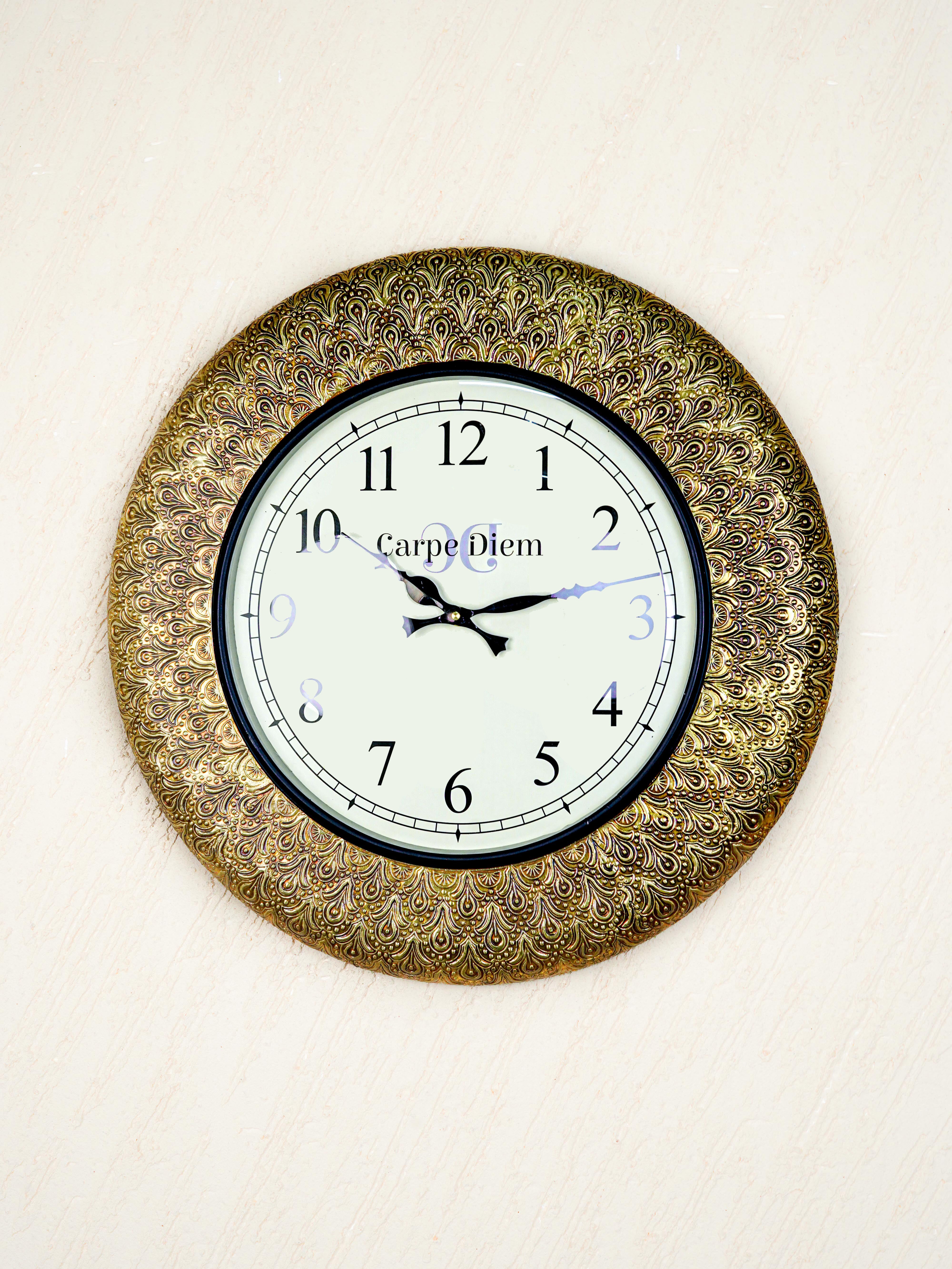 - The Clock's Frame Showcases, Textured & Embossed Detailing that Enhances its Aesthetic Charm.