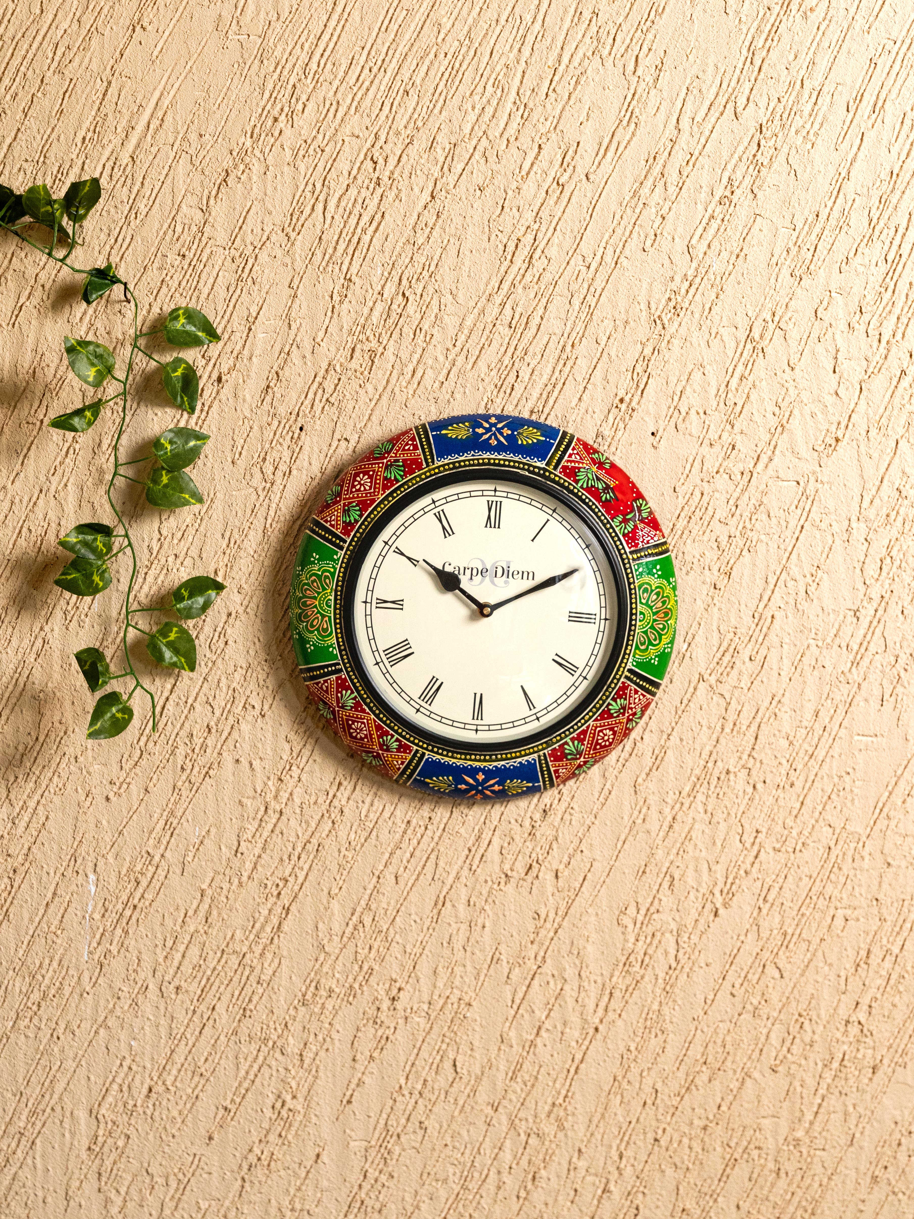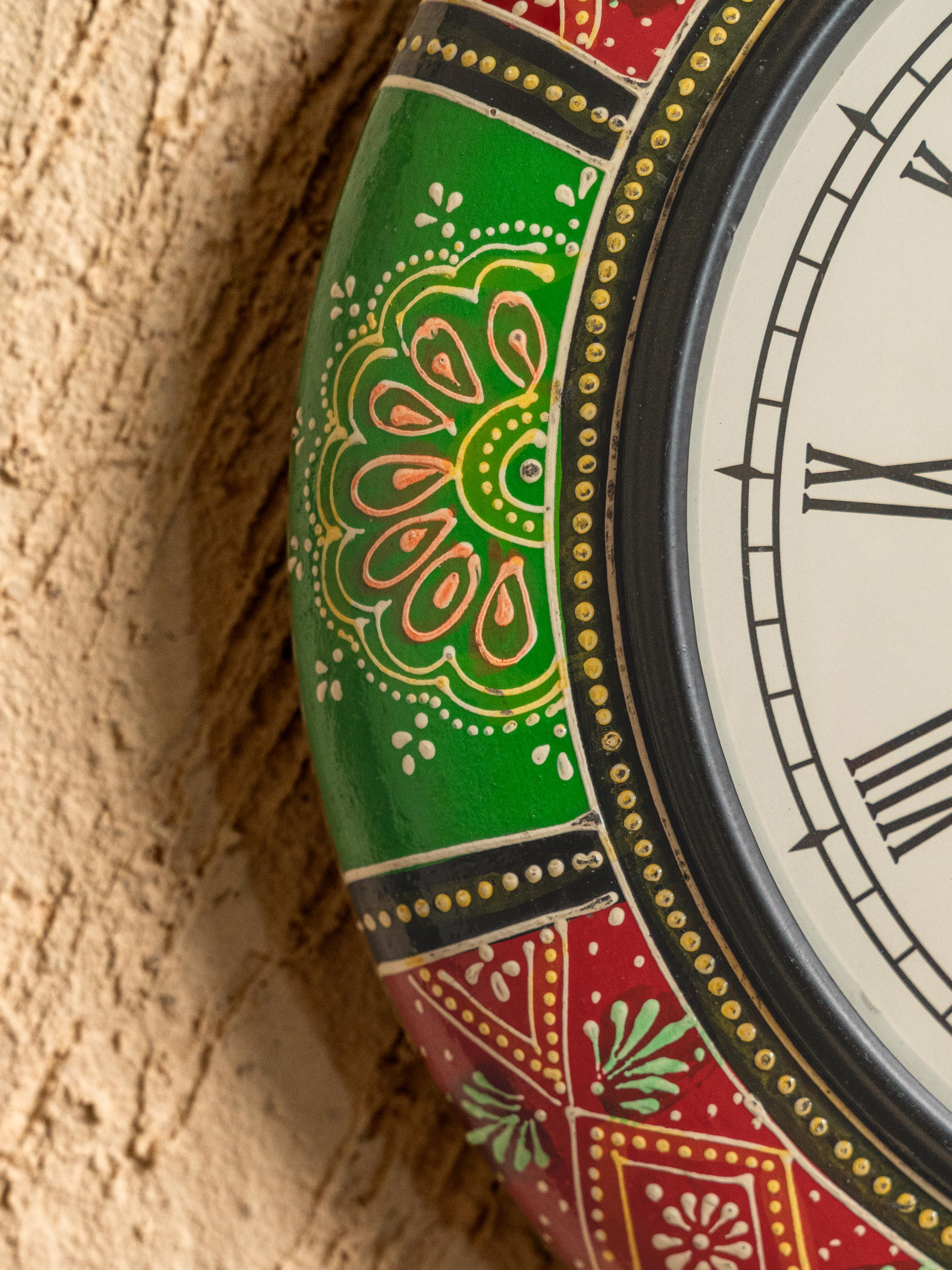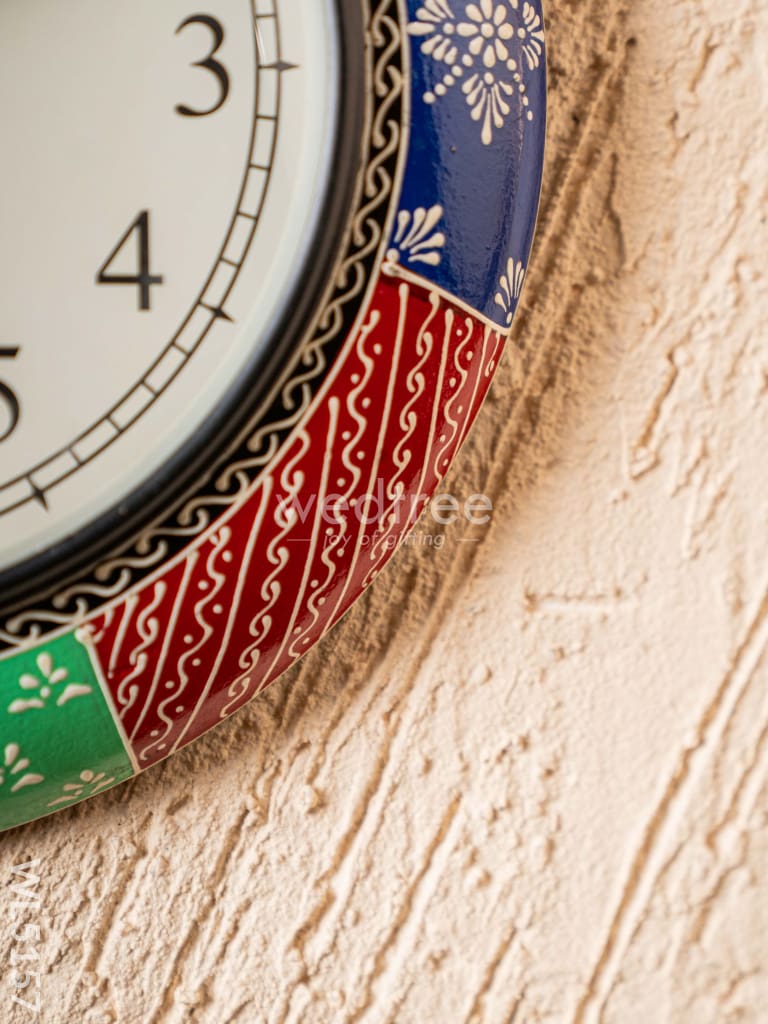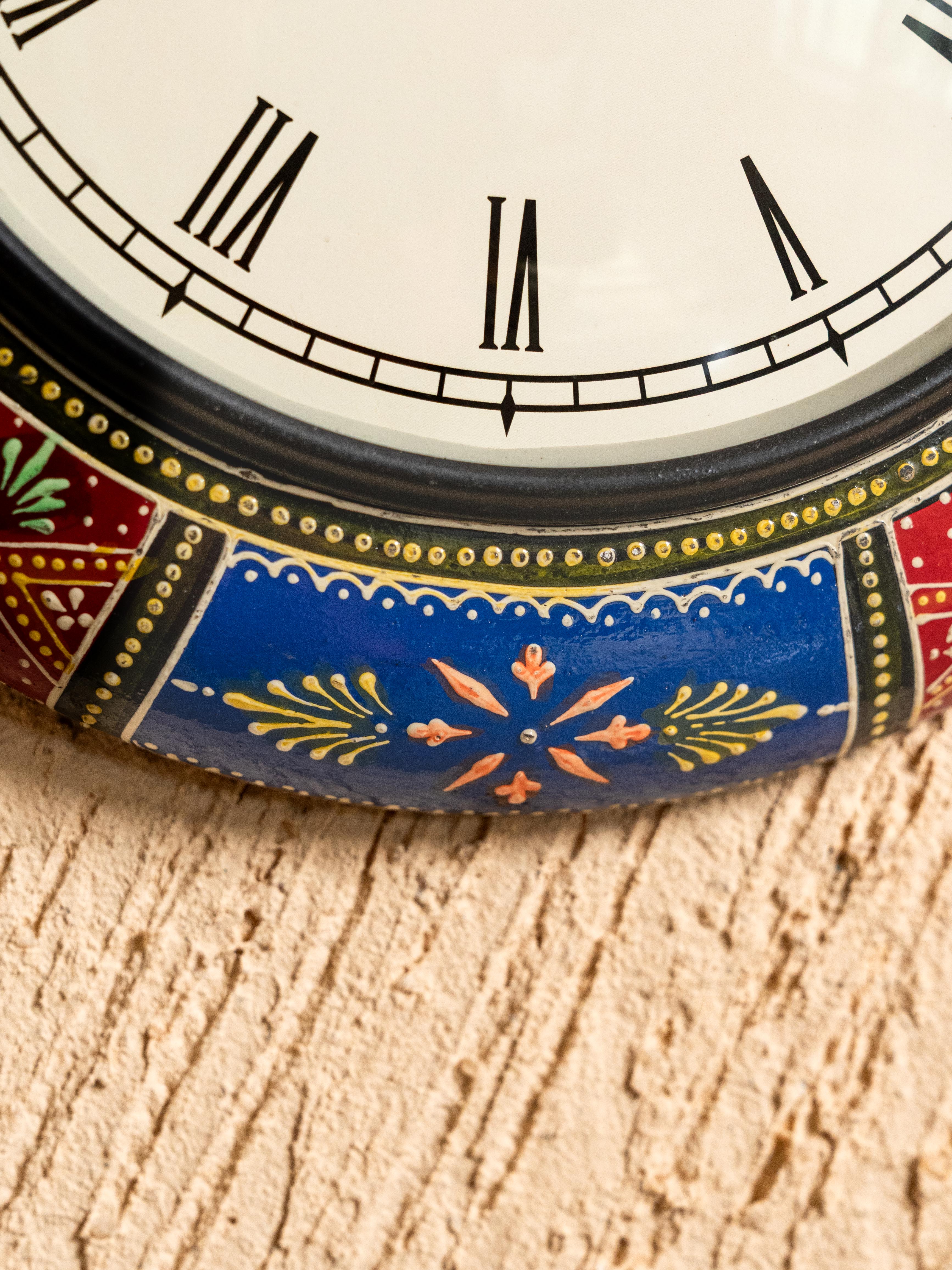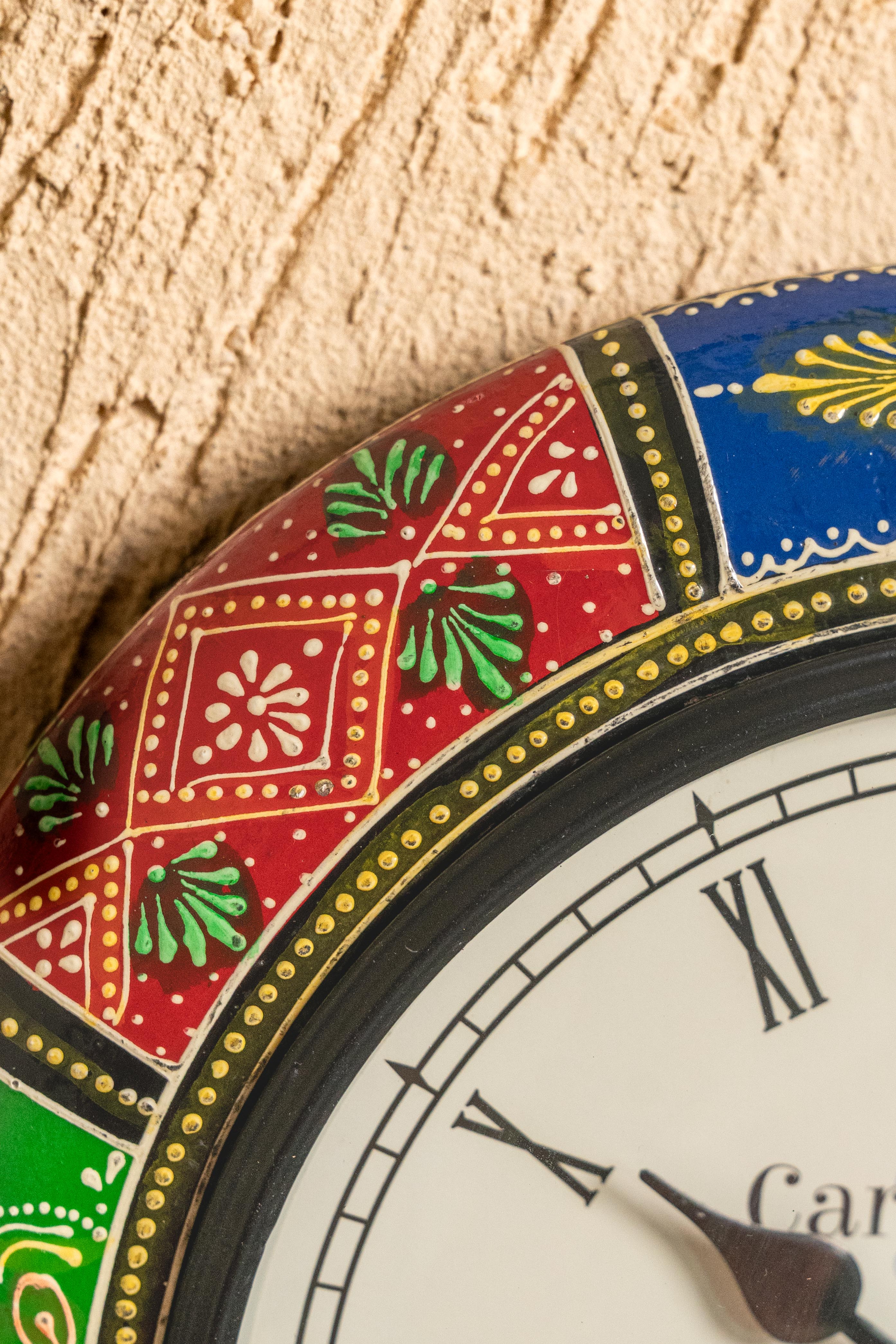 - The Outer Rim Features Intricately Painted with Different Colors & Patterns, Adding Texture, Depth, and a Handcrafted Charm to the Clock's Frame.