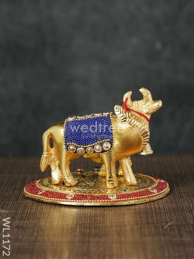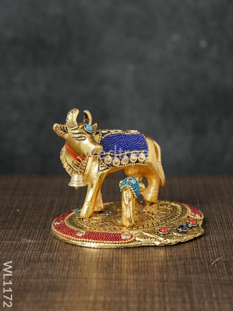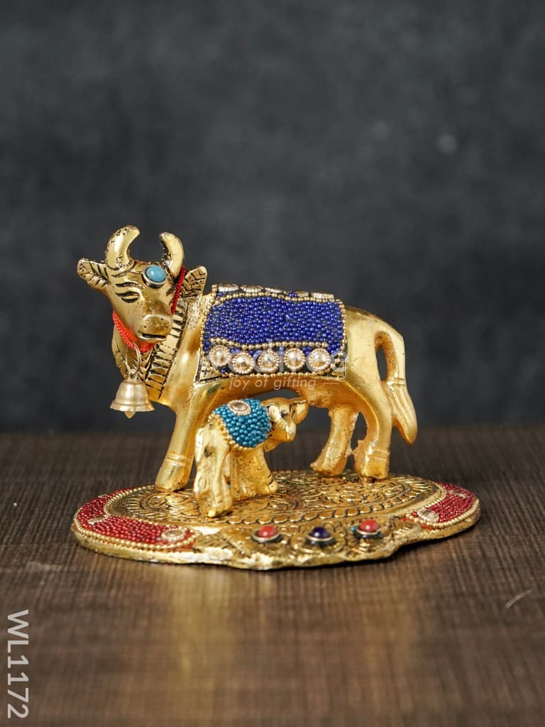 - An idol featuring Kamadhenu with her calf with excellent stone work!