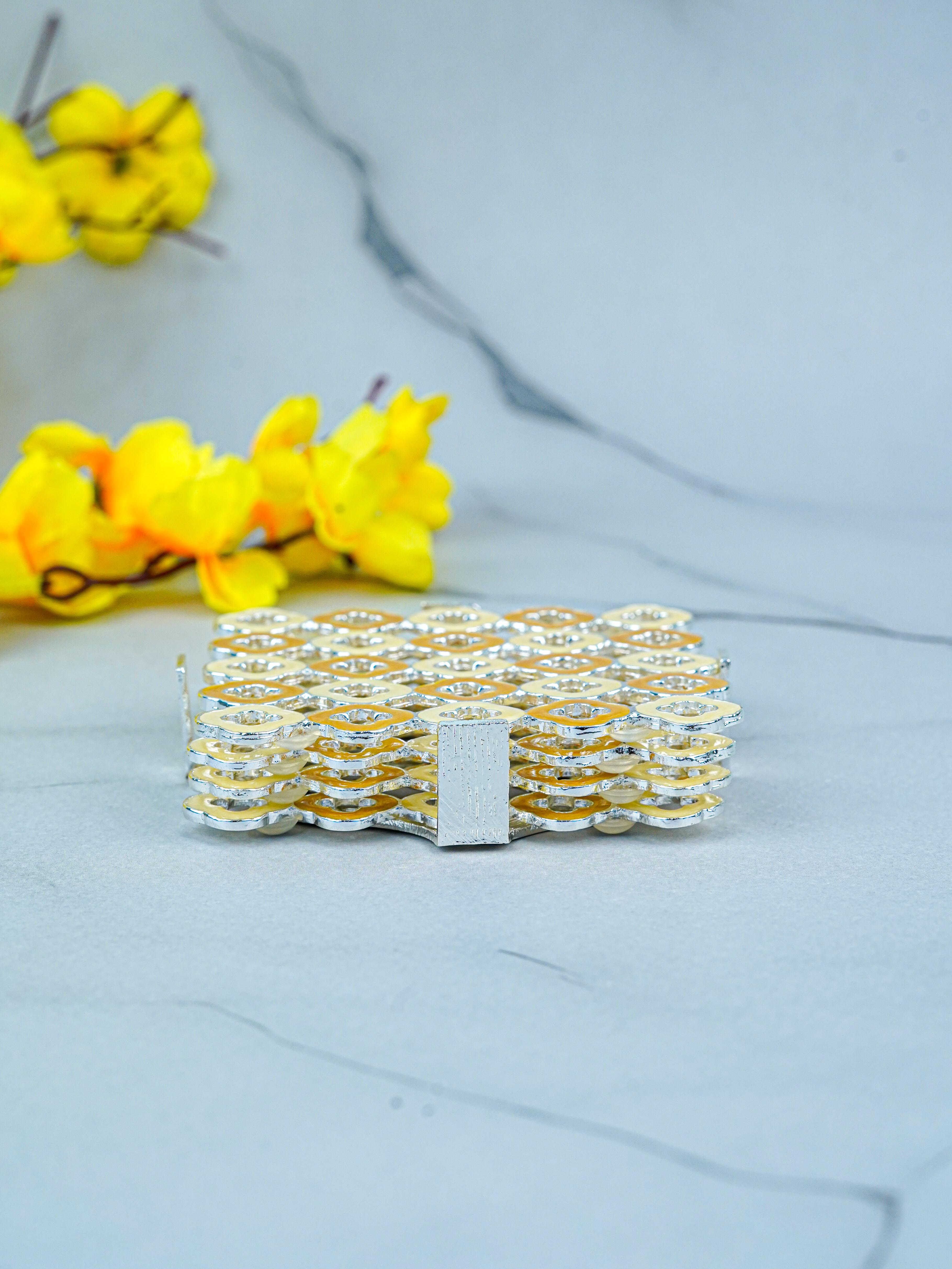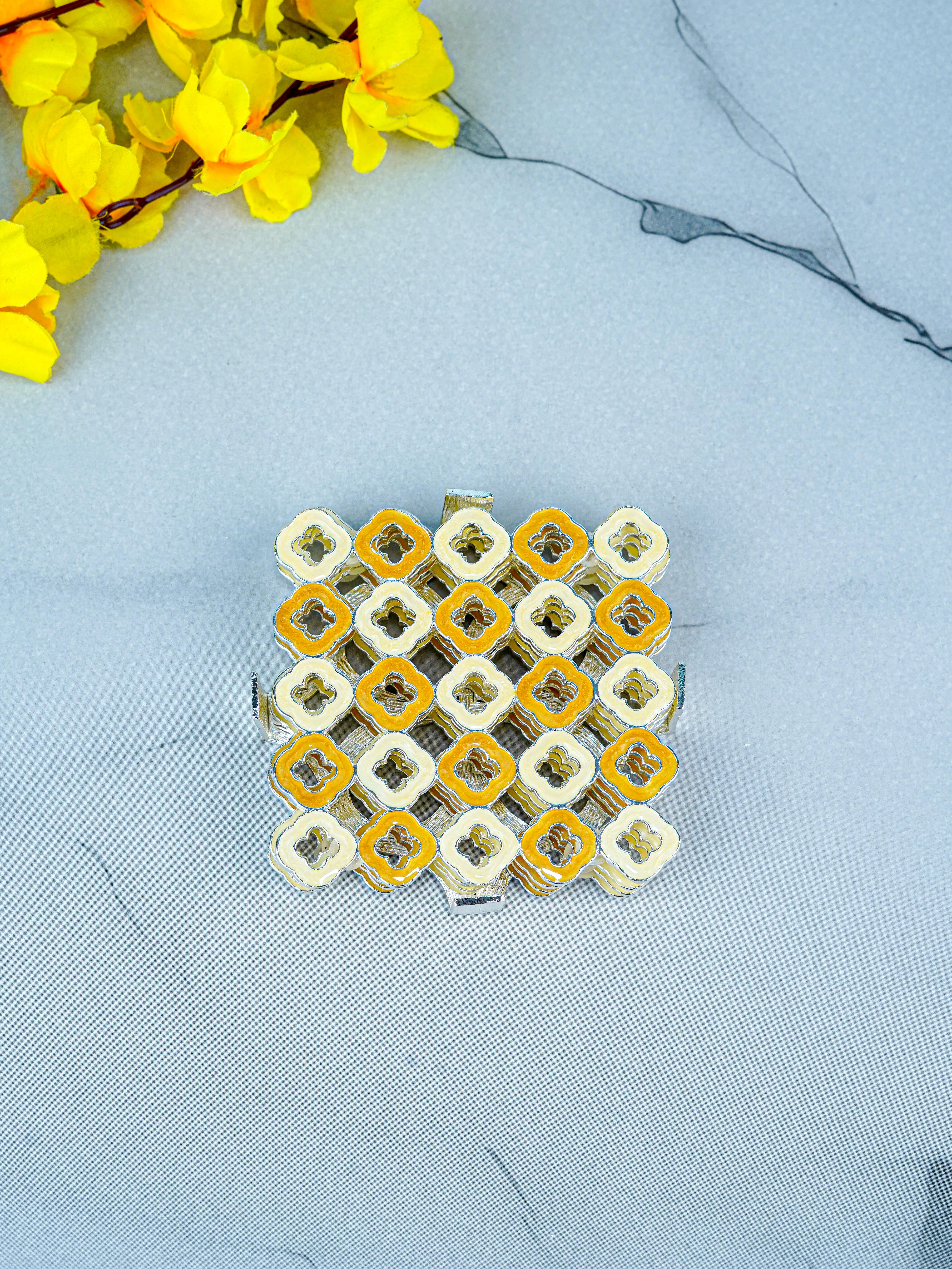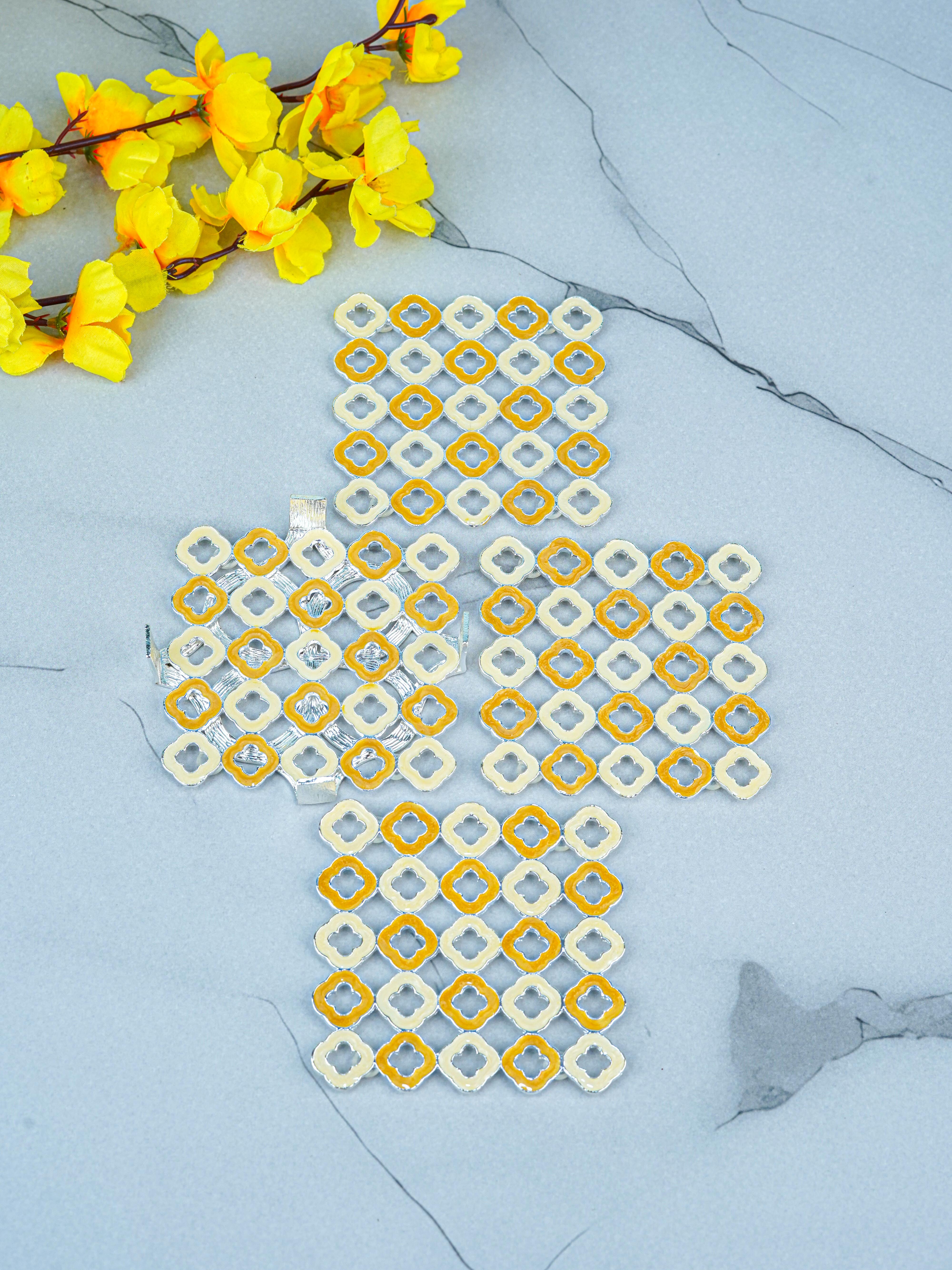 - Beautifully Crafted Round Tea Coaster with a Floral Design. This Coaster is Composed of Alternating Beige & Light Beige Design.