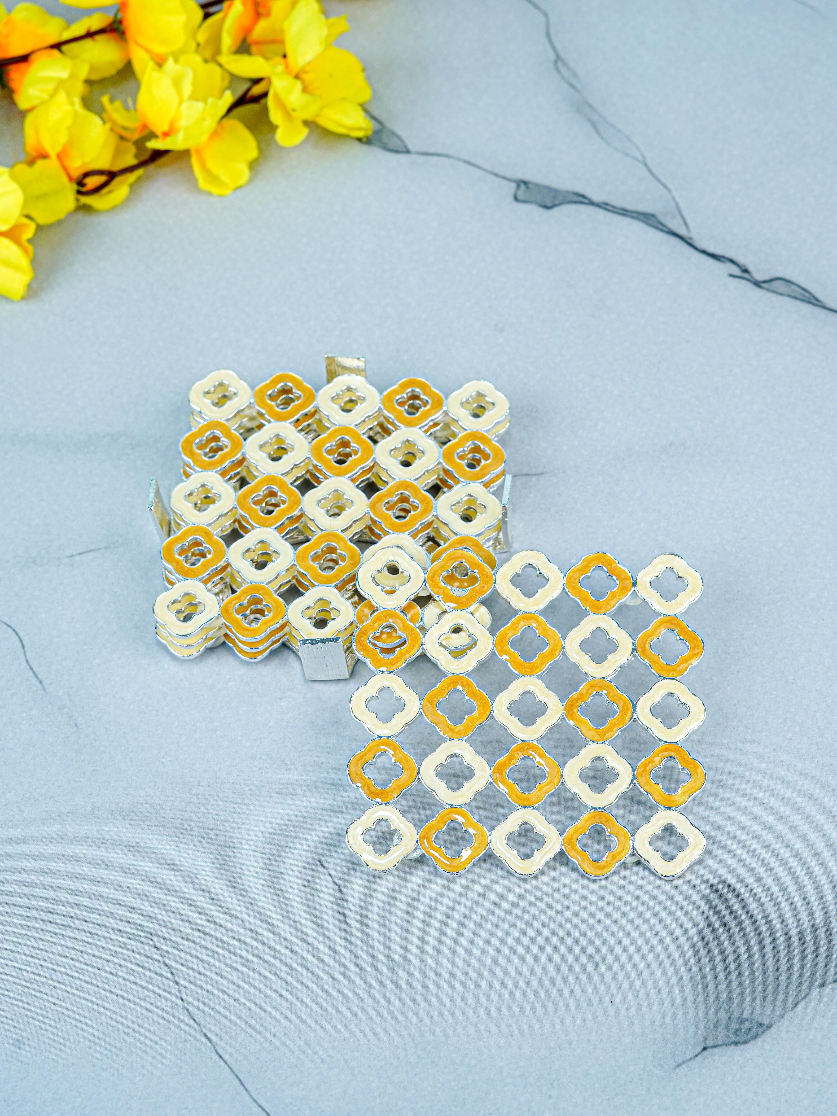 White Metal Decorative Floral Coaster Set - Beige - WL5556-2
