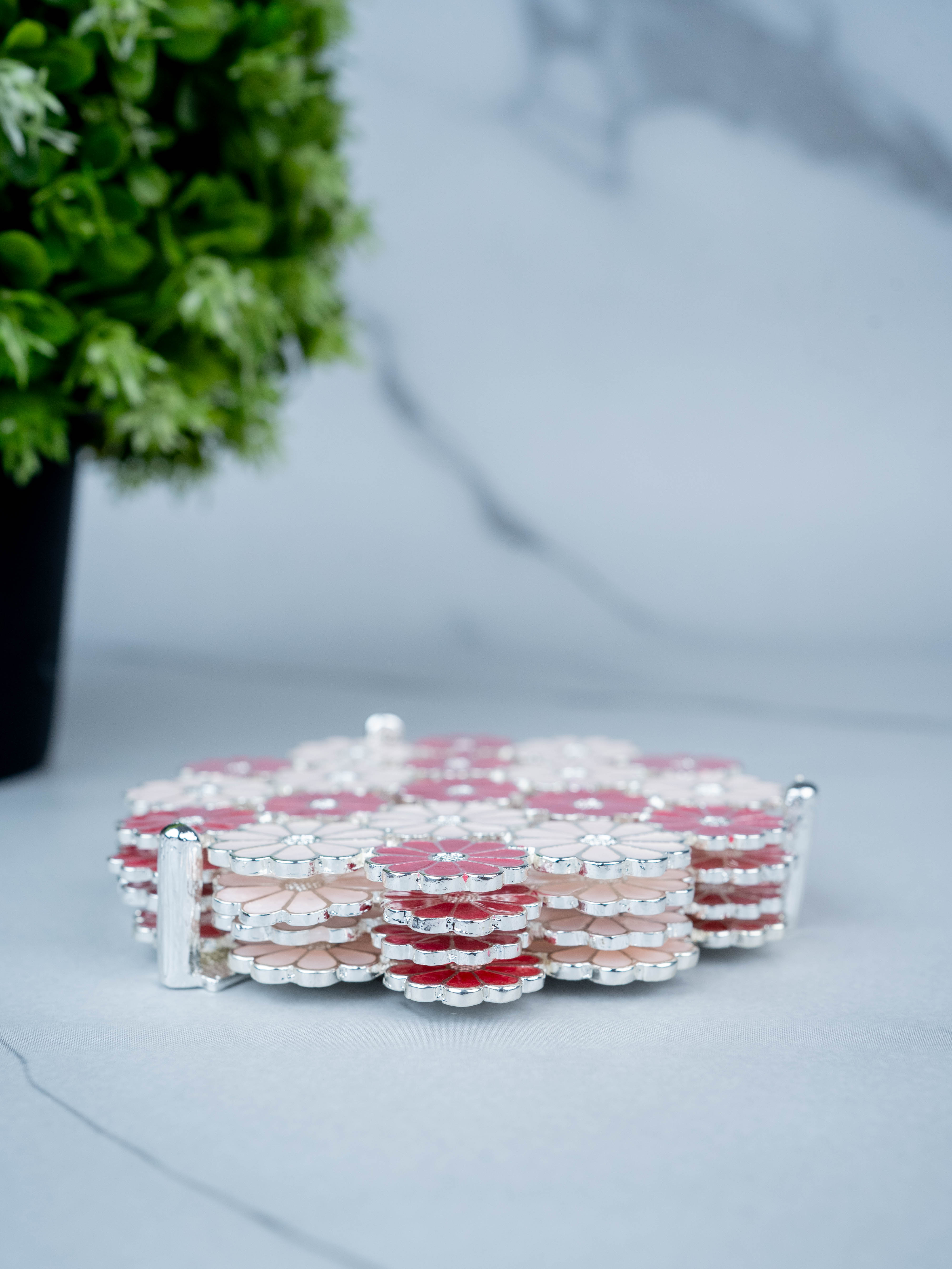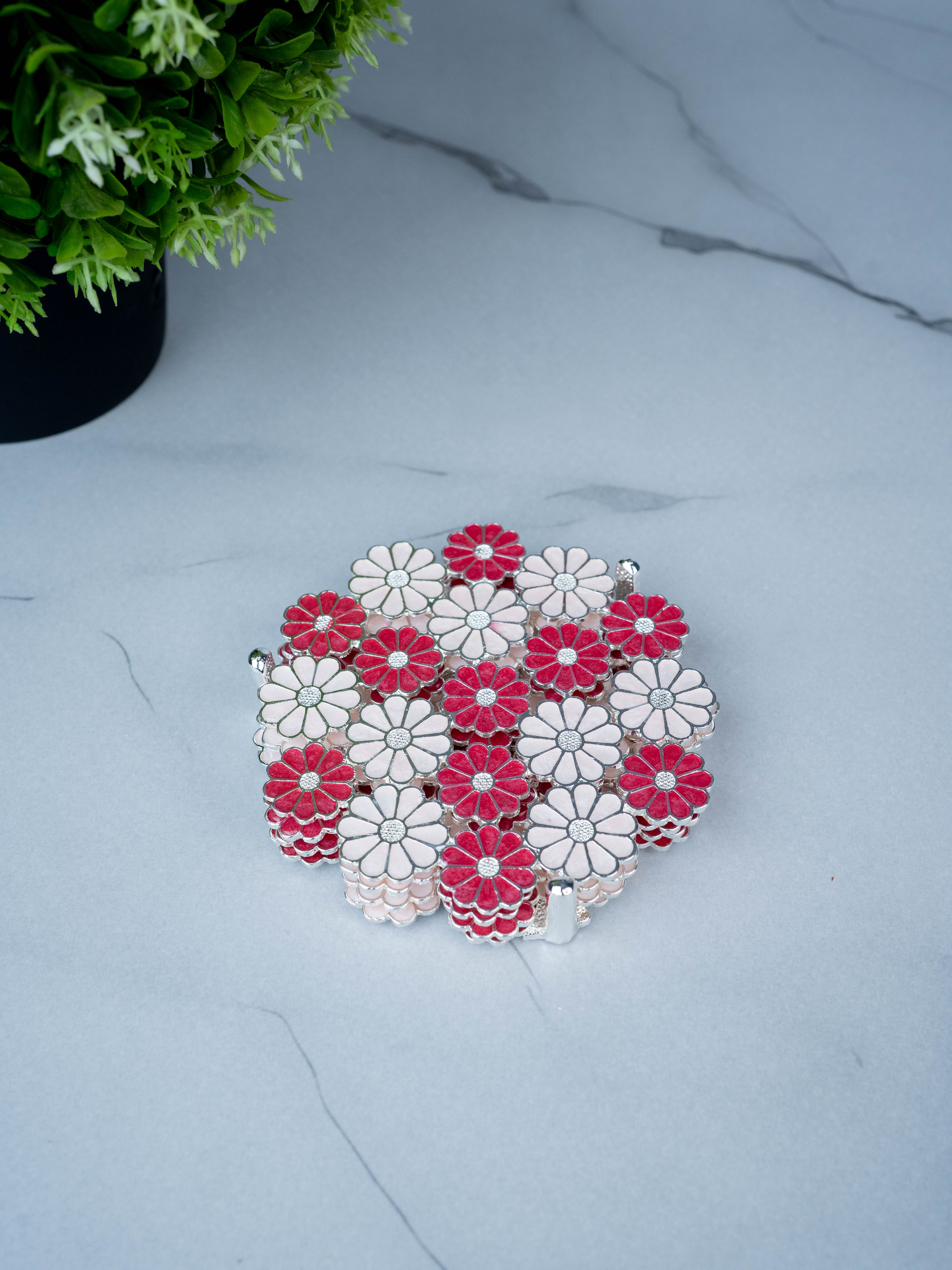 White Metal Decorative Floral Coaster Set - Pink - WL5437-1