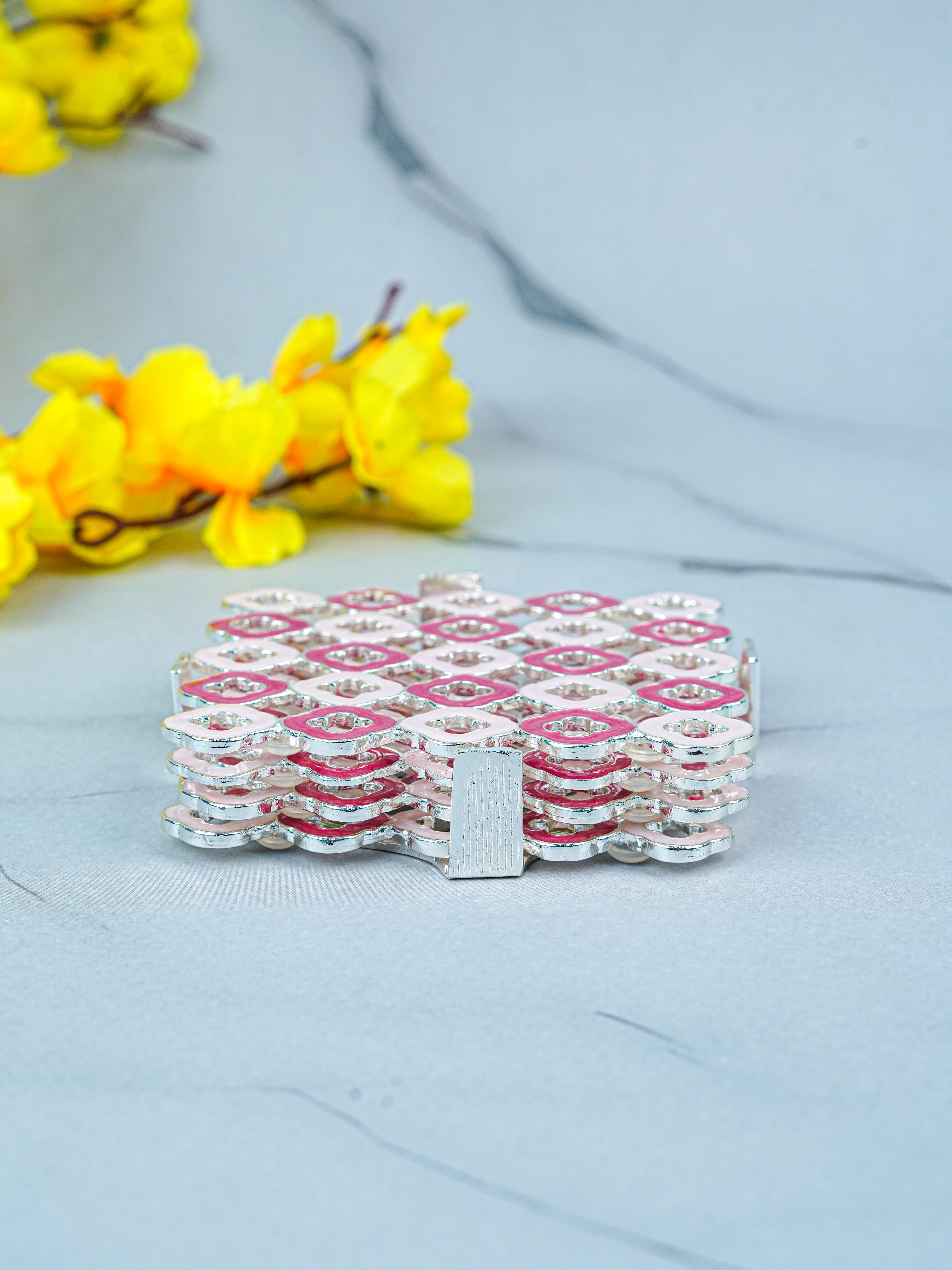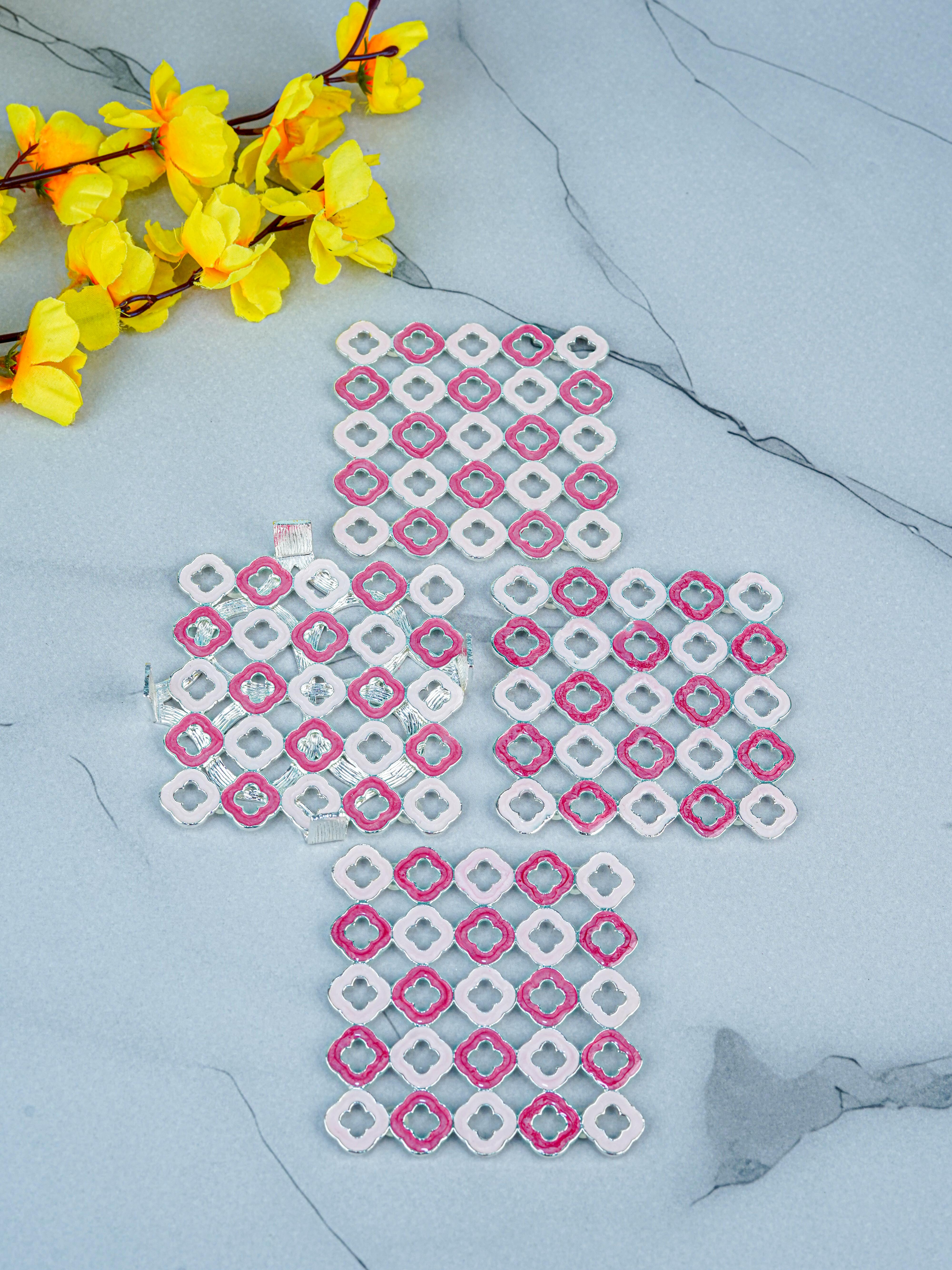 White Metal Decorative Floral Coaster Set - Pink - WL5556-1