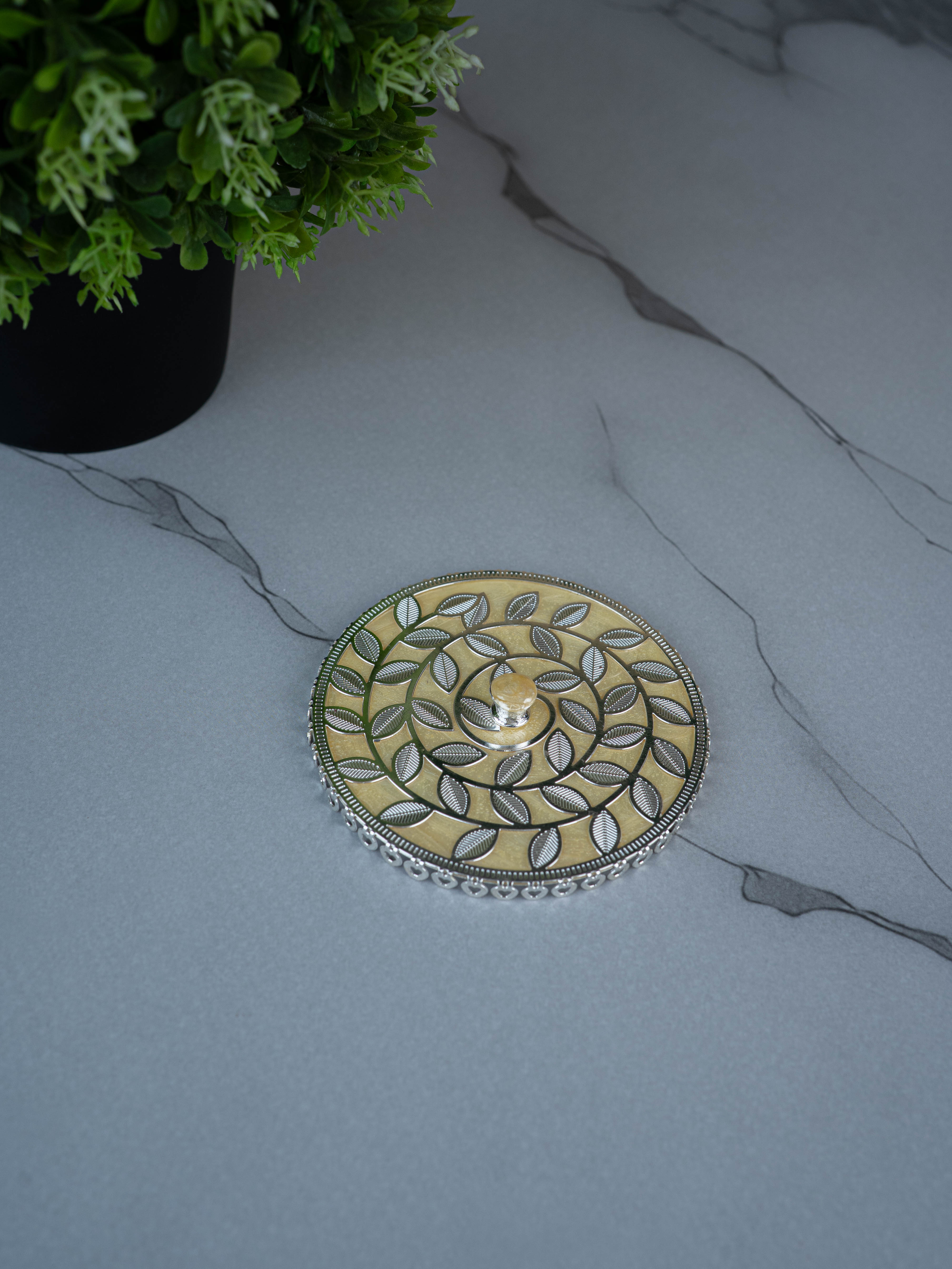 - At the Center, there is a Small Round Knob used for Lifting the Lid, which Complements the Overall Aesthetic.