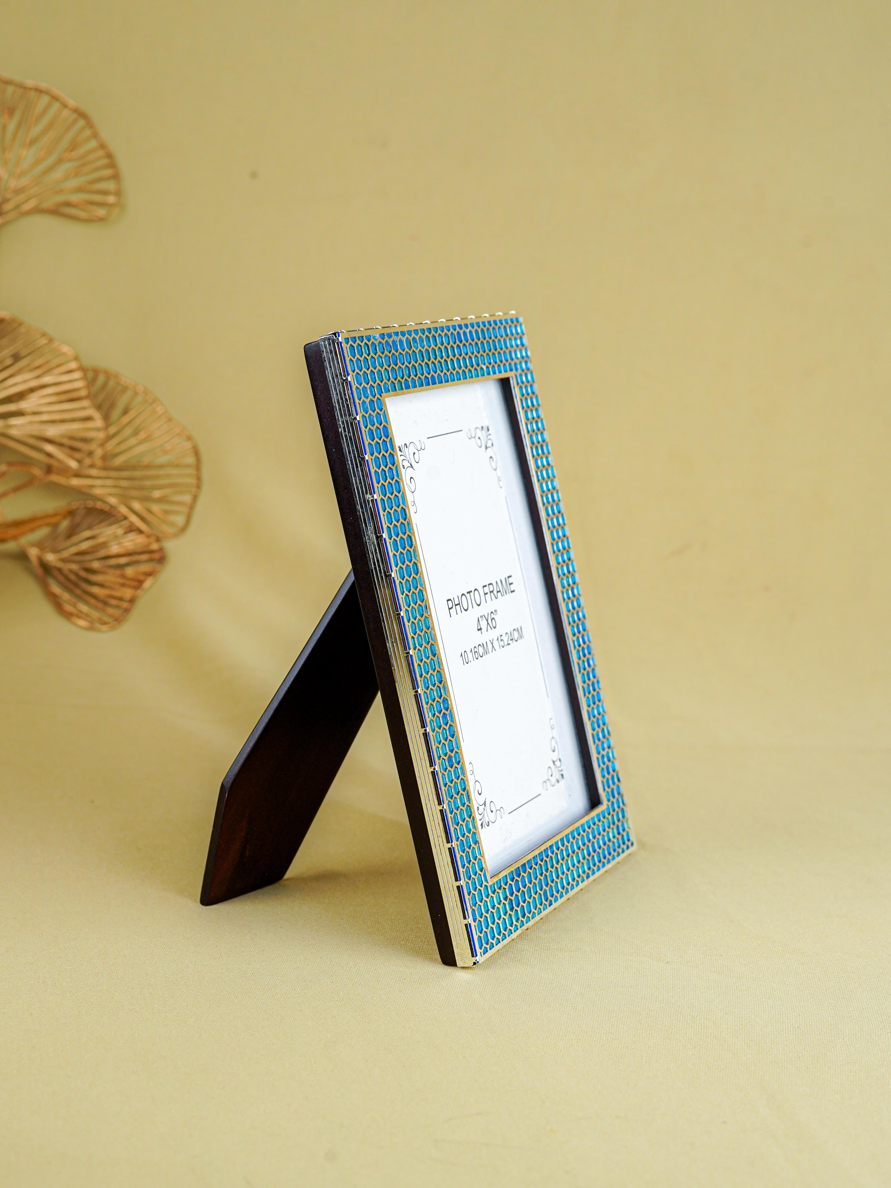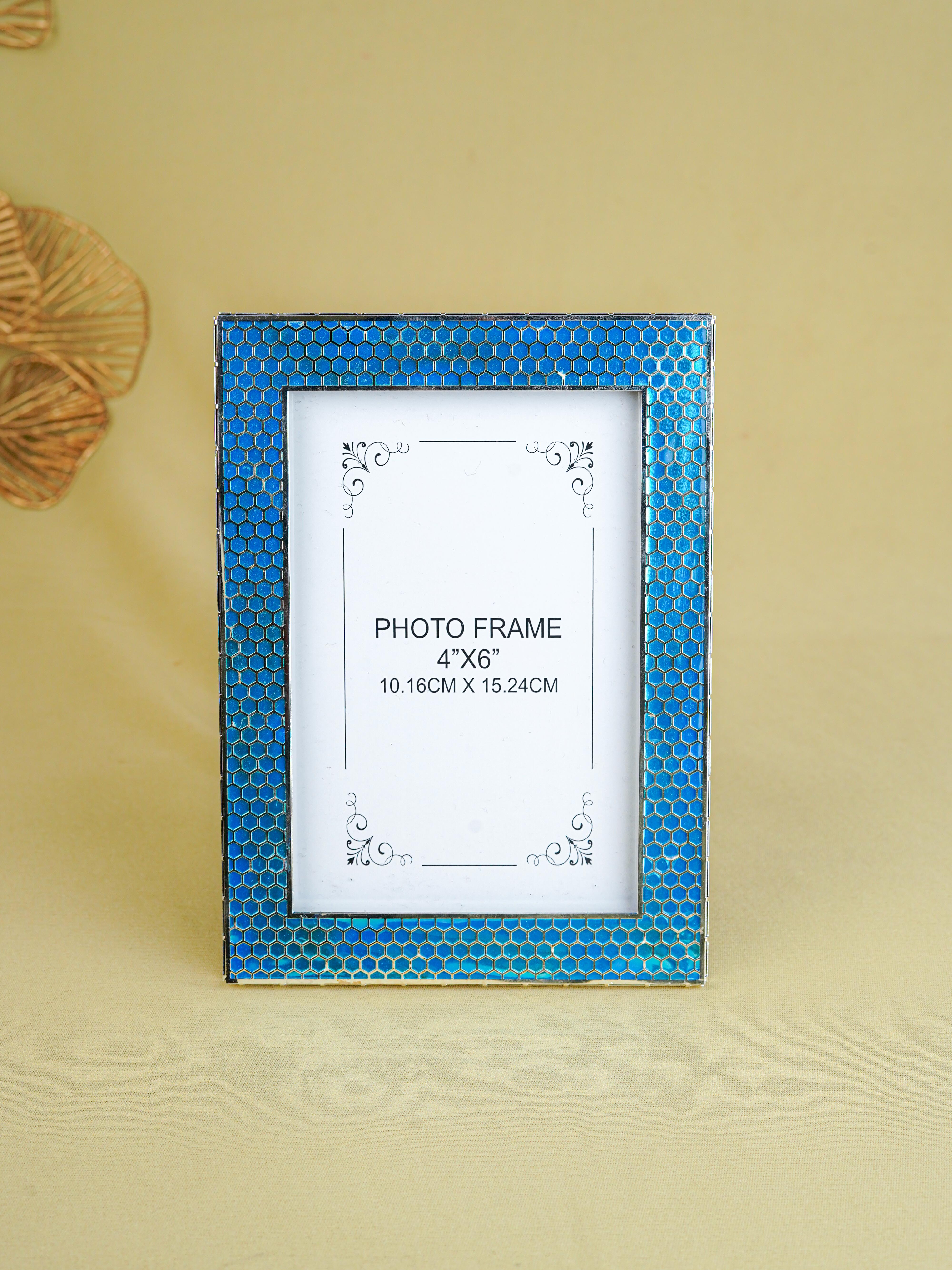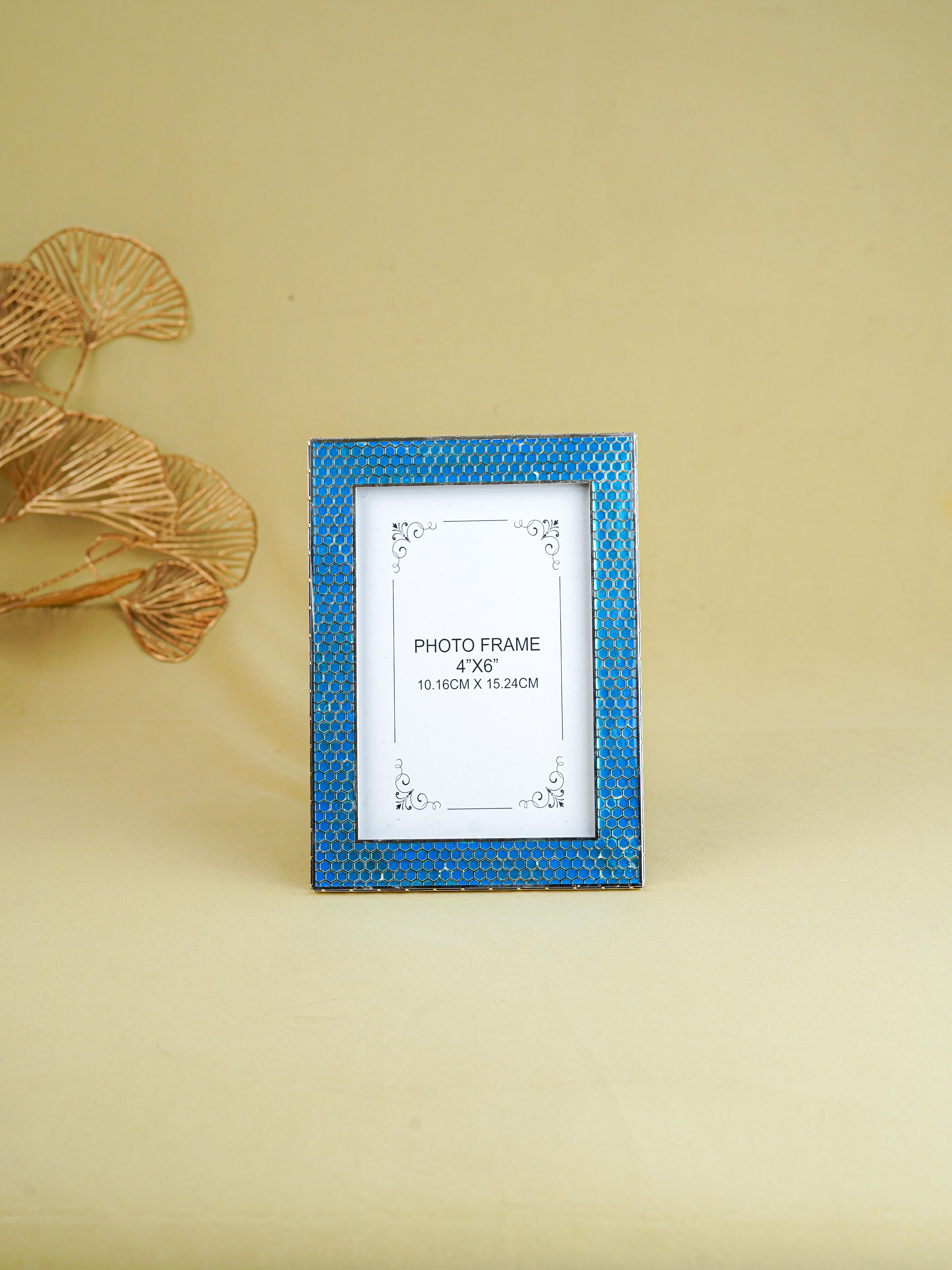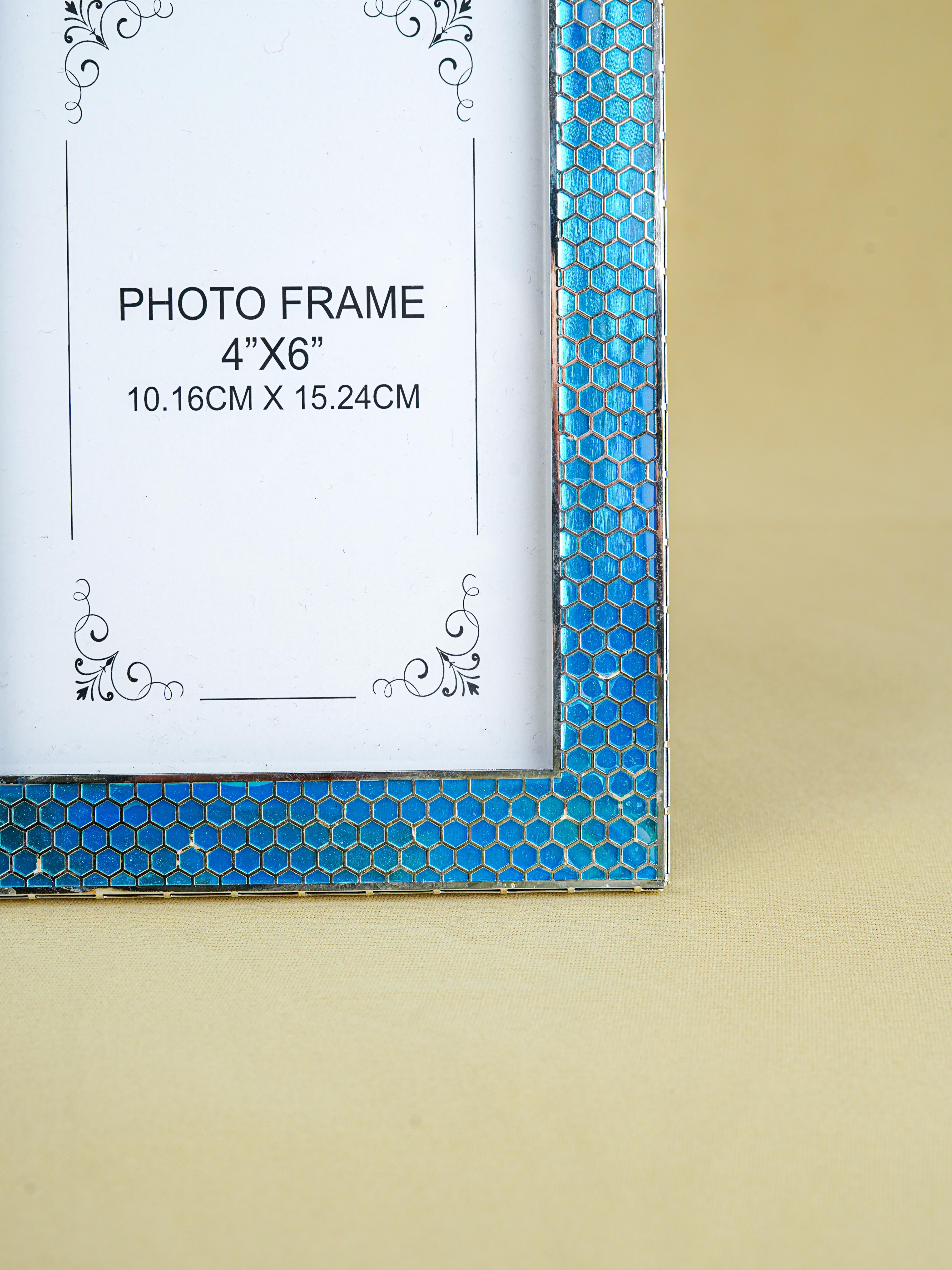 White Metal Designer Photo Frame - Blue - WL5587-1