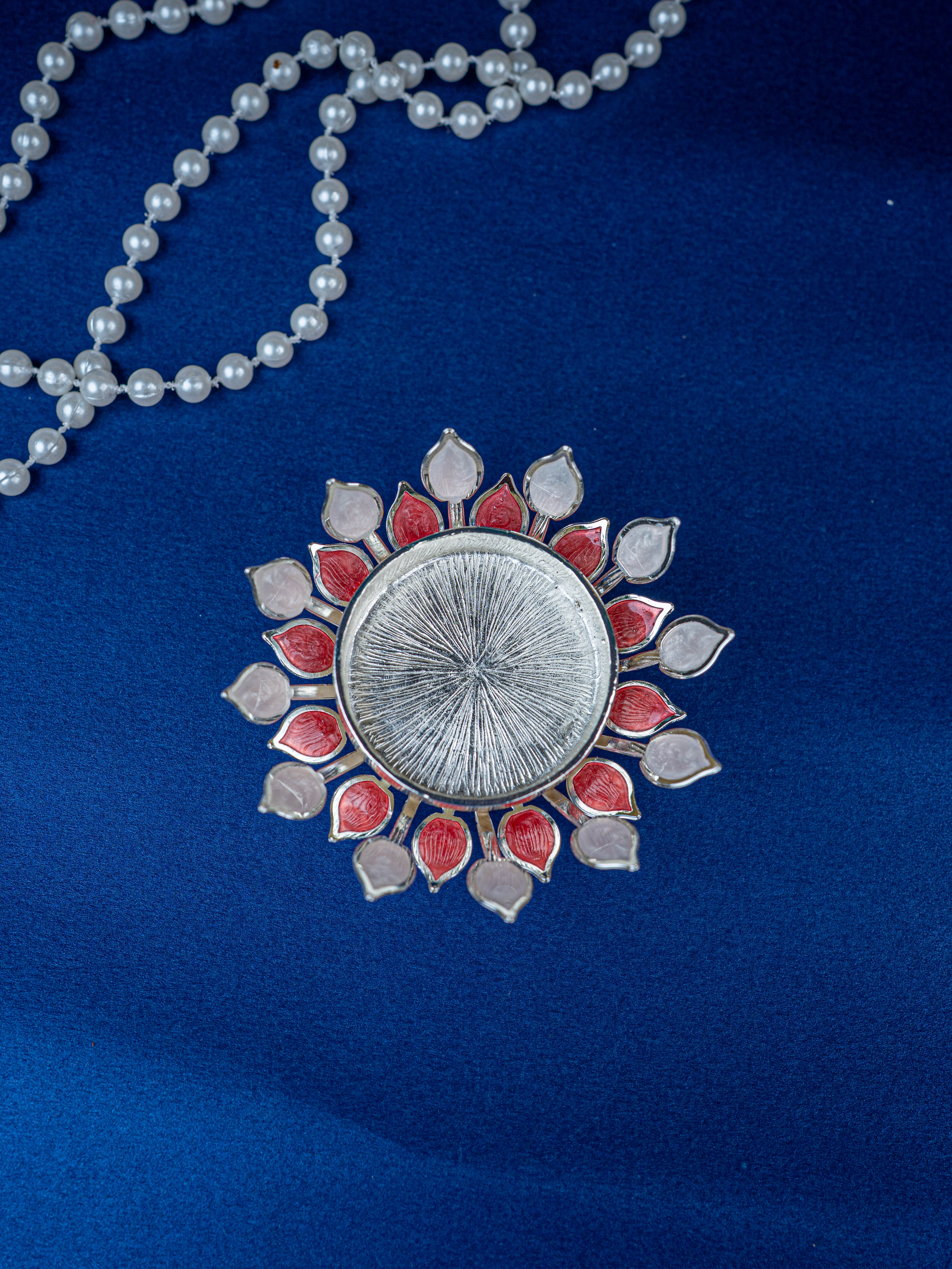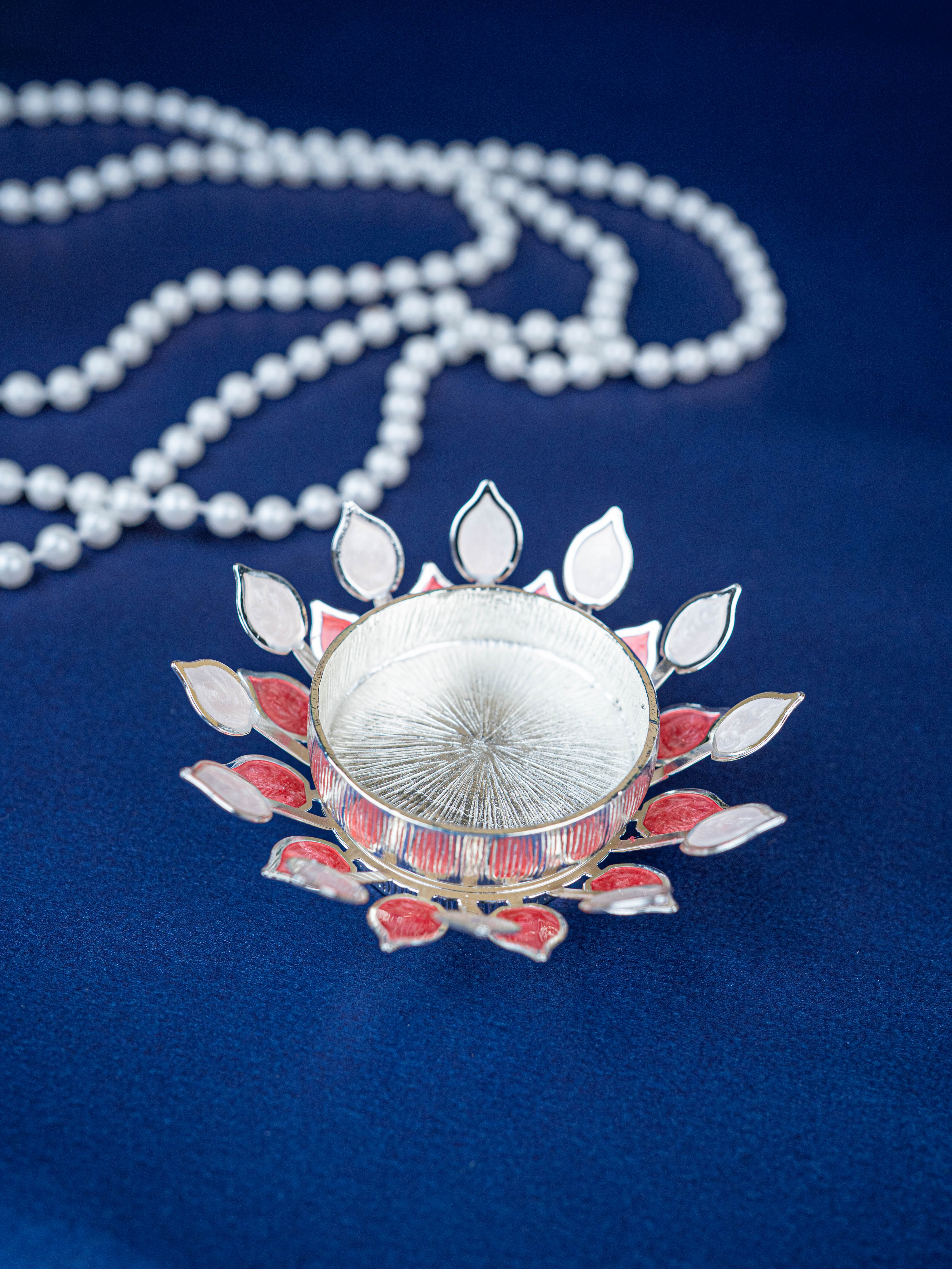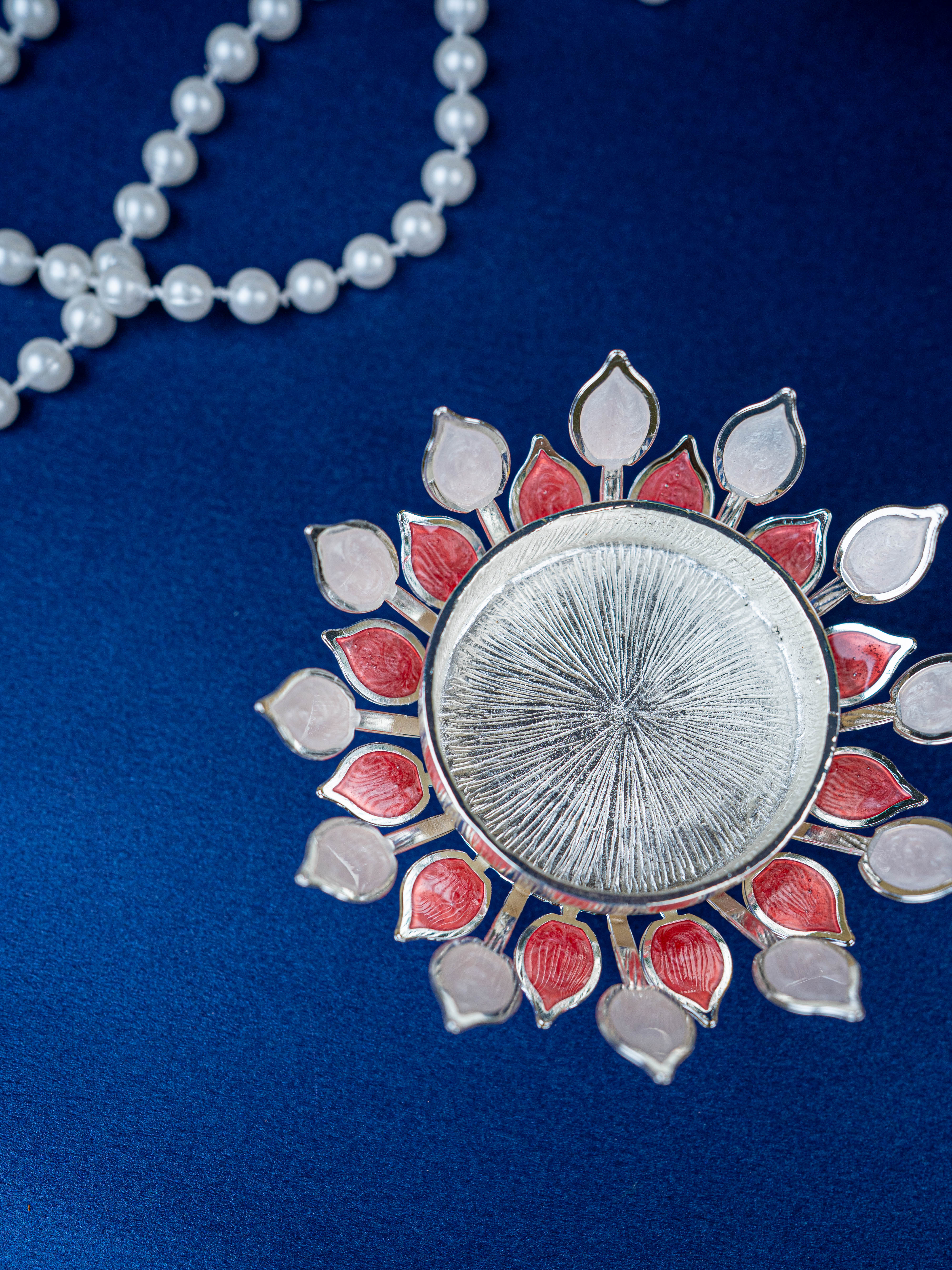 - Each Petal has a Metallic Silver Outline with Pink Enamel Filling.