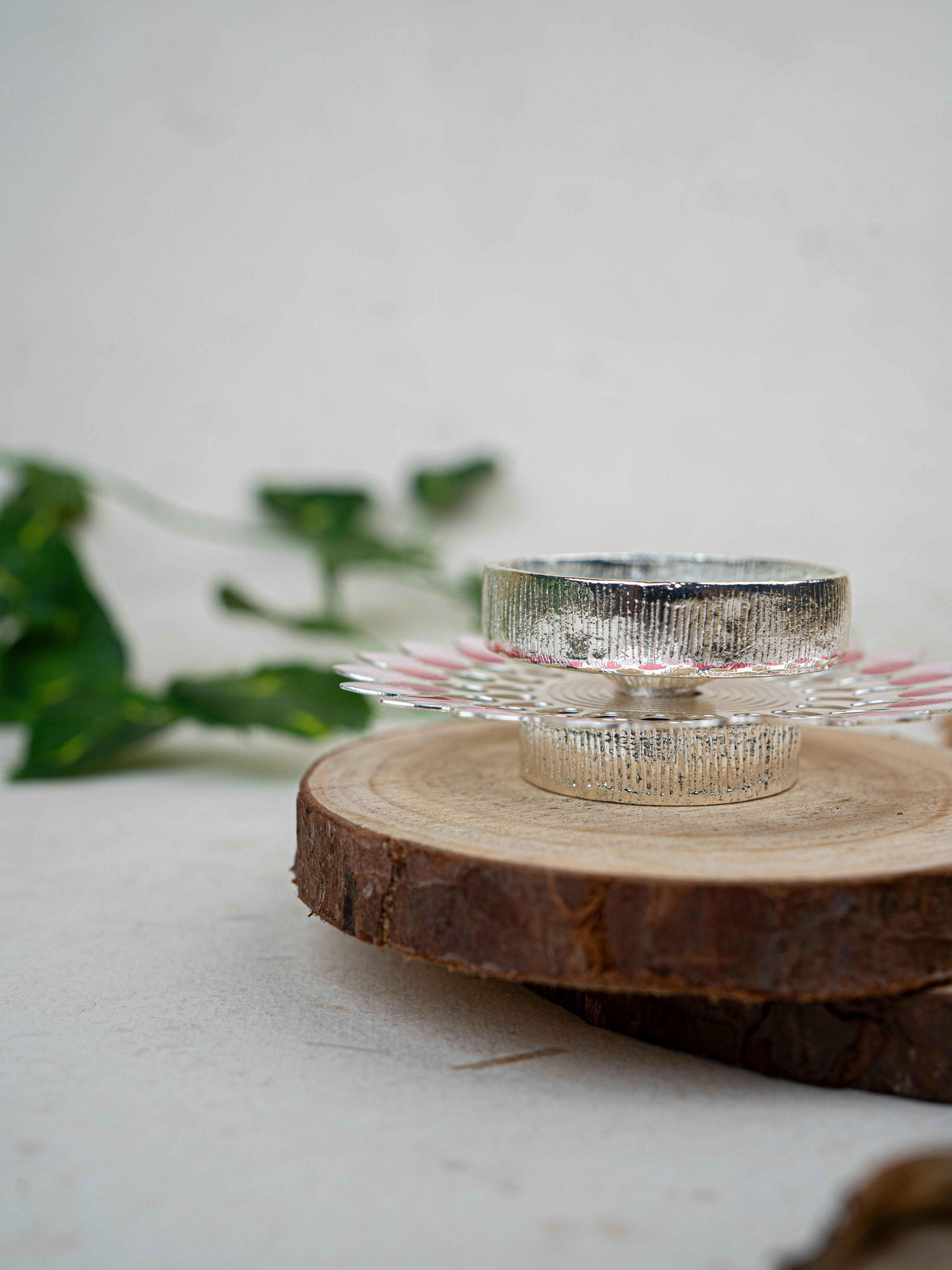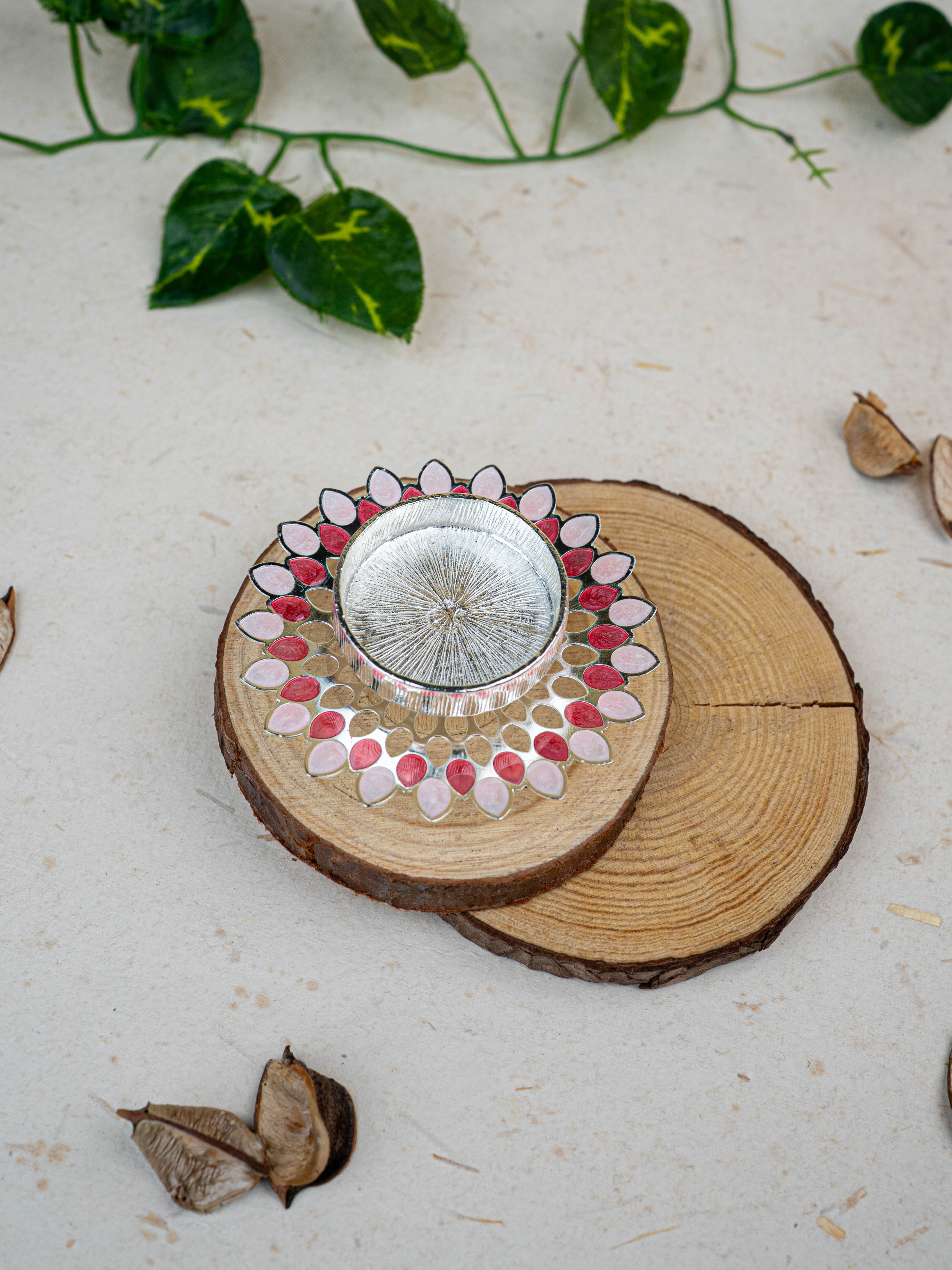 - Designer T Light Holder is Circular at the Center, where the Candle is Placed, and is surrounded by Petal-like Extensions Radiating Outward.