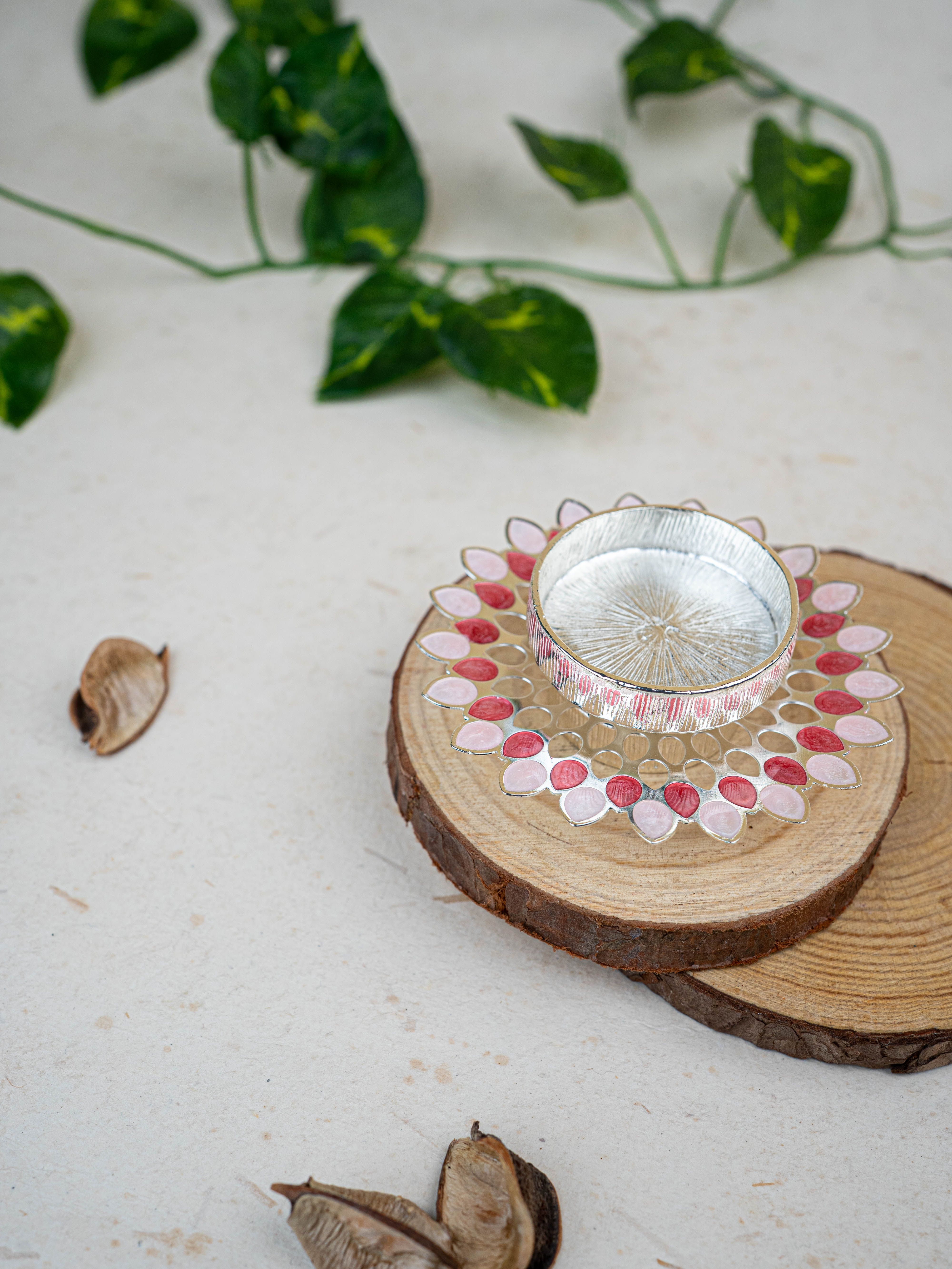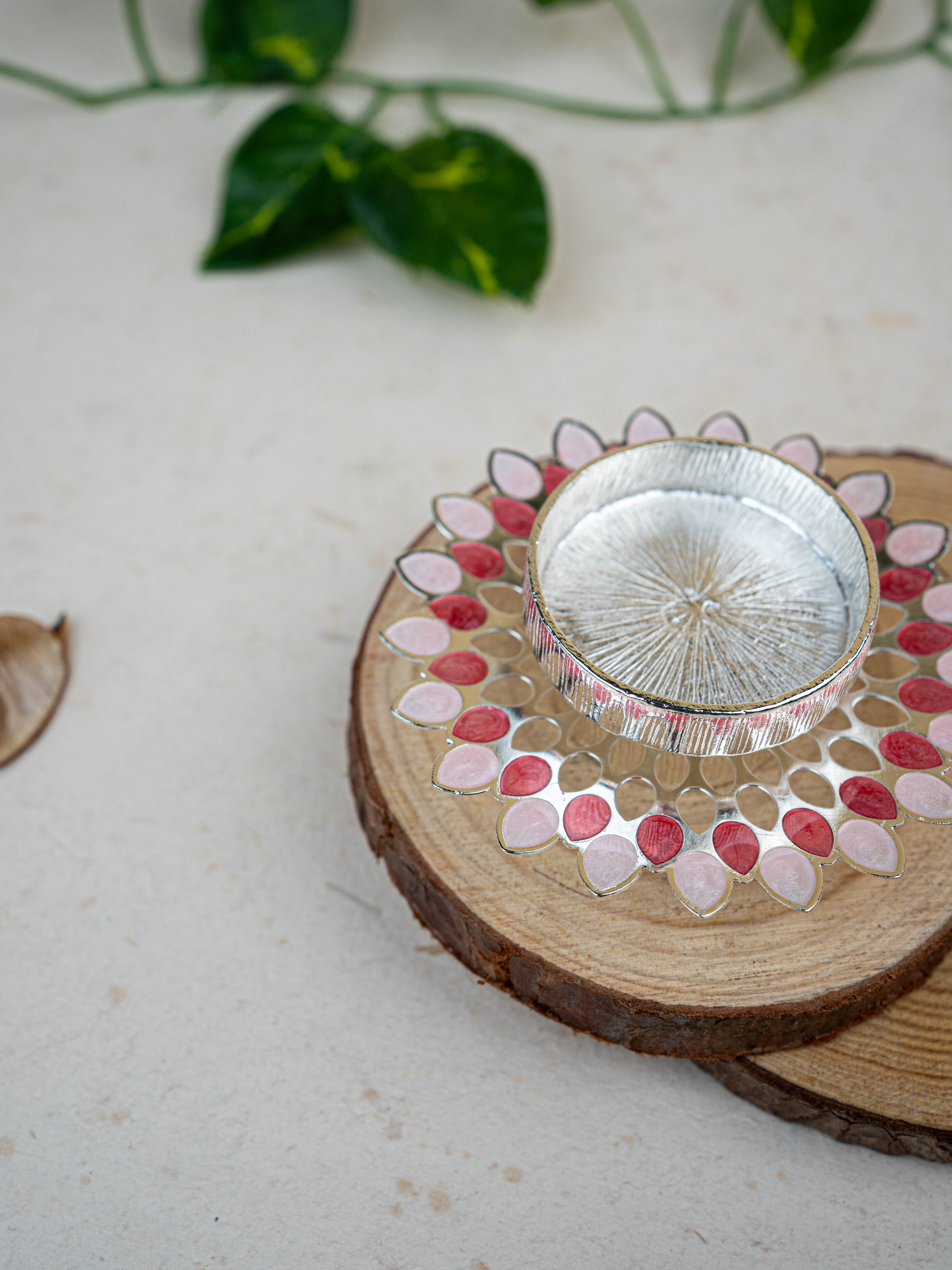 - Metallic Outline with Pink Enamel Filling, giving the Piece a Warm and Elegant Glow even without a Candle.