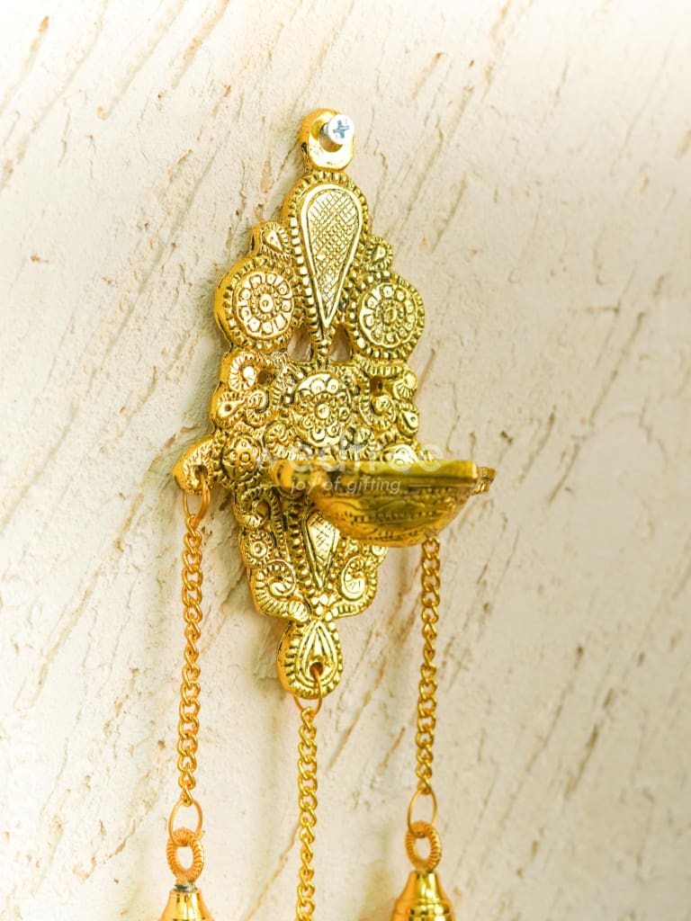 - Wall Hanging Diya with Bell is a Beautiful and Spiritual Home Decor Item.