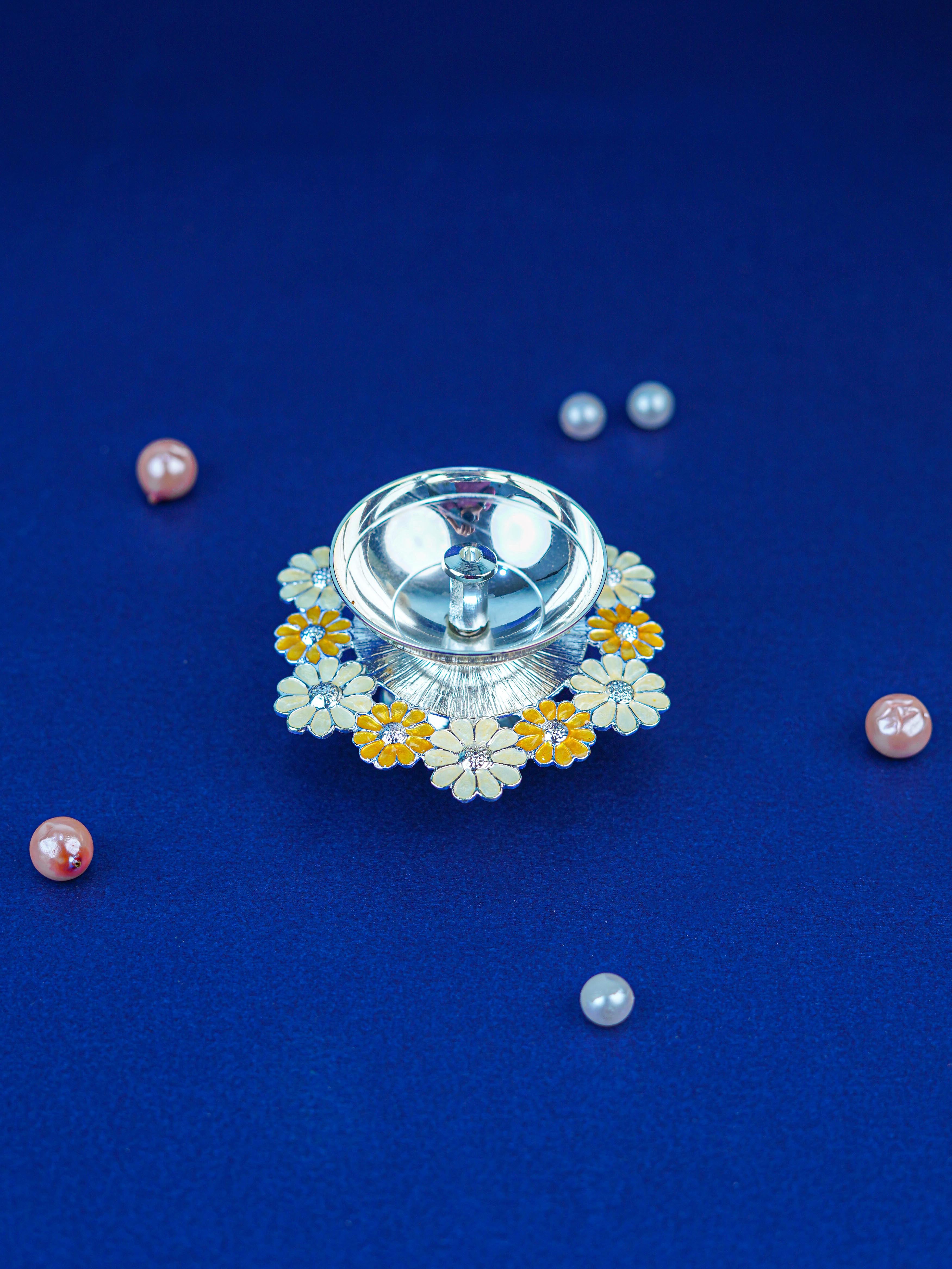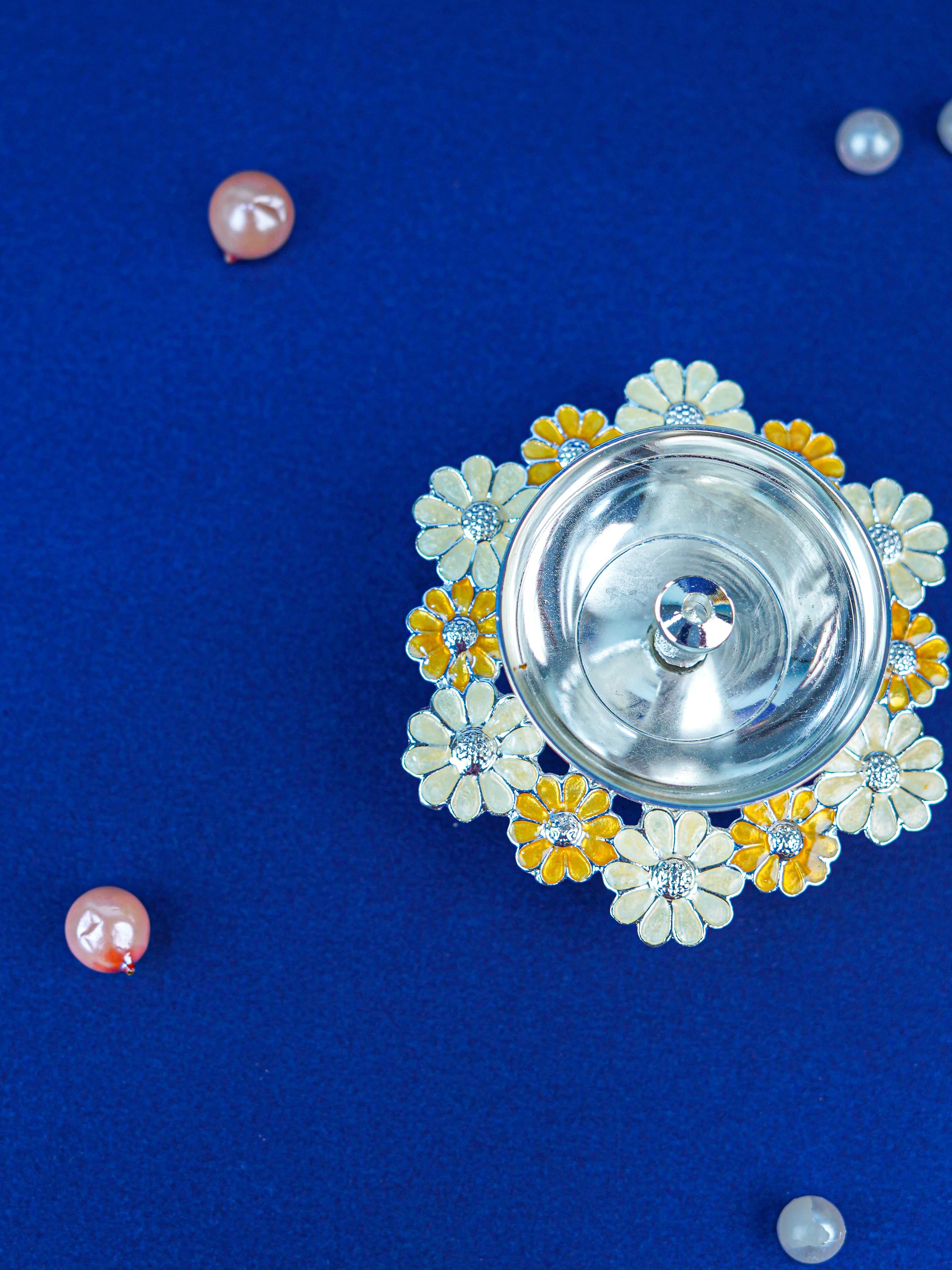 - This Diya Features a Metallic Silver Oil Holder in the Center, Ideal for Placing a Cotton Wick.