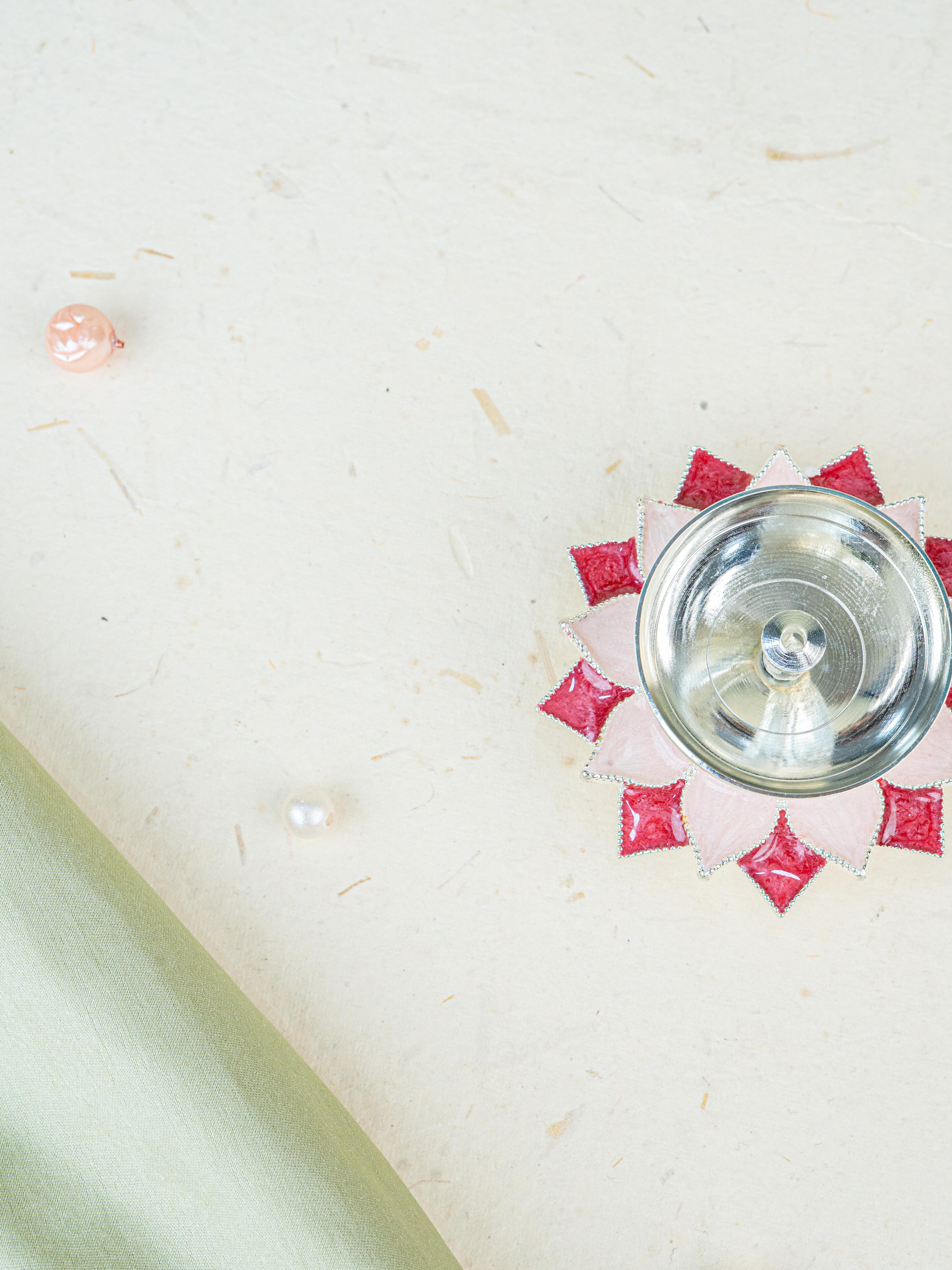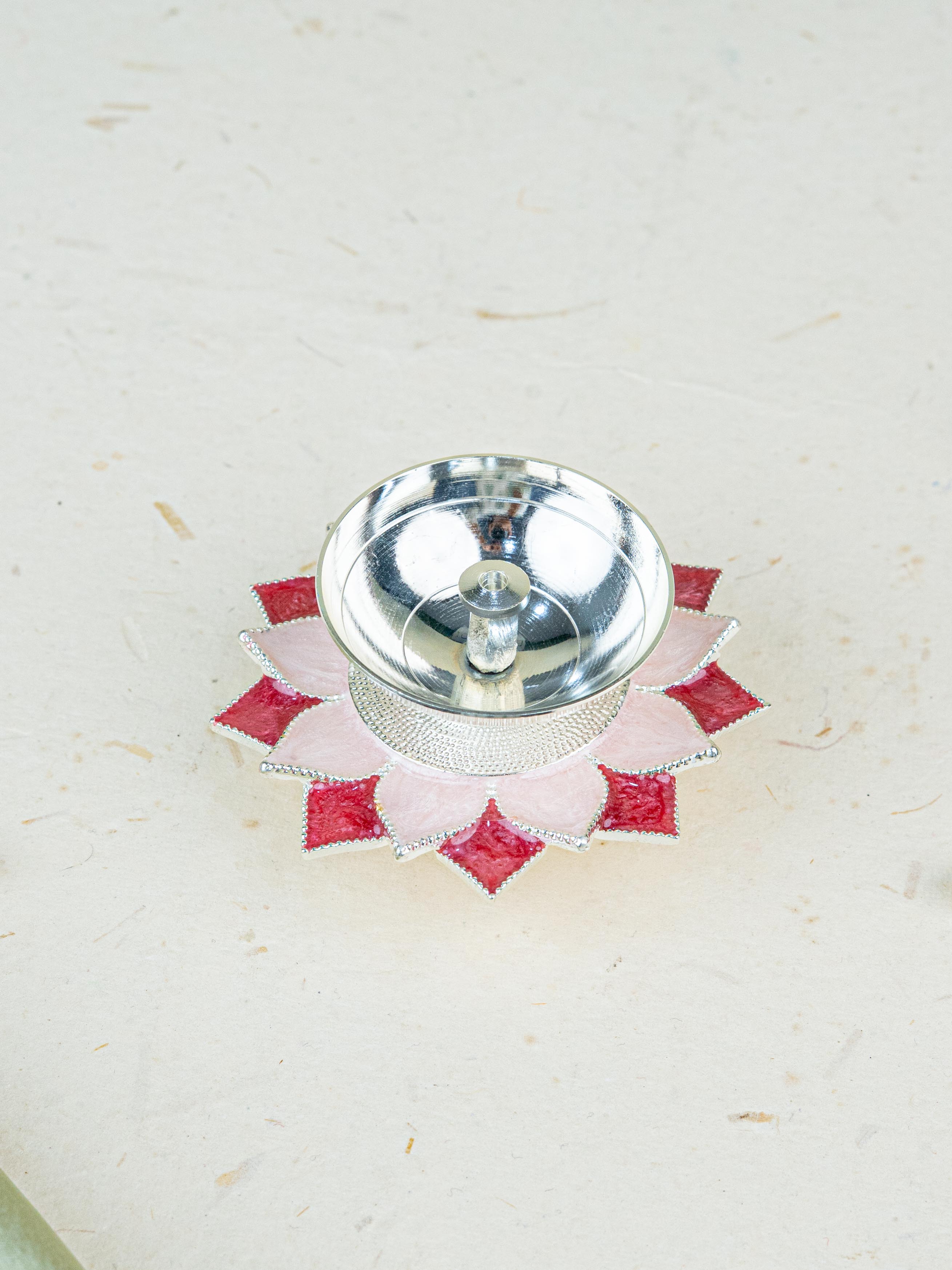 - This Diya Features a Metallic Silver Oil Holder in the Center, Ideal for Placing a Cotton Wick.