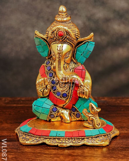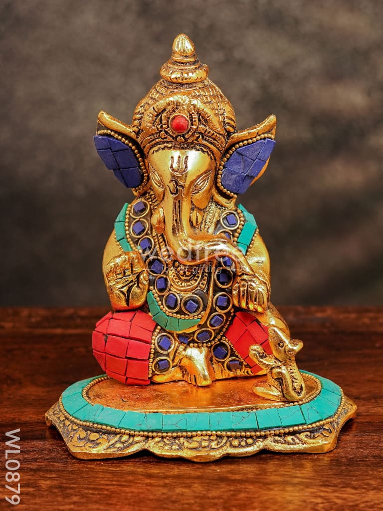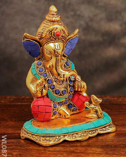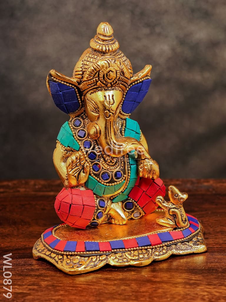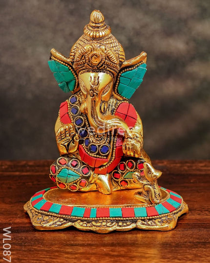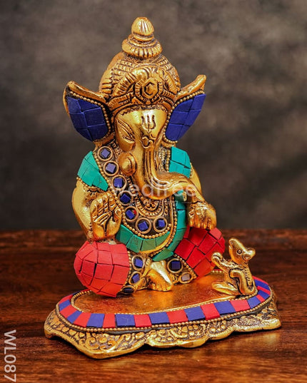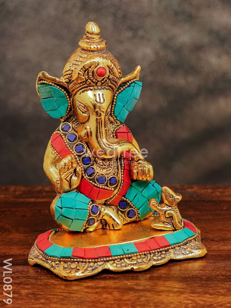 White Metal Gold Finish Ganesh with Mouse Small - WL0879