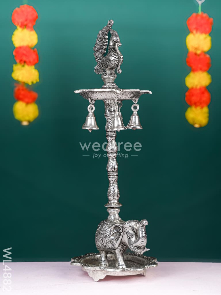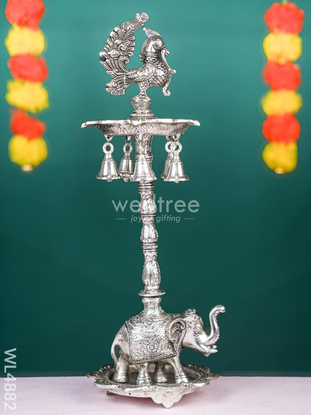 White Metal Kuthu Vilaku with Annapakshi & Elephant - 19 inch - WL4882