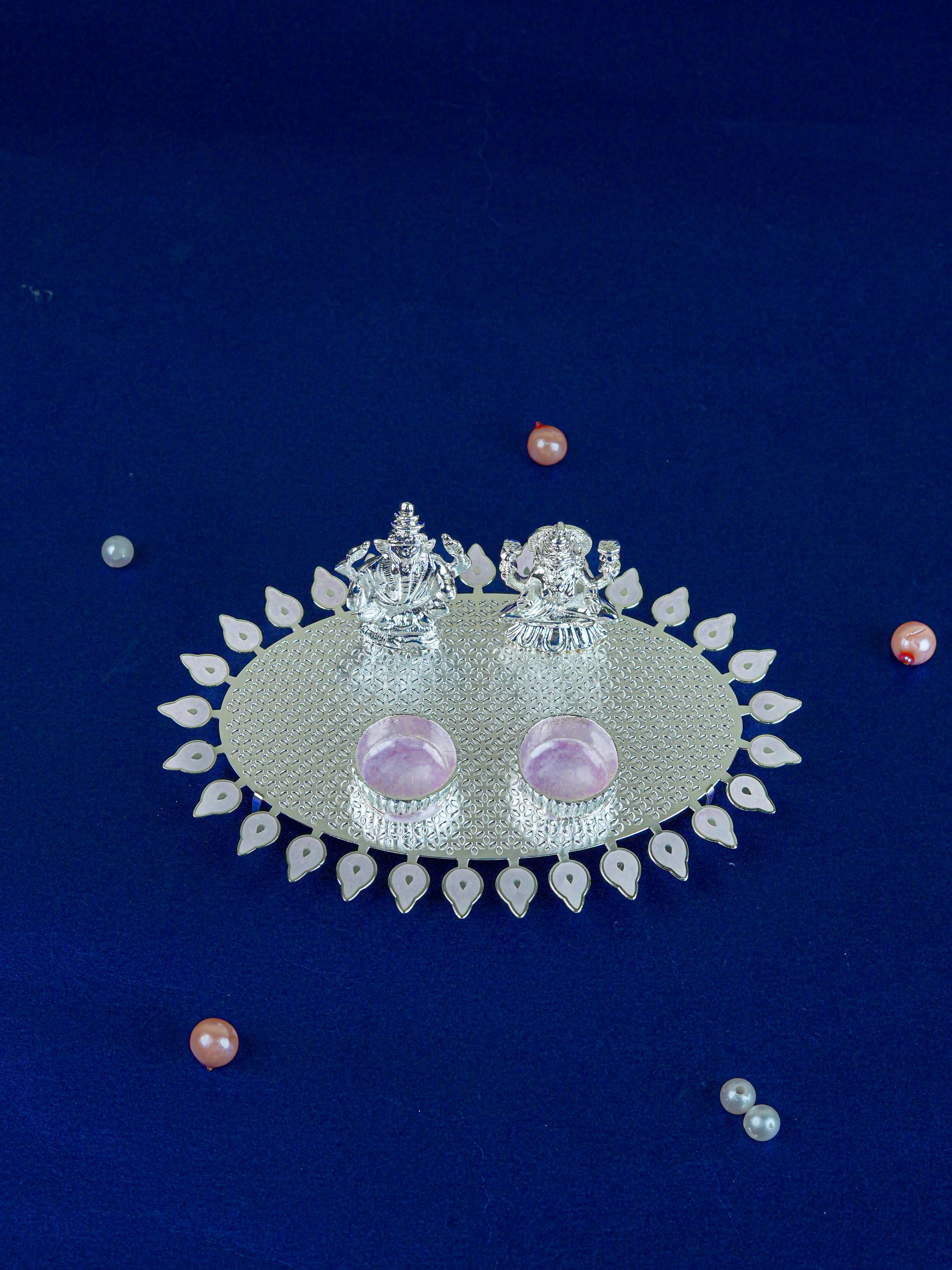 White Metal Lakshmi Ganesha Kumkum Holder - Pink - WL5586-1