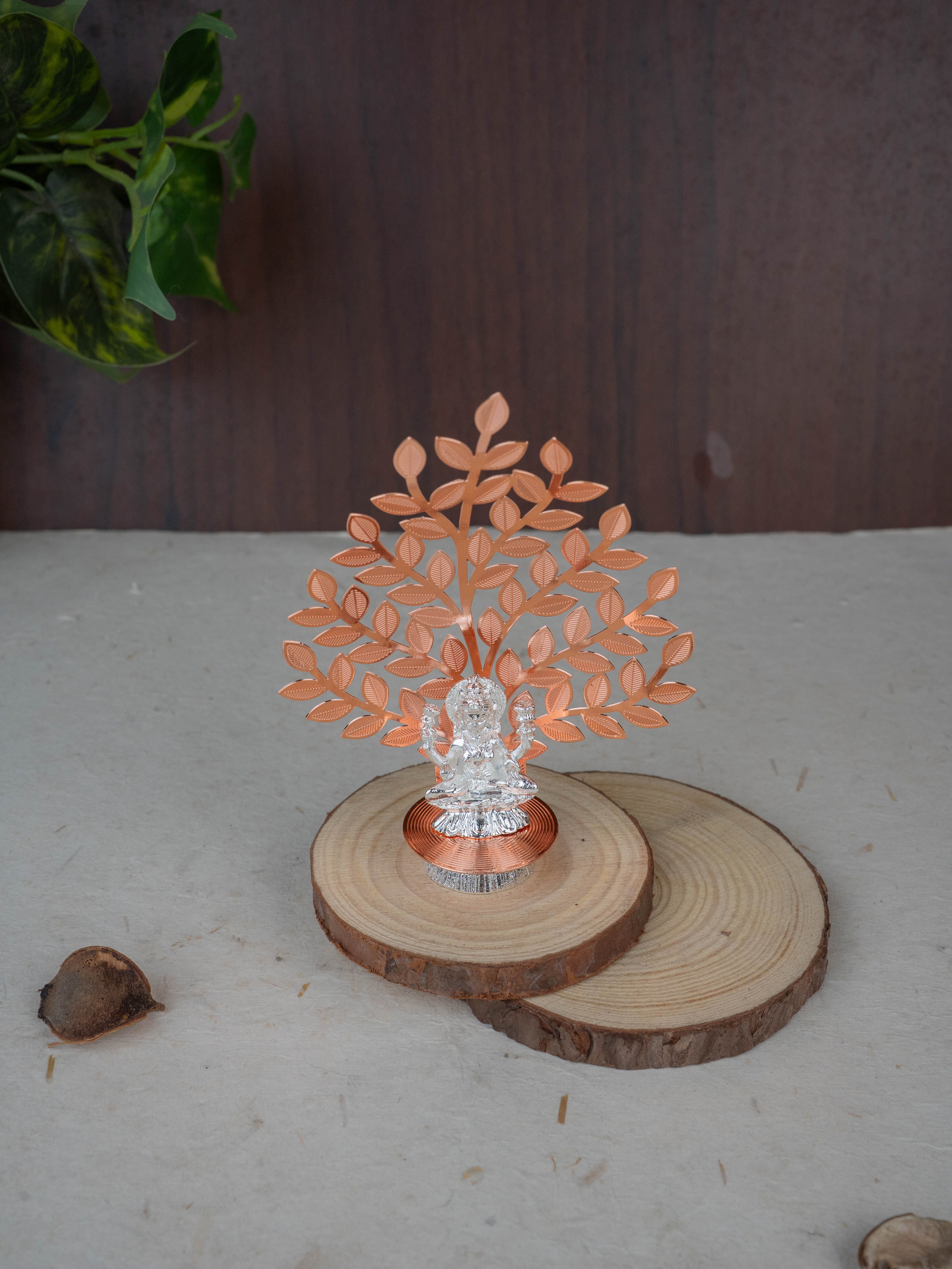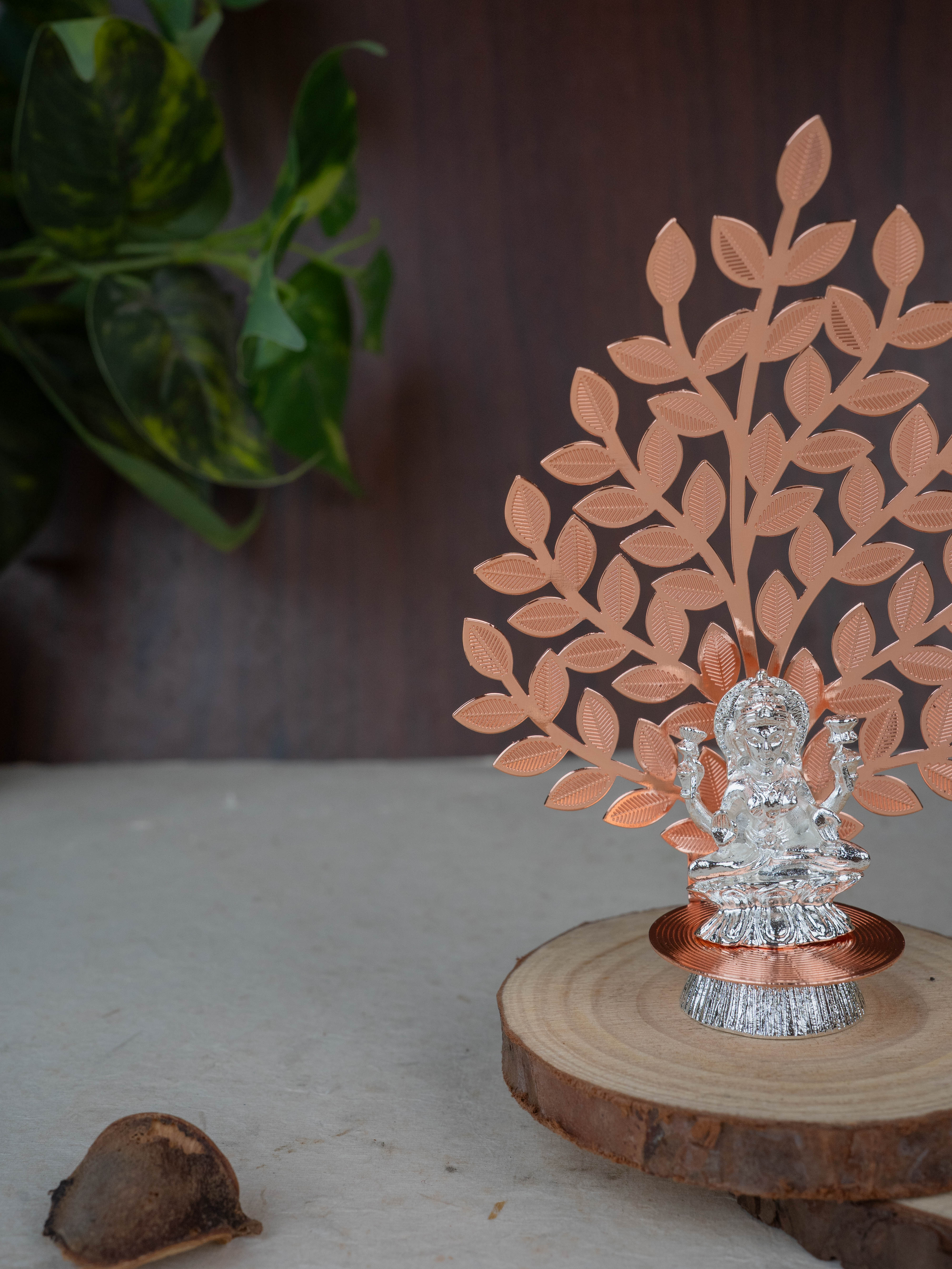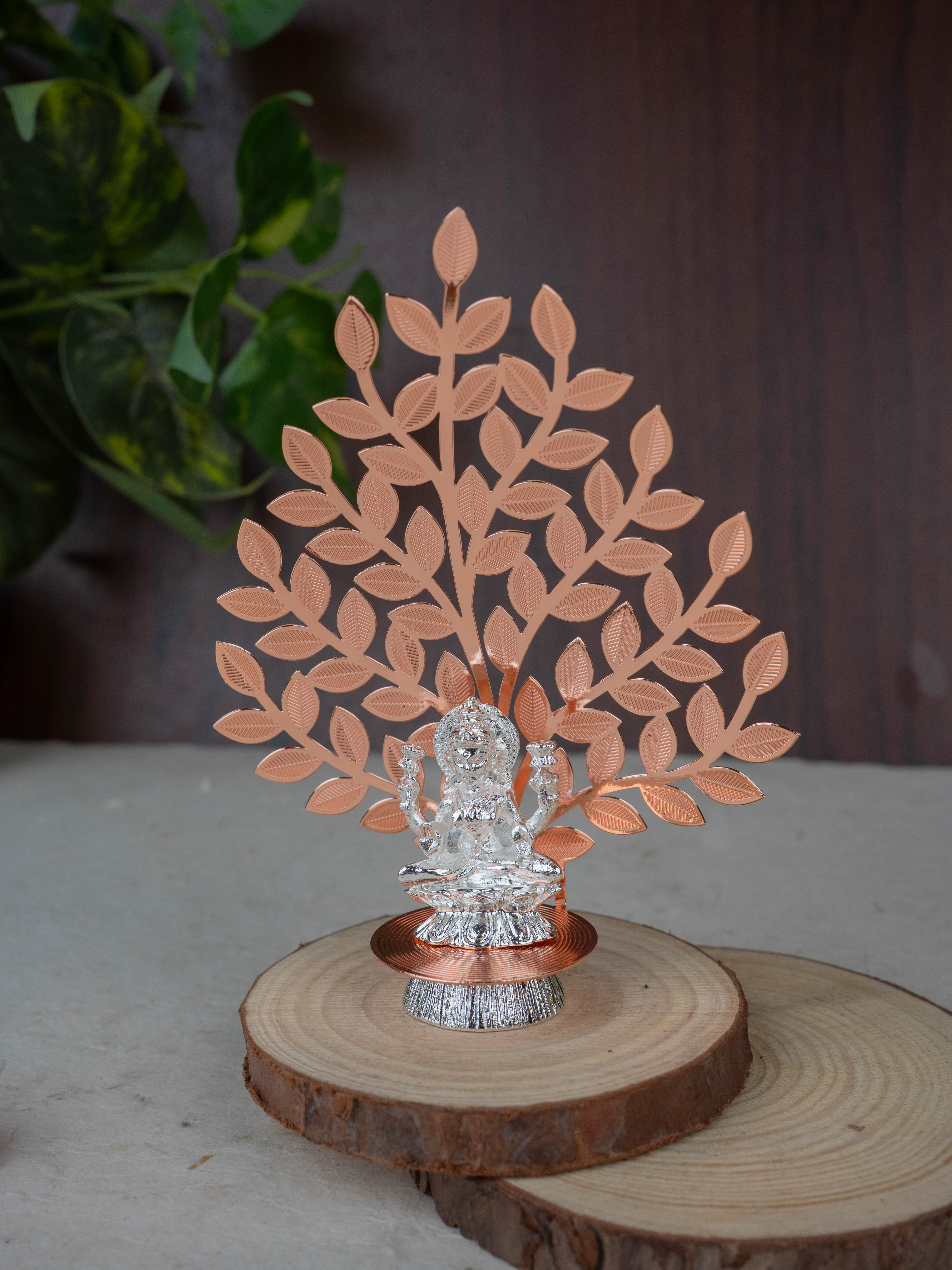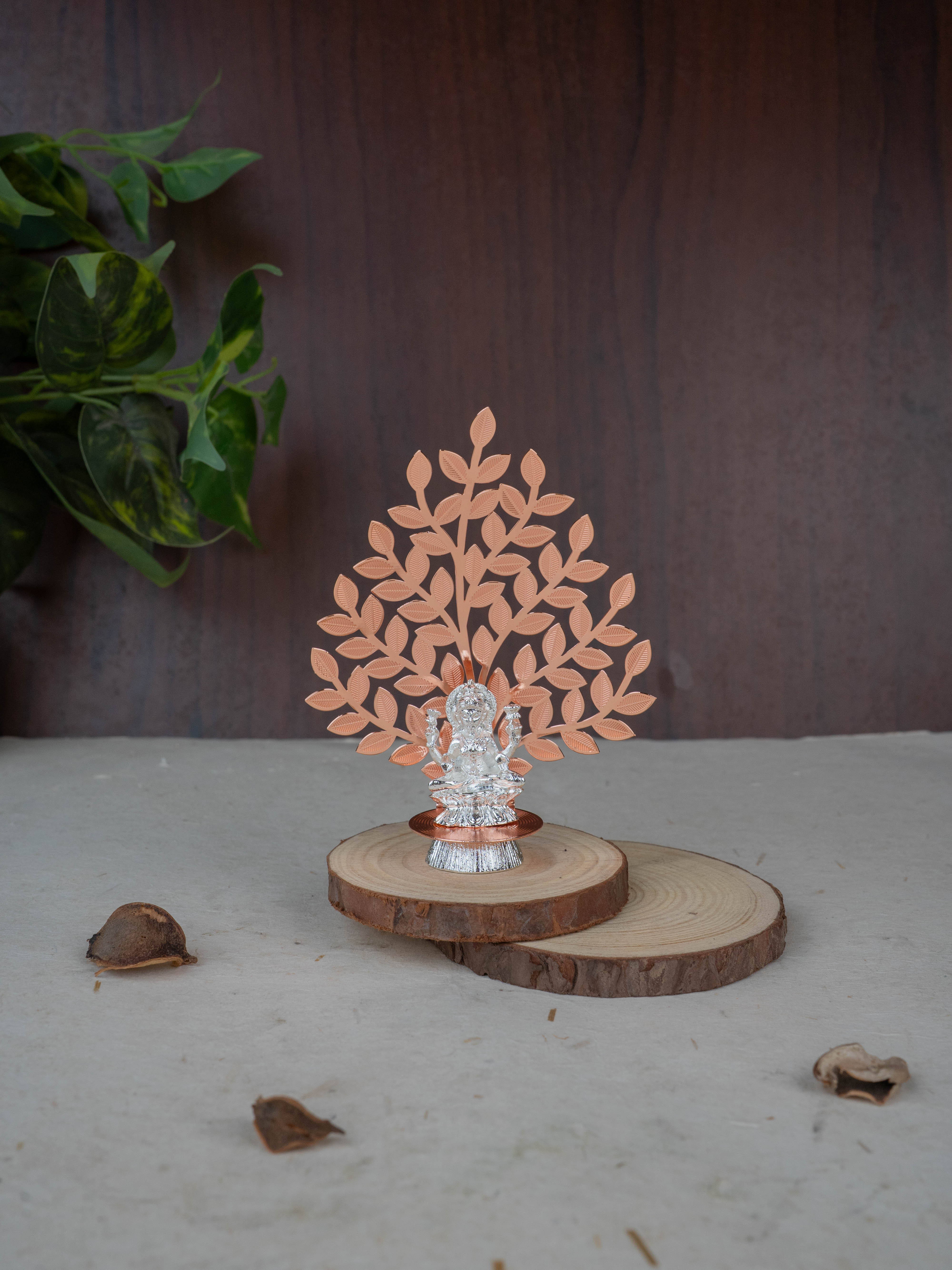 White Metal Lakshmi Idol with Tree of Prosperity - Copper - WL5445-2