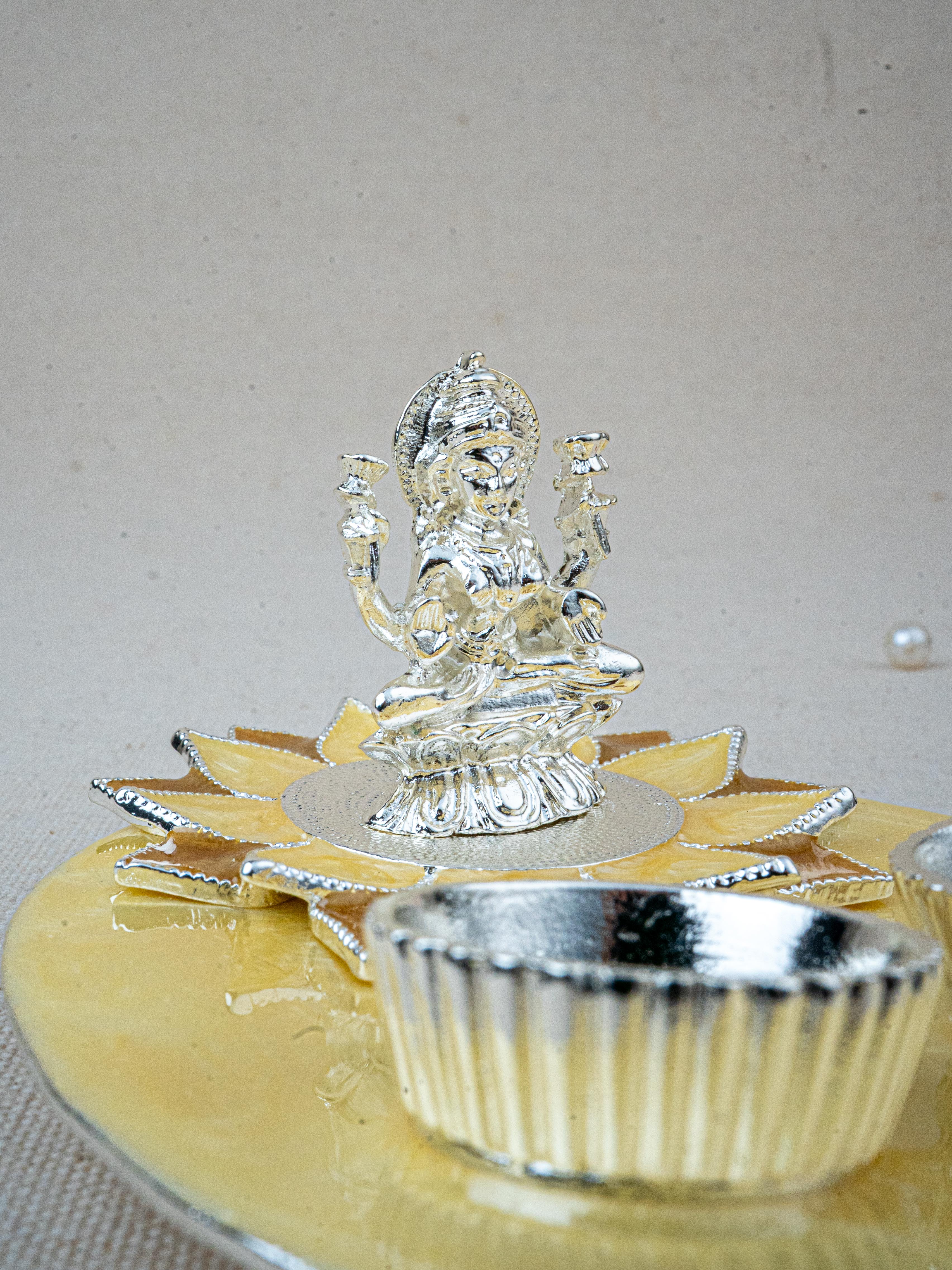 - Beautifully Crafted Lakshmi Kumkum Holder with Lotus-Shaped Base Plate in a Soft Pastel Beige & Cream Tone.