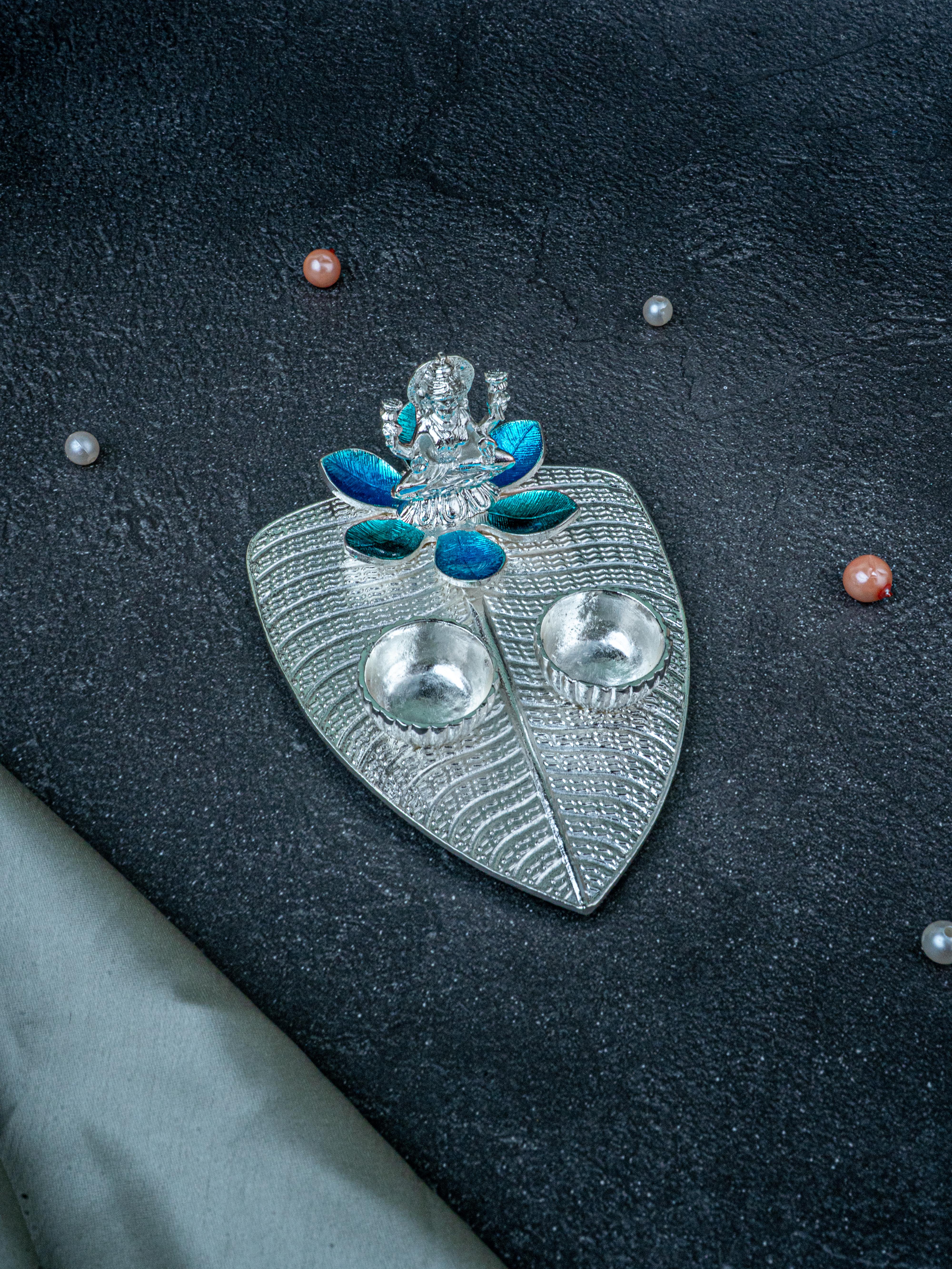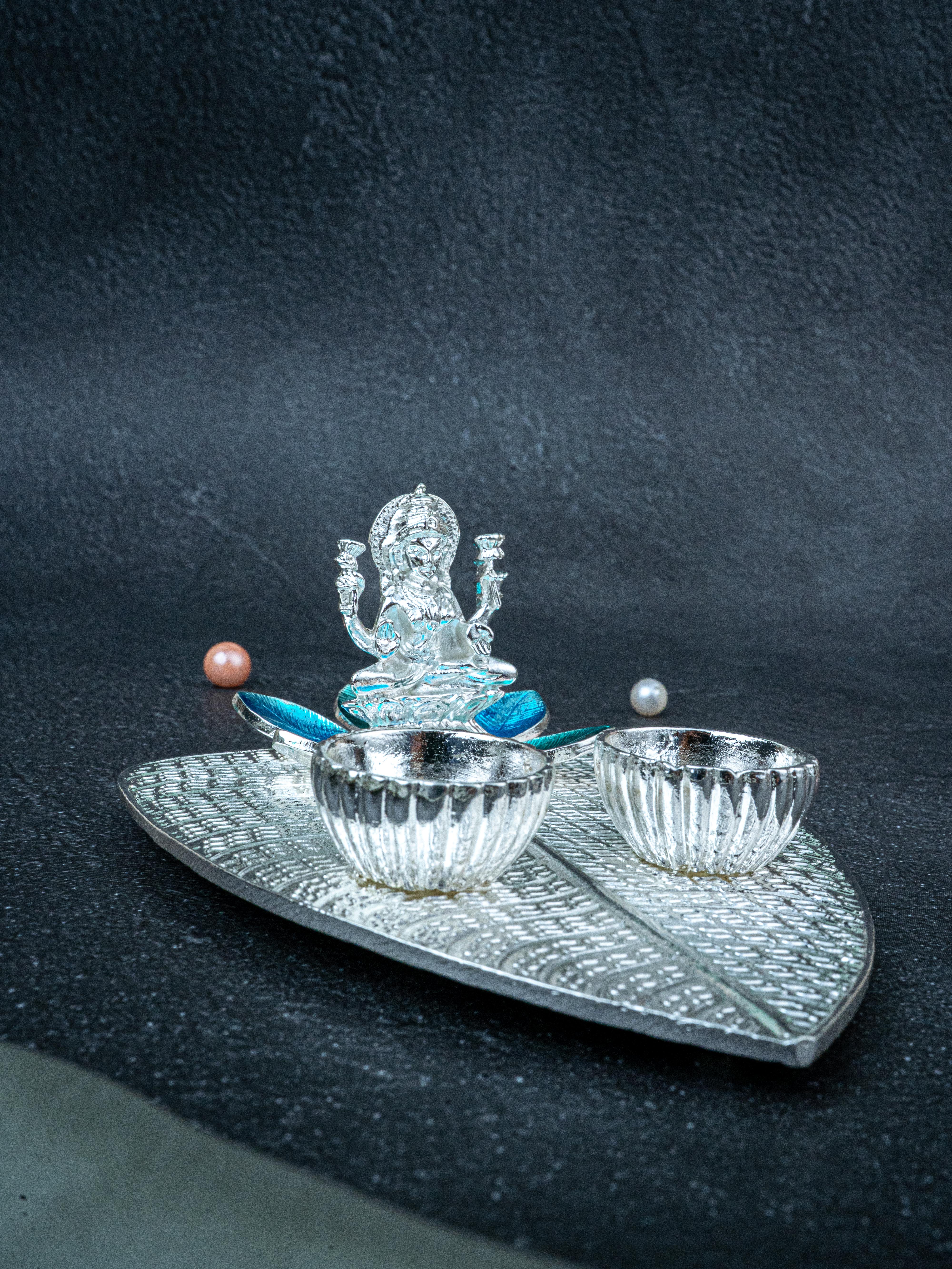 - Beautifully Crafted Lakshmi Kumkum Holder with Base of the Holder is Shaped like a Leaf.